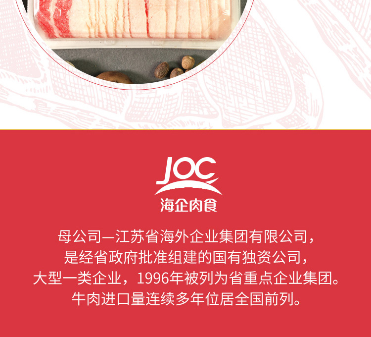 海企肉食是江苏省海外企业集团旗下的肉类品牌,经营北美、南美、澳新等全球牛肉主产区的优质原切牛肉,国有企业把关,精心挑选,为消费者提供高品质牛肉,确保每一款牛肉都是上选之品,软嫩的肉质,醇厚的肉香,给您生活带来幸福美味!