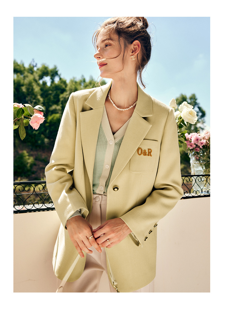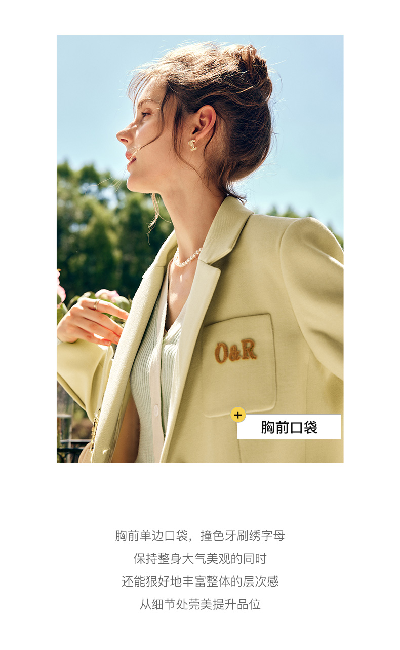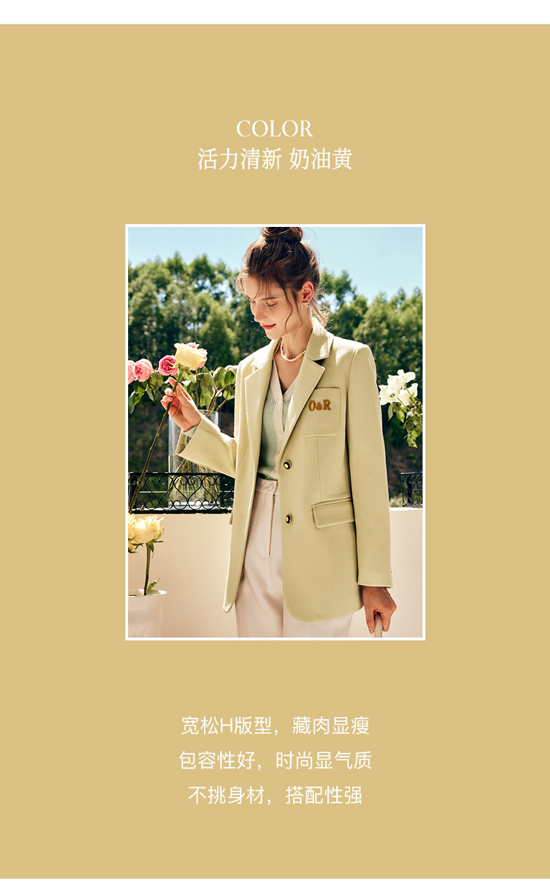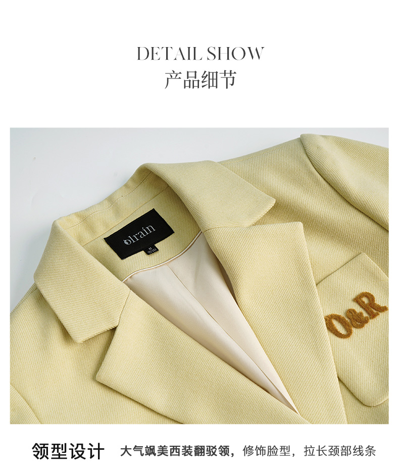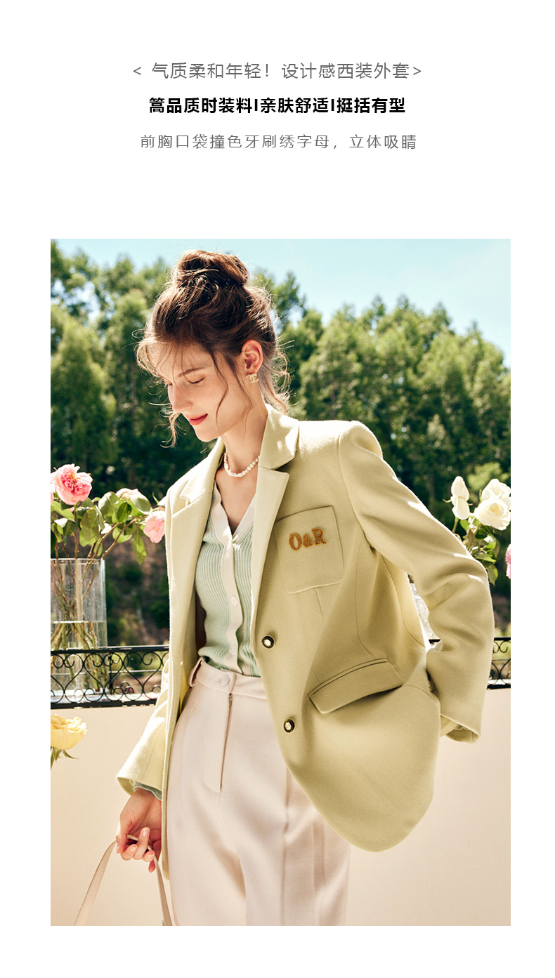OLrain欧芮儿法式黄色西装外套女秋季2022年新款气质宽松刺绣上衣
