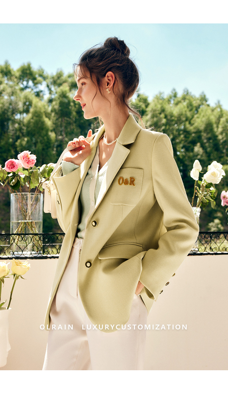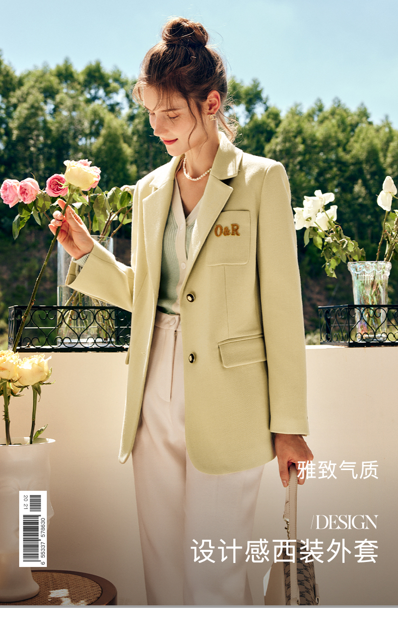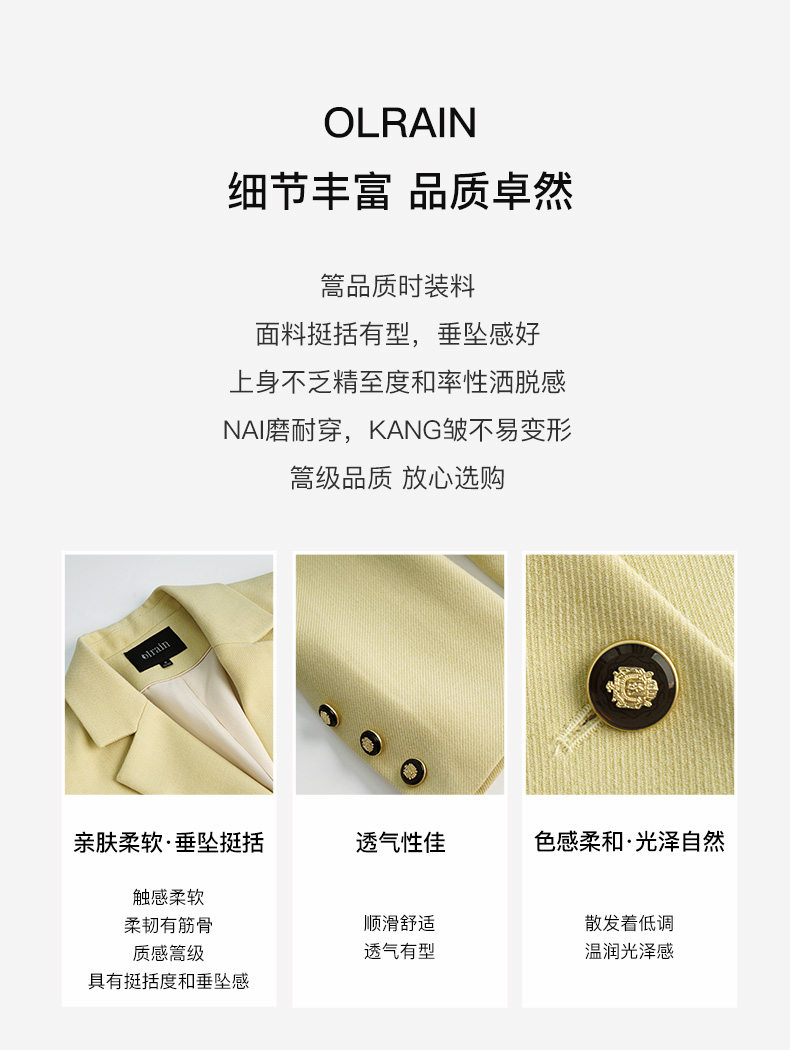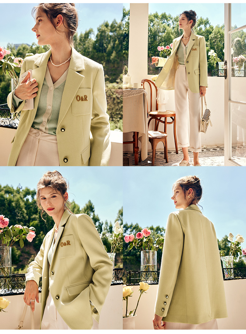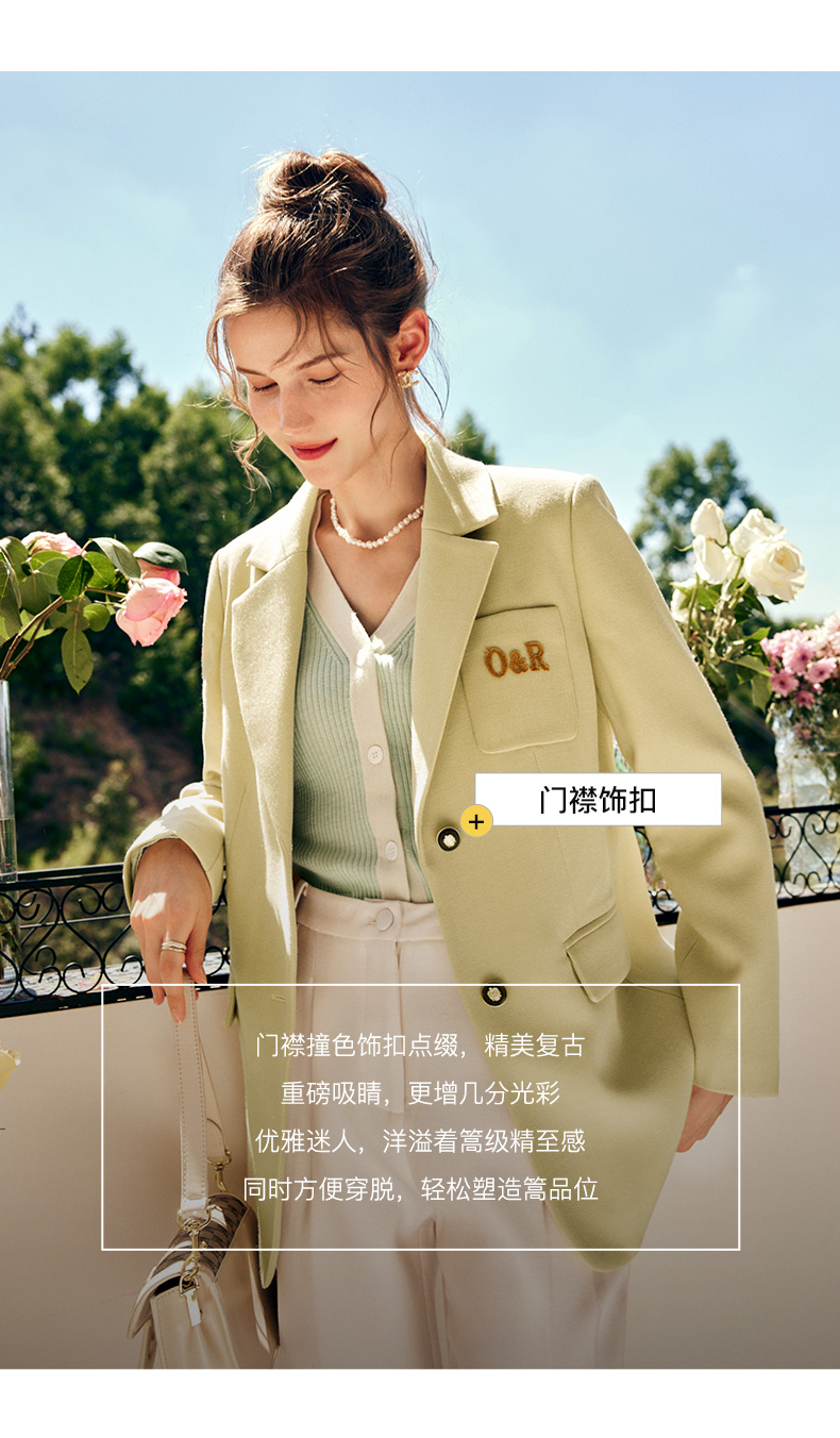 OLrain欧芮儿法式黄色西装外套女秋季2022年新款气质宽松刺绣上衣