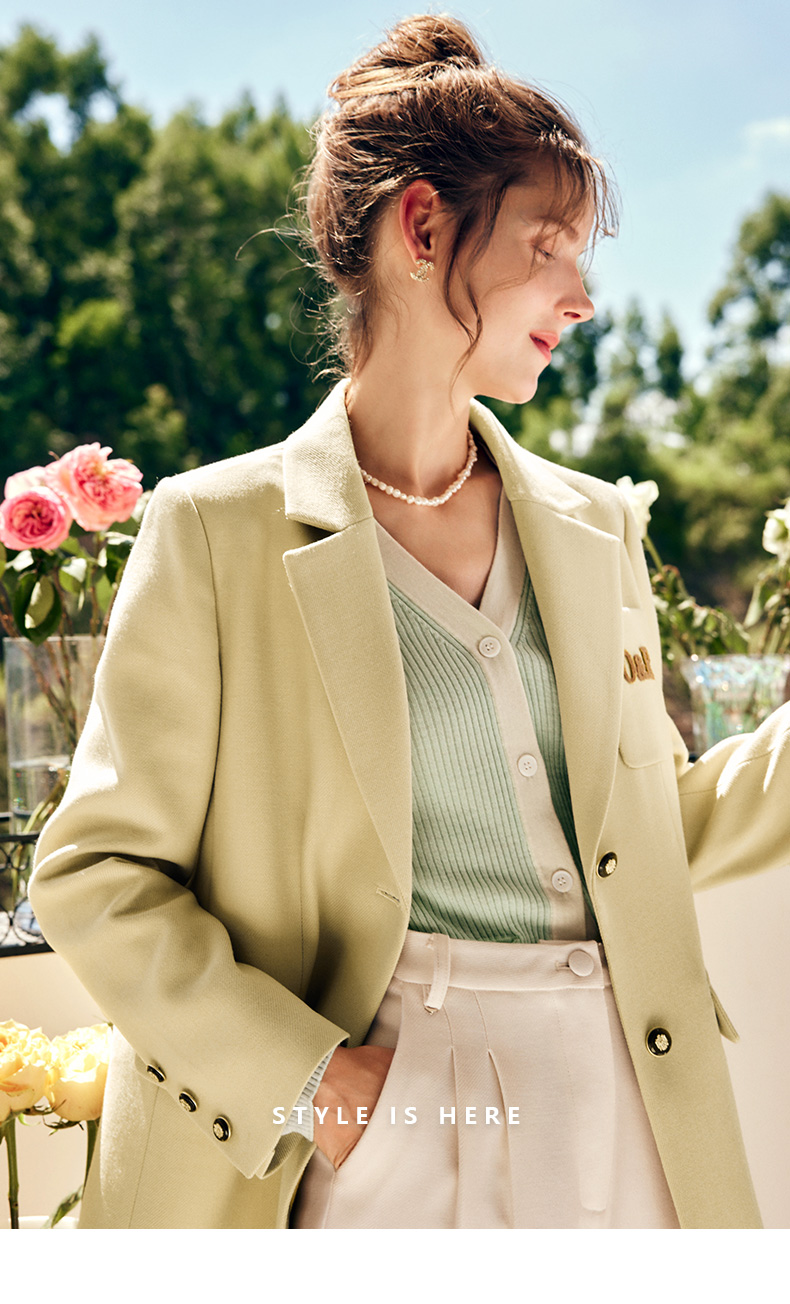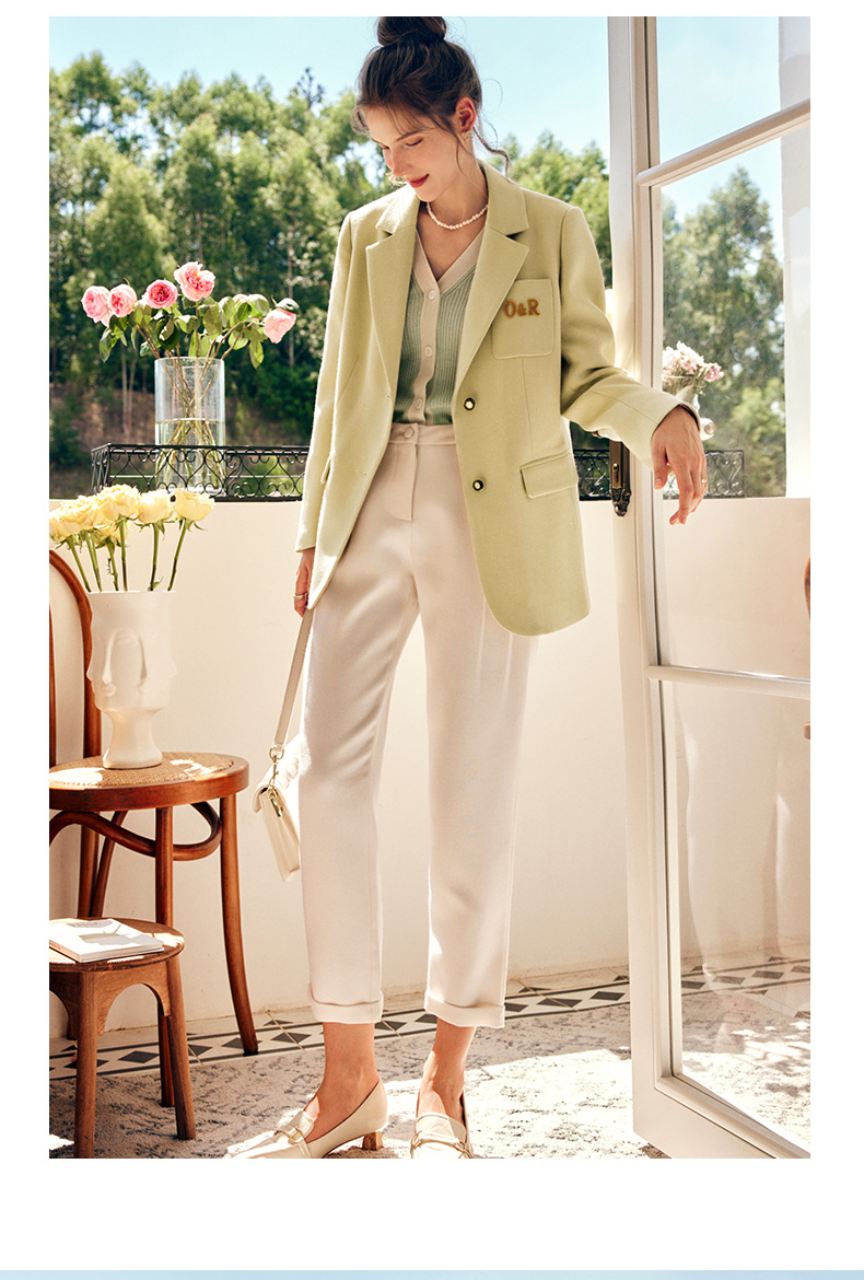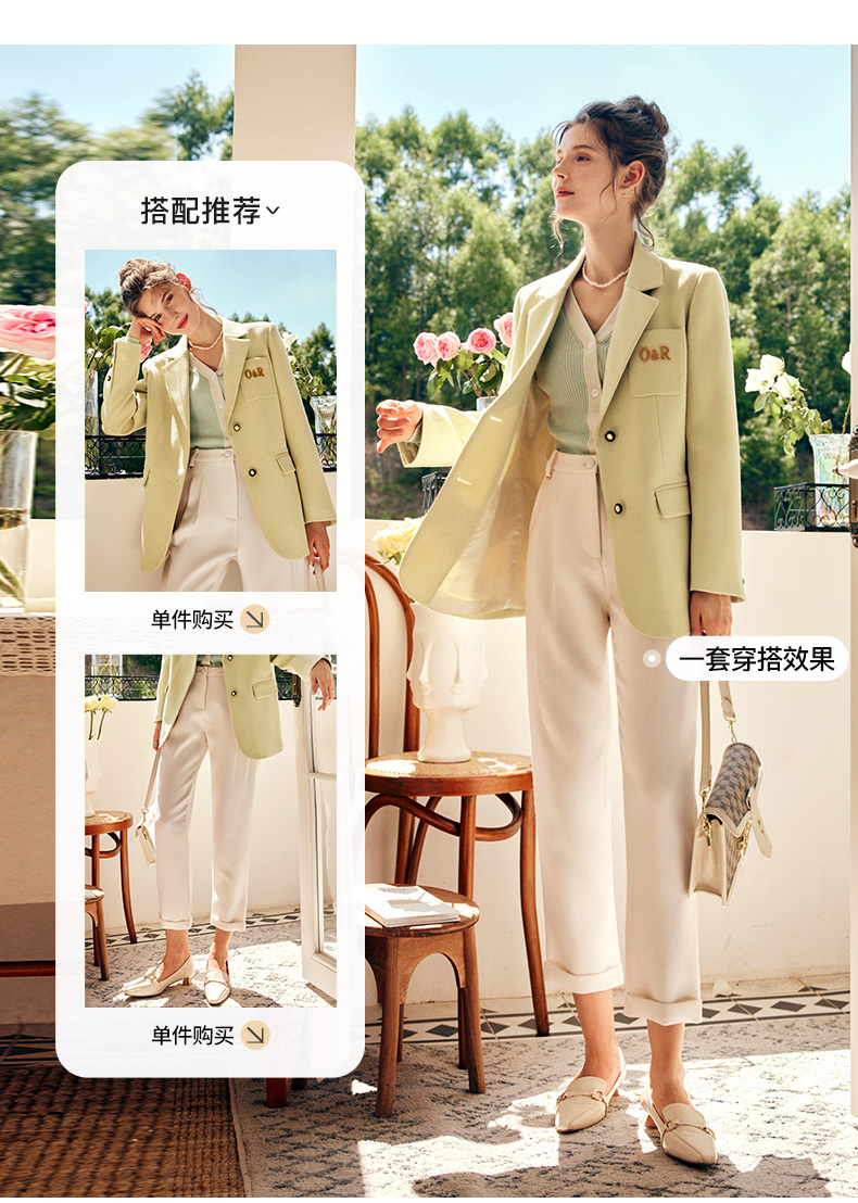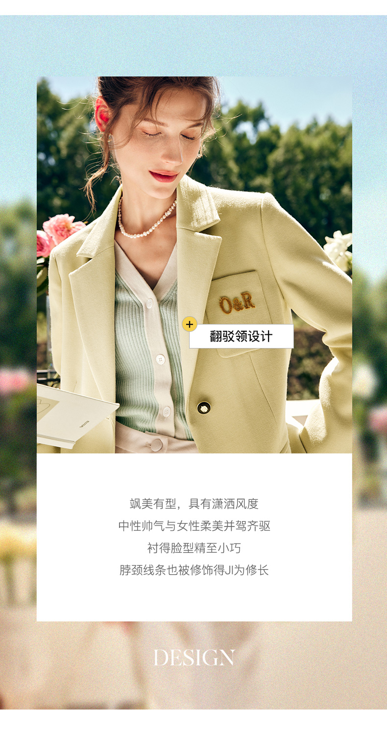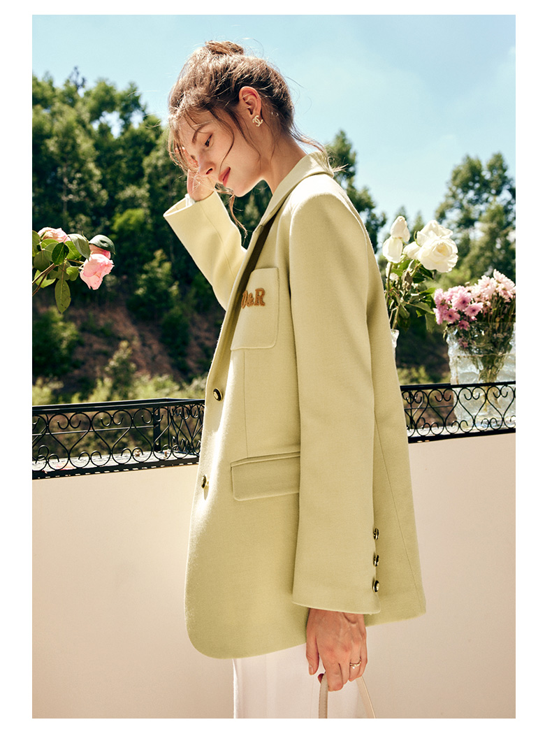 OLrain欧芮儿法式黄色西装外套女秋季2022年新款气质宽松刺绣上衣