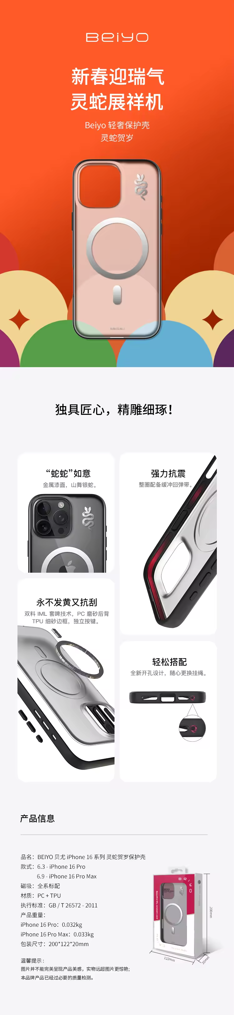 保护壳 灵蛇贺岁 磨砂透明 - 贝尤(适用 iPhone 16 Pro系列)