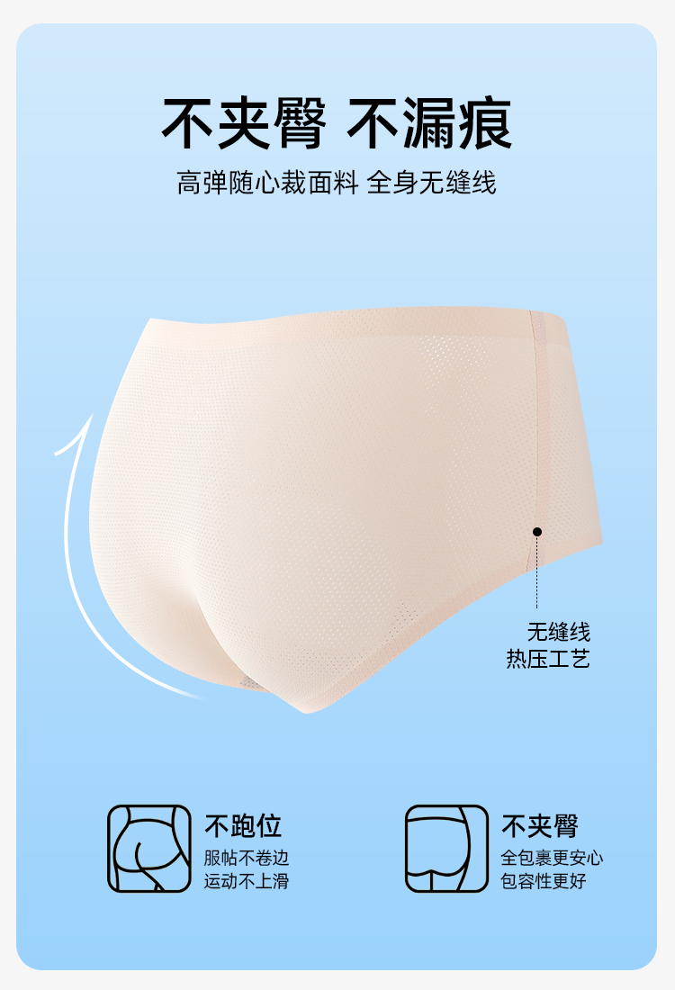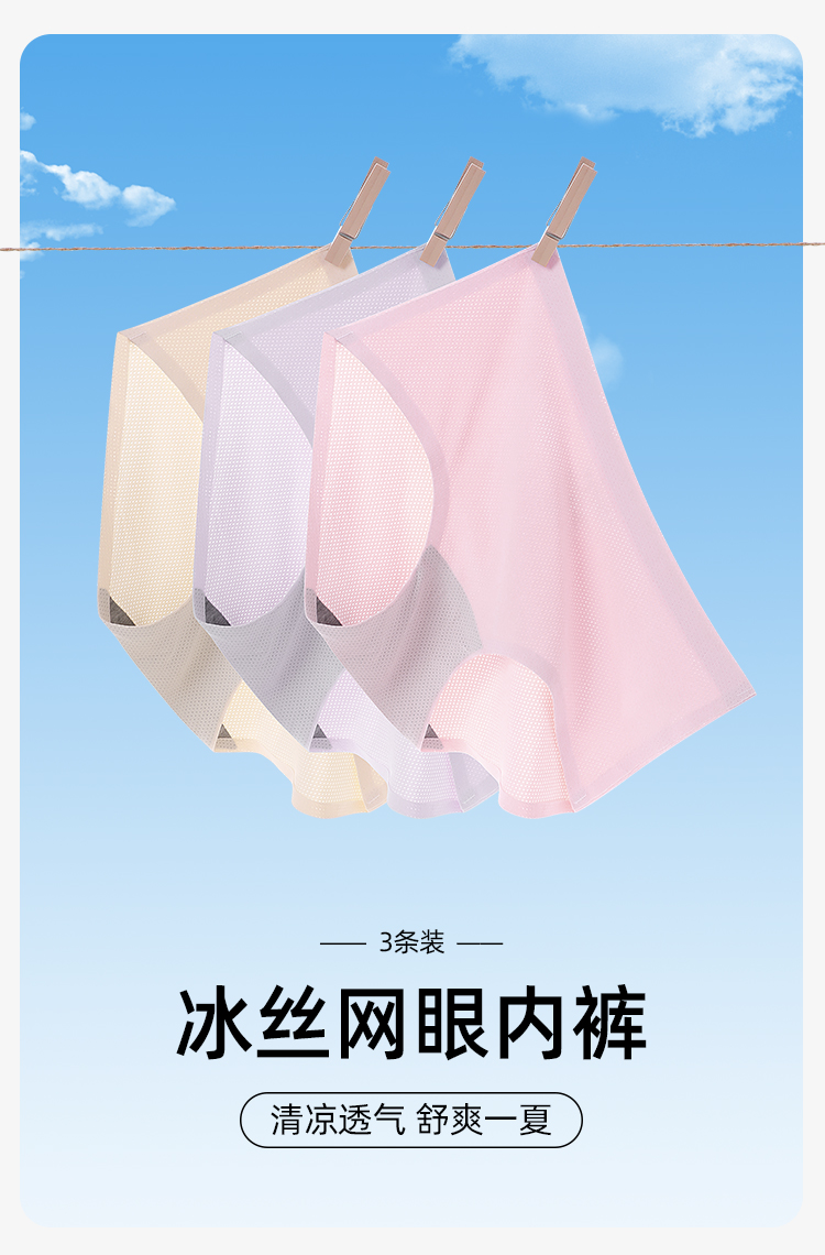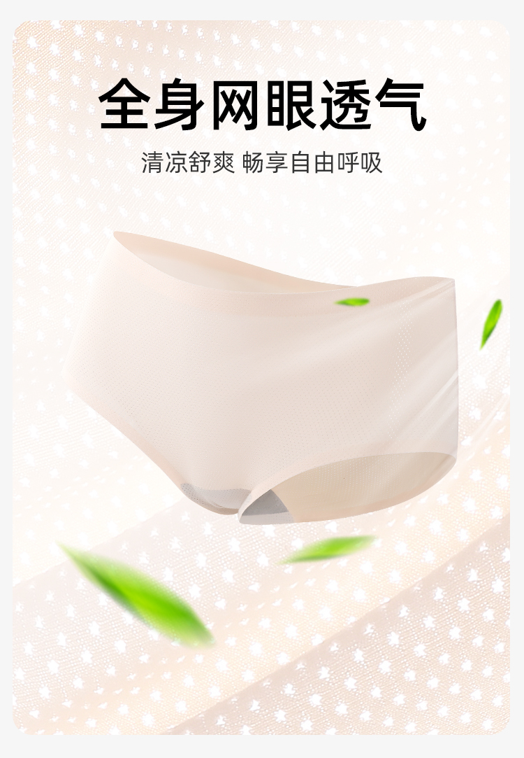 【3条装】熳洁儿 无痕透气网眼镂空纯色中腰舒适女士三角裤内裤女21252106