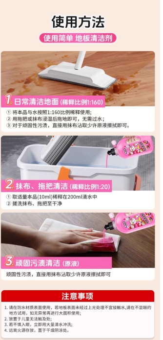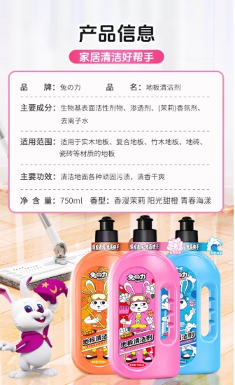 兔力地板清洁剂 瓷砖地板增亮去污除垢清香除菌拖地花露水速干1.42