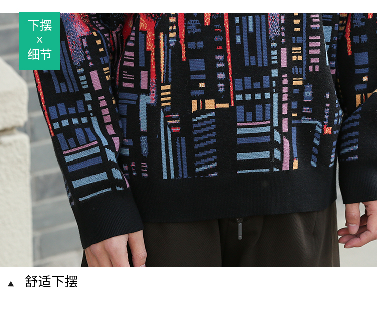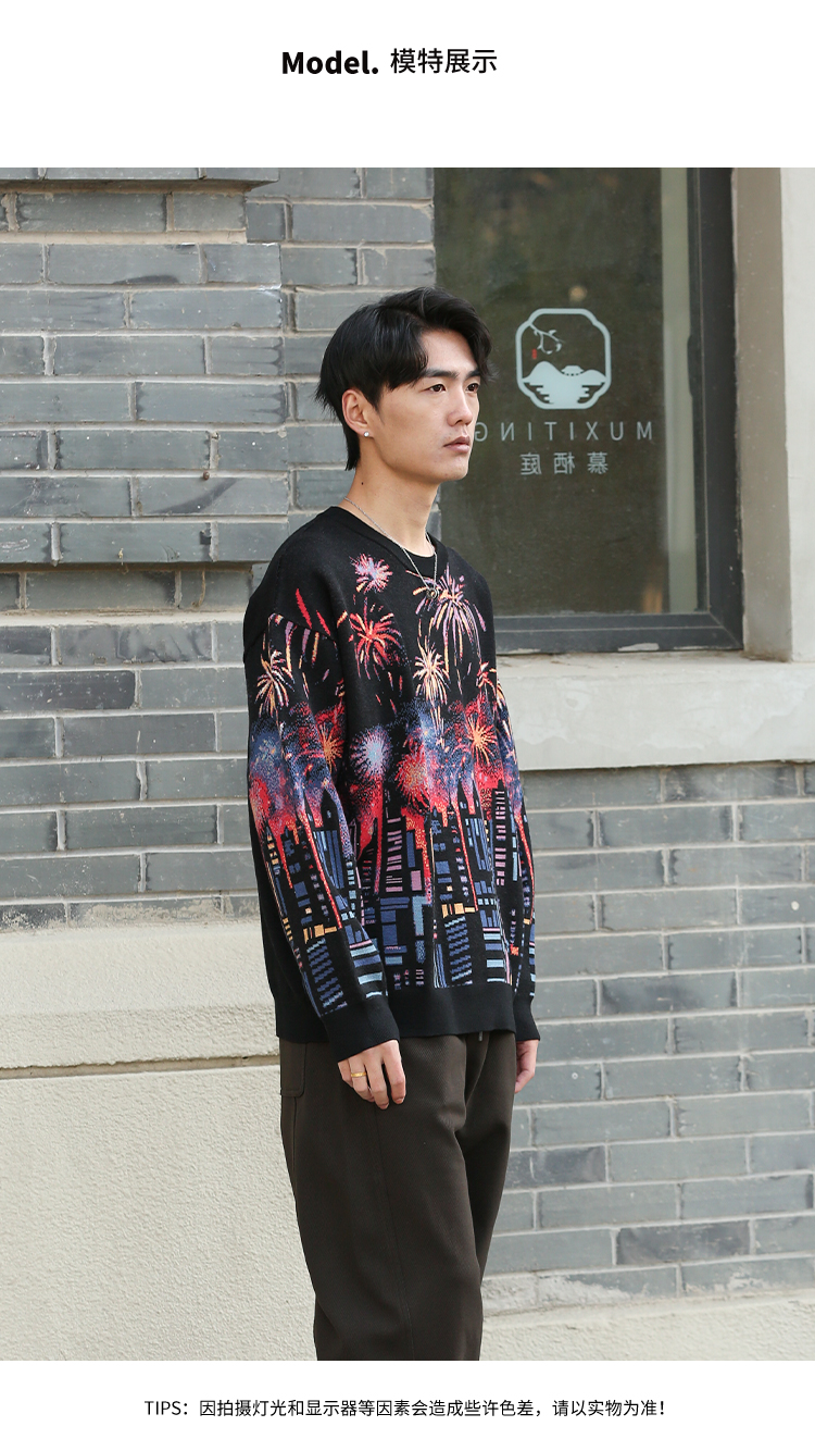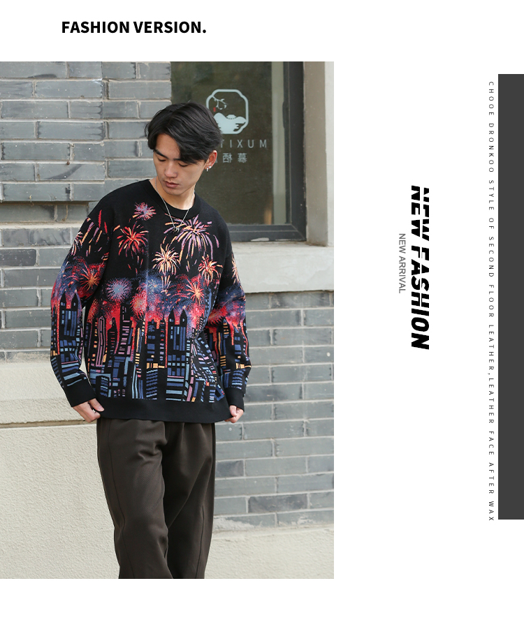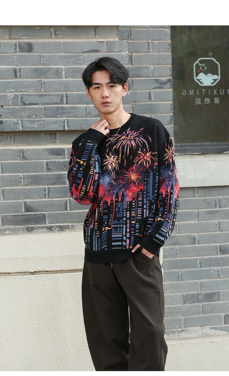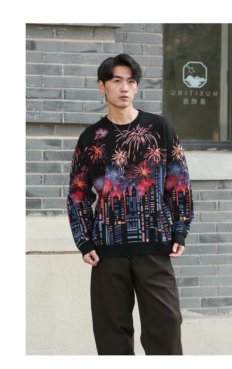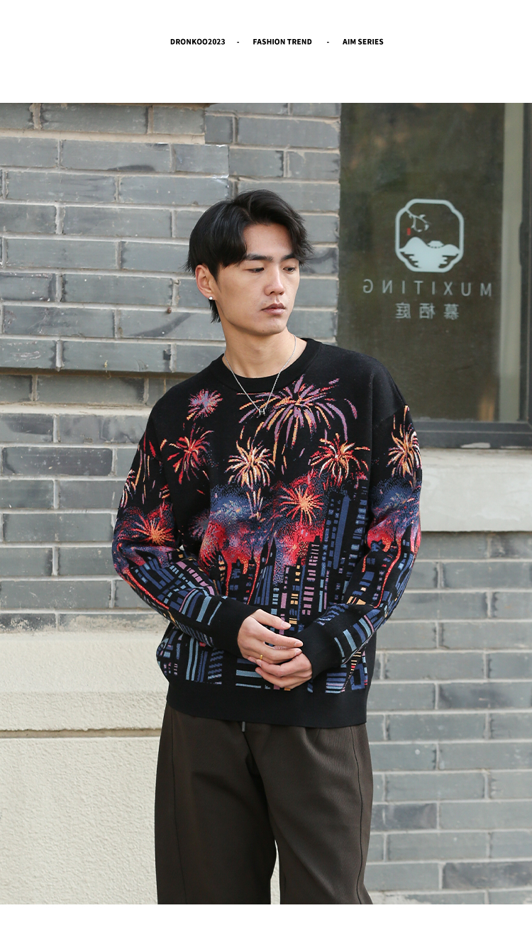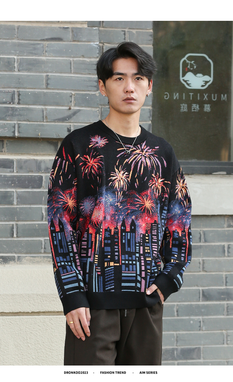 DRONKOO 2025 圆领满幅烟花城市厚毛衣