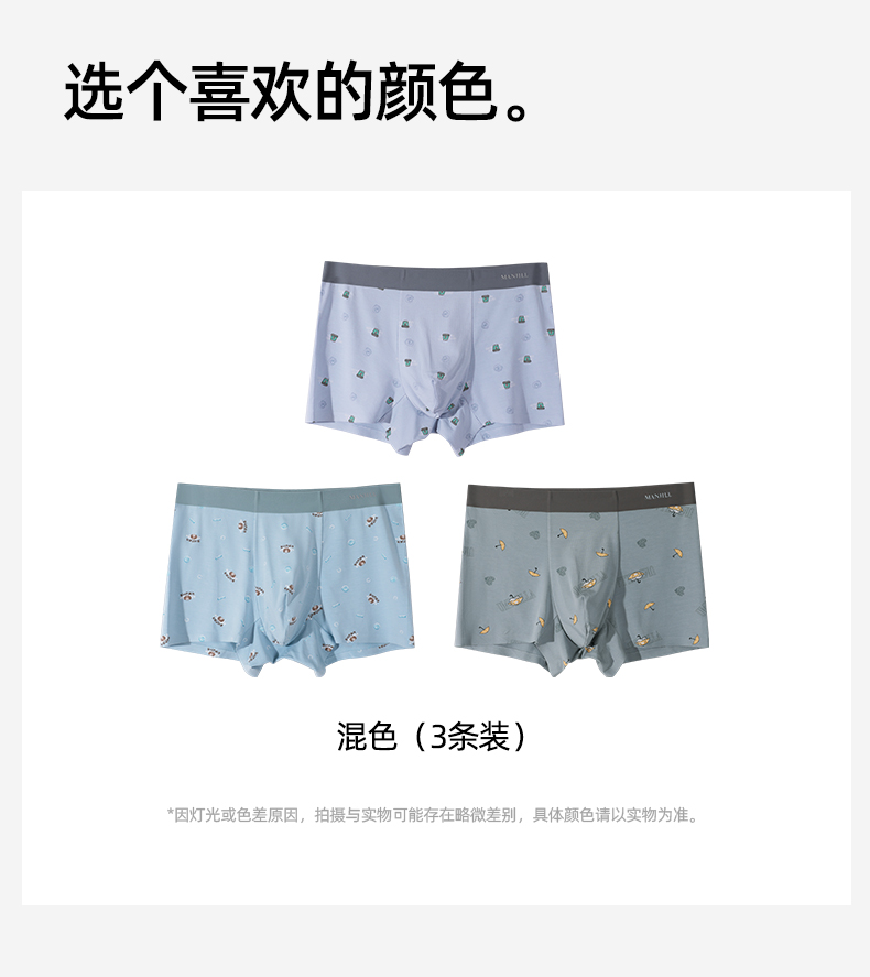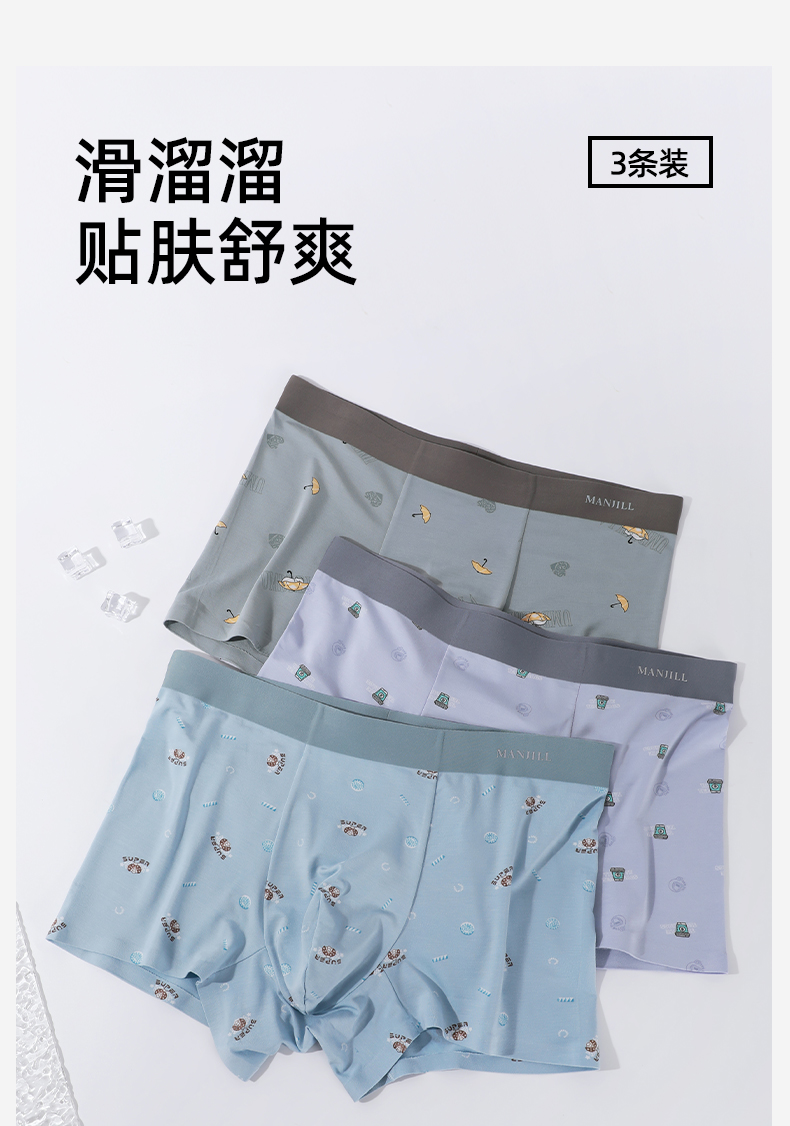 【3条装】熳洁儿 莫代尔男士内裤透气中腰印花高弹无痕25262902