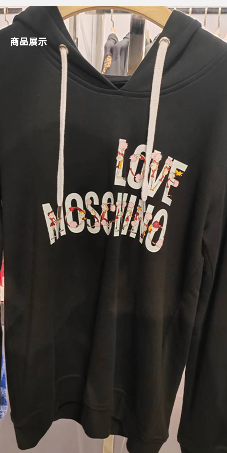 LOVE MOSCHINO 莫斯奇诺 女士徽标贴花连帽卫衣 黑色 W636 301M 3992 C74