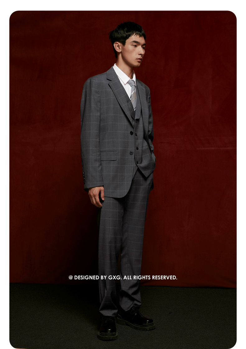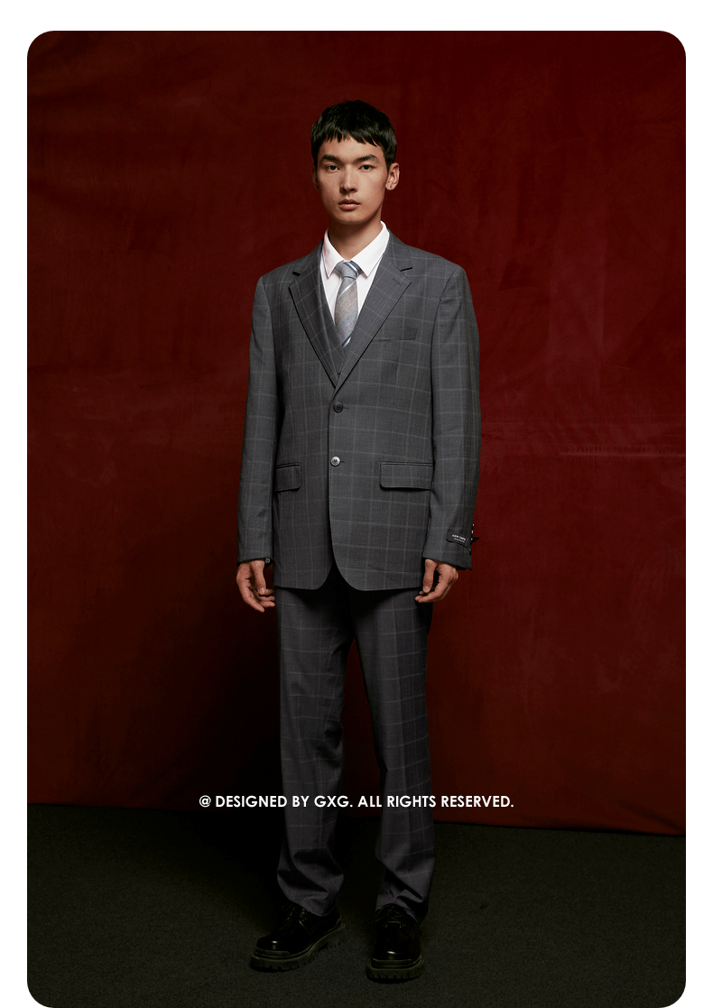 GXG男装 含羊毛格纹商务西装男士正装 24年秋G24X133014