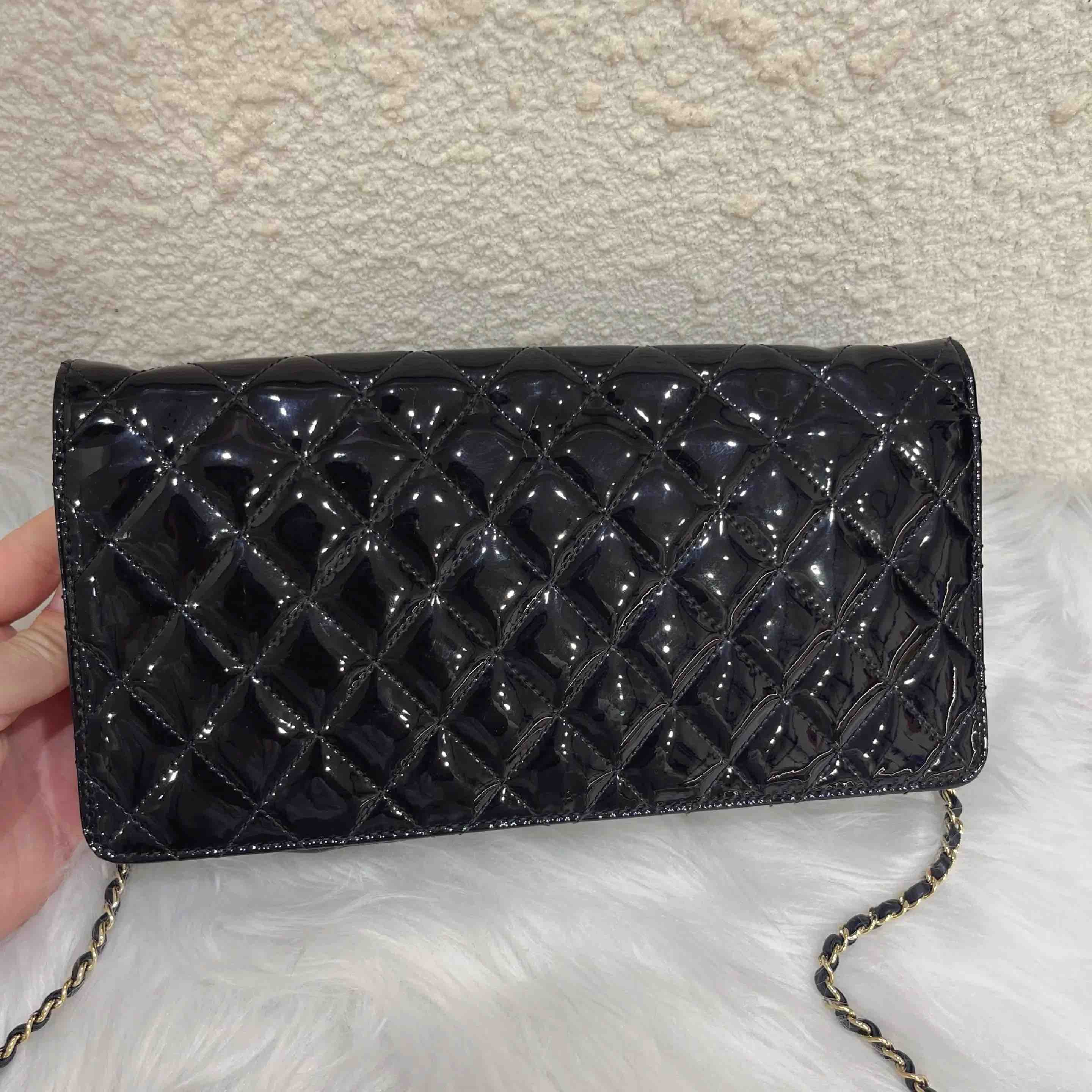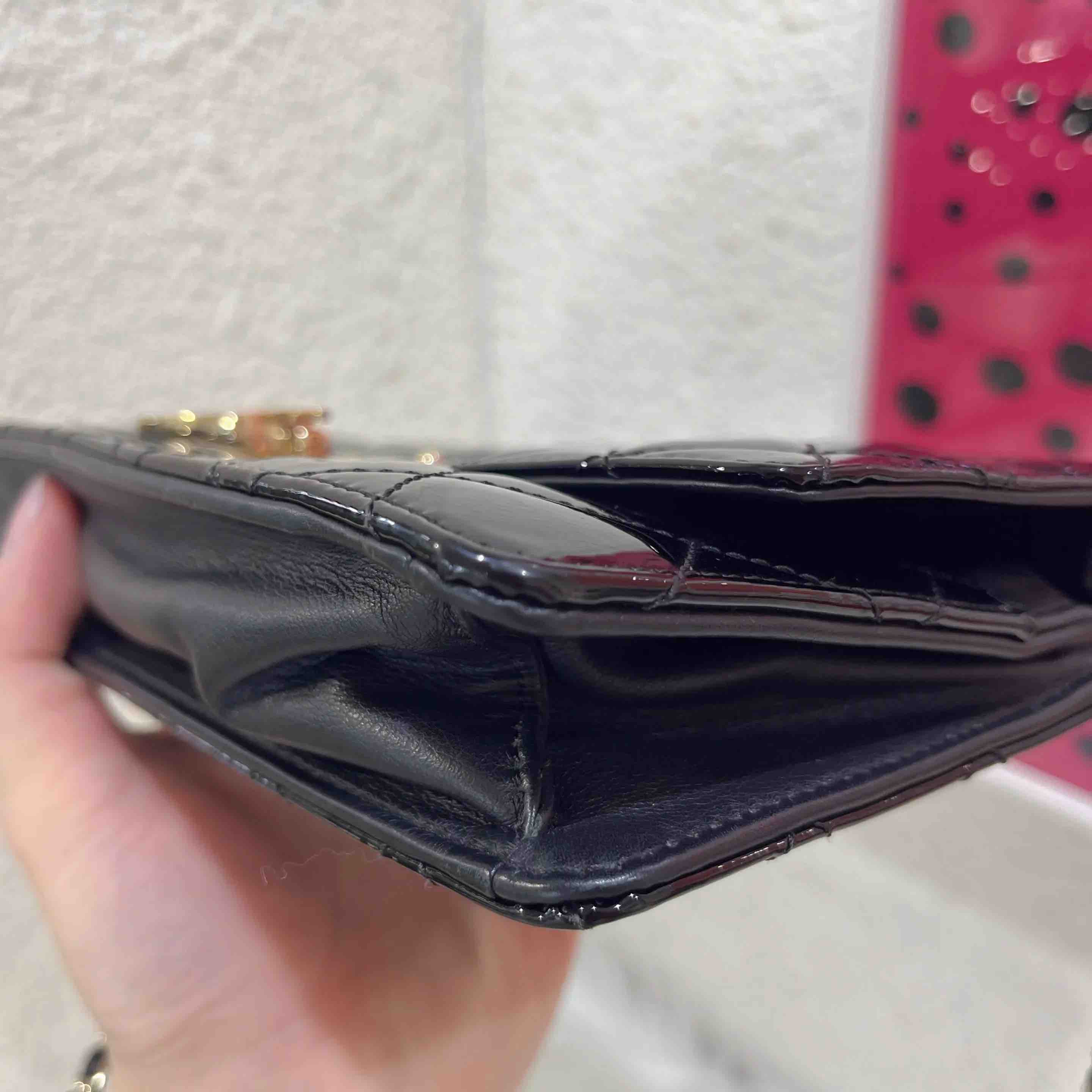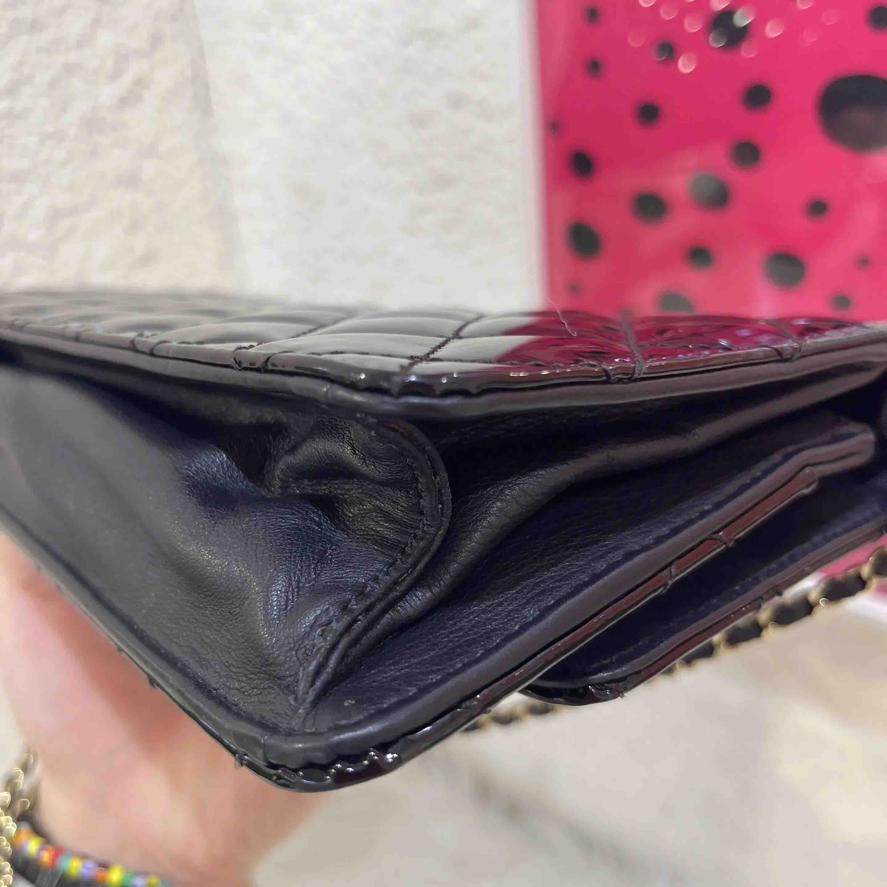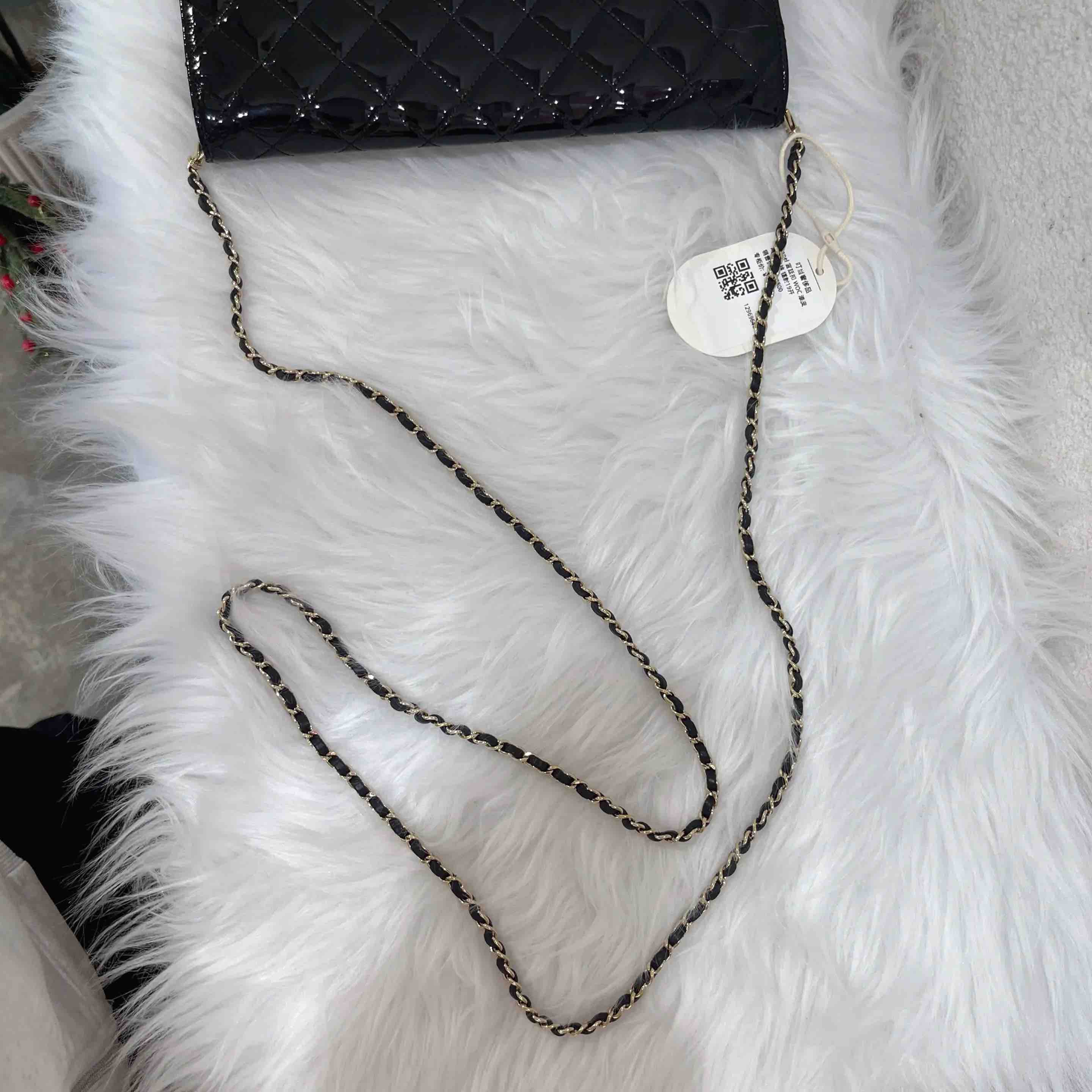 【商品详情】正品二手 Chanel 古巴 宫廷扣 漆皮 黑金 woc 斜挎包🤑95新 26*14 镭射19开 配件:链条。金属正常使用感。绝版漆皮chanel