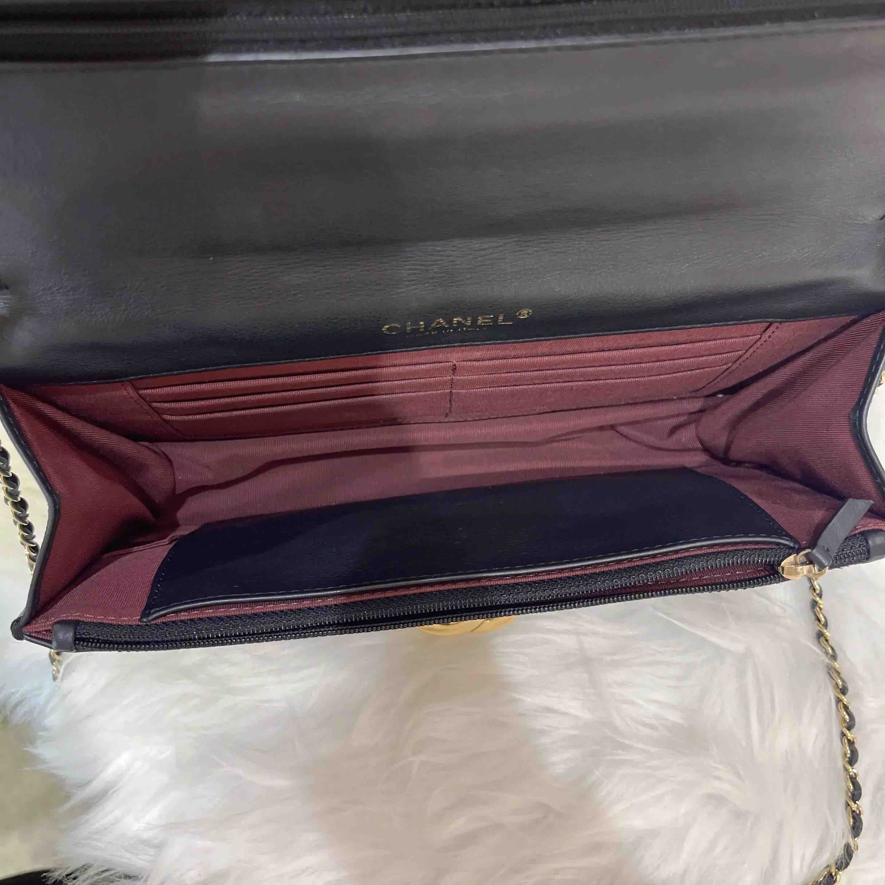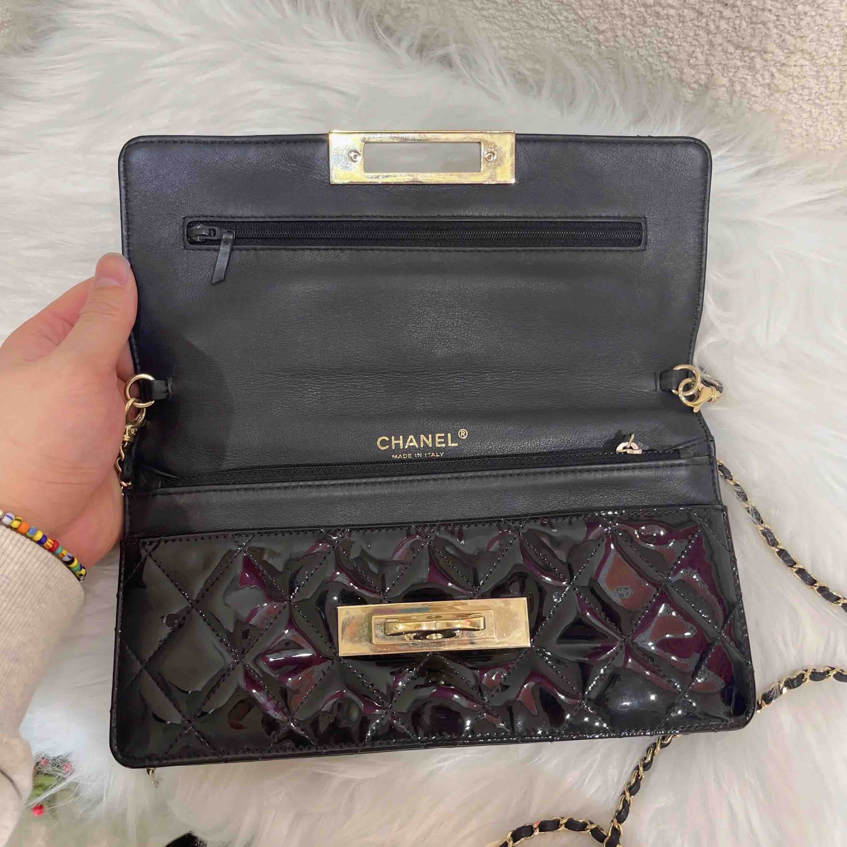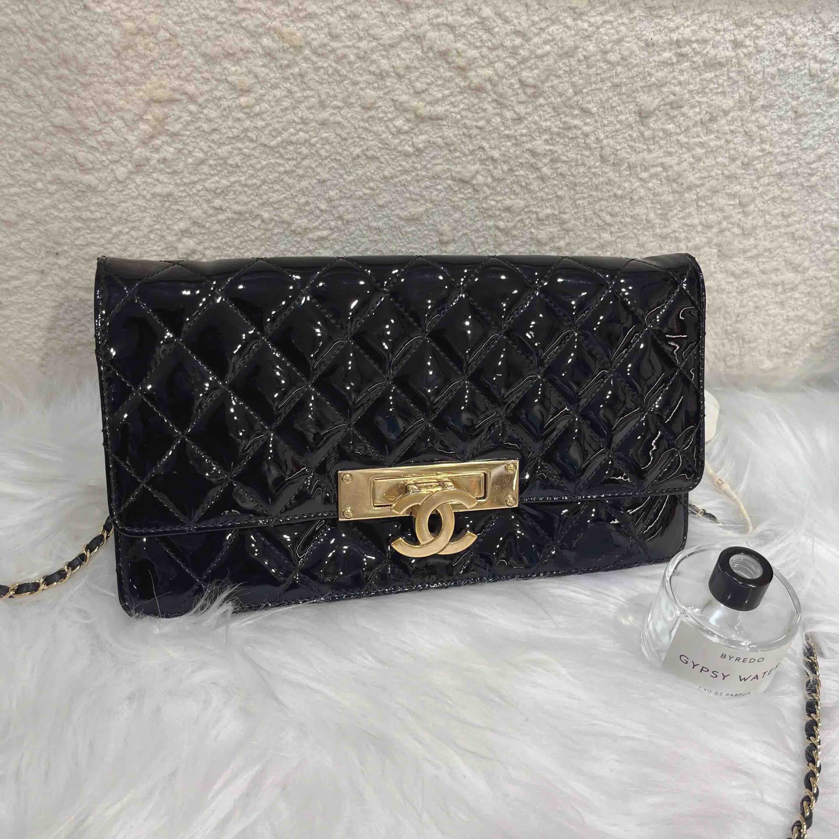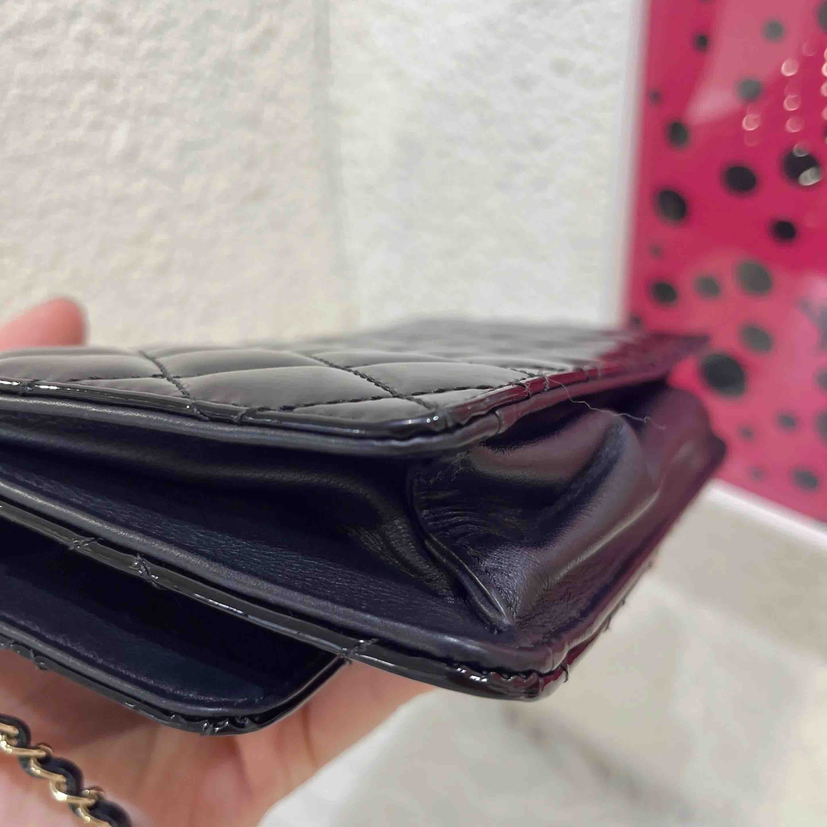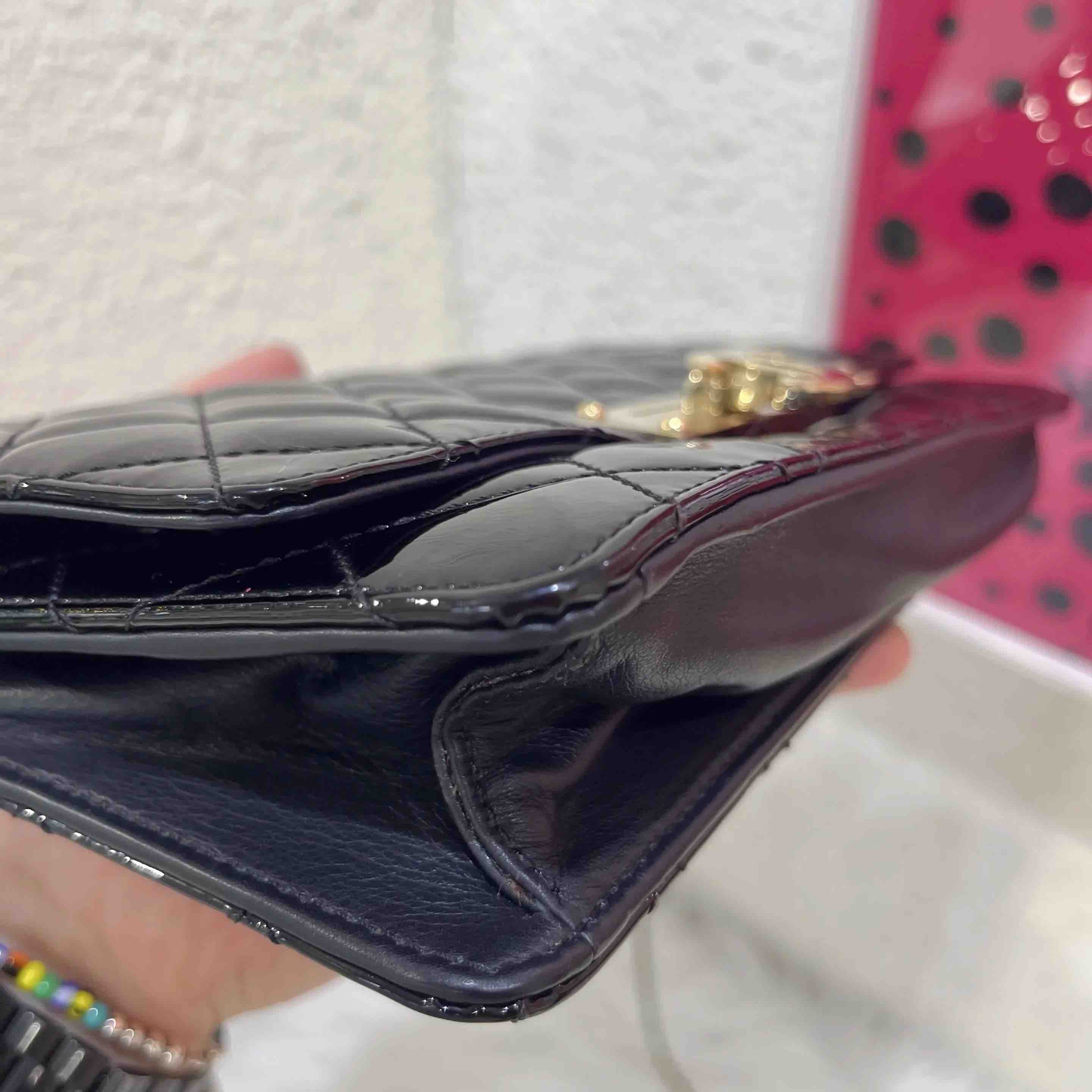 【商品详情】正品二手 Chanel 古巴 宫廷扣 漆皮 黑金 woc 斜挎包🤑95新 26*14 镭射19开 配件:链条。金属正常使用感。绝版漆皮chanel
