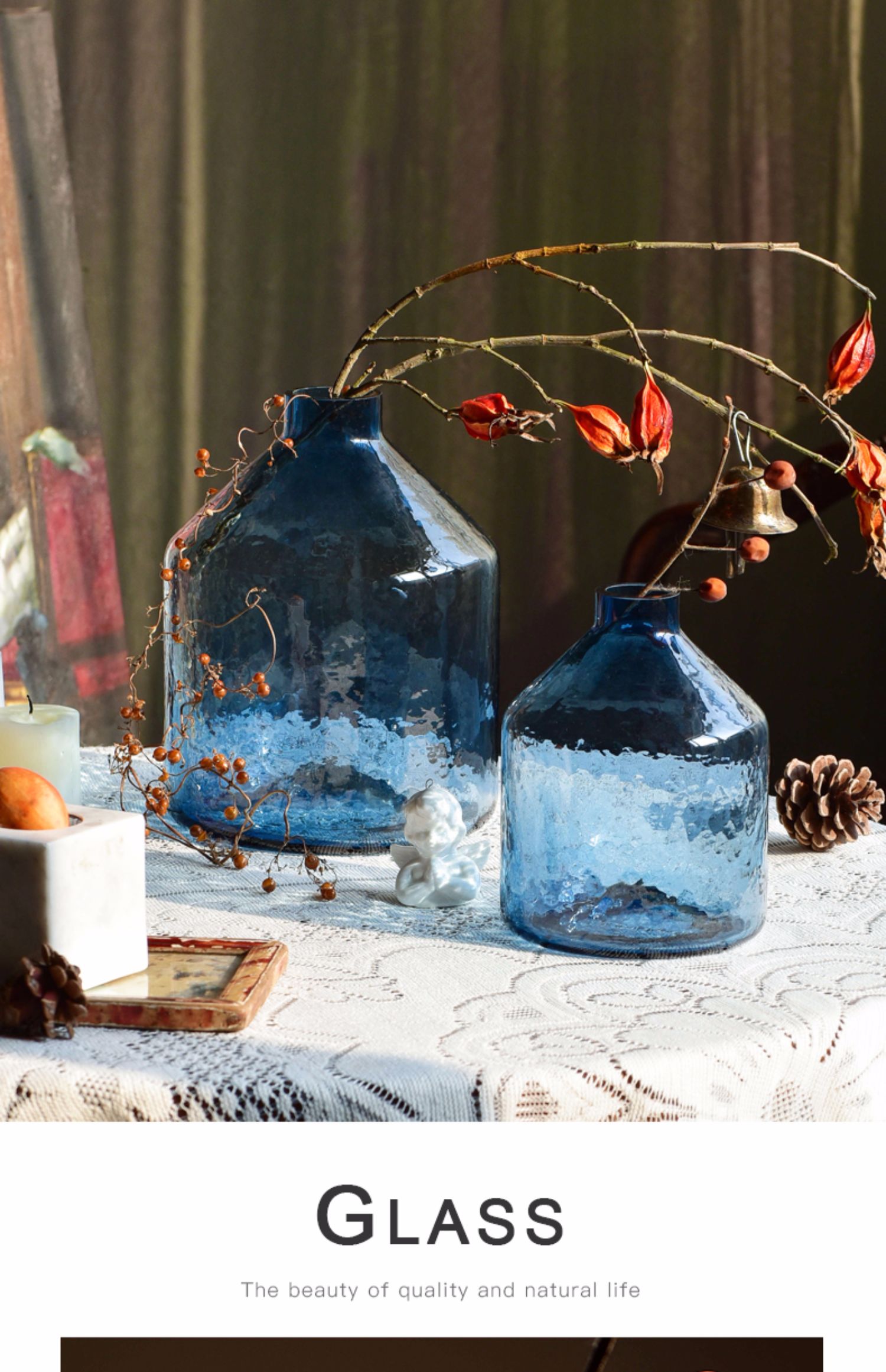 碧轩现代轻奢玻璃花瓶摆件 家居装饰品酒店样板间花器餐桌客厅