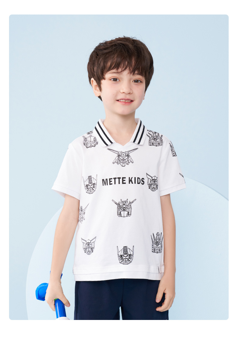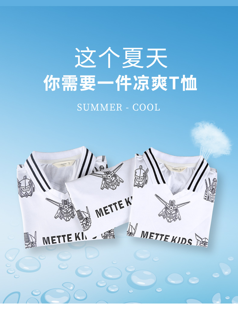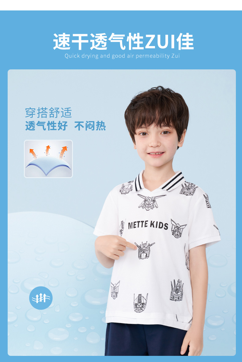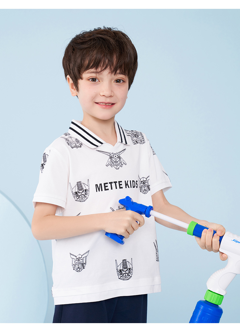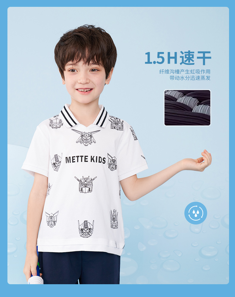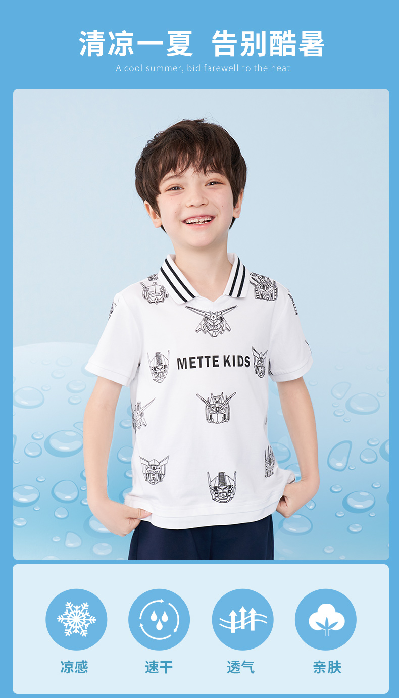 mettekids男童短袖T恤夏季儿童洋气卡通上衣中大童冰感透气polo衫