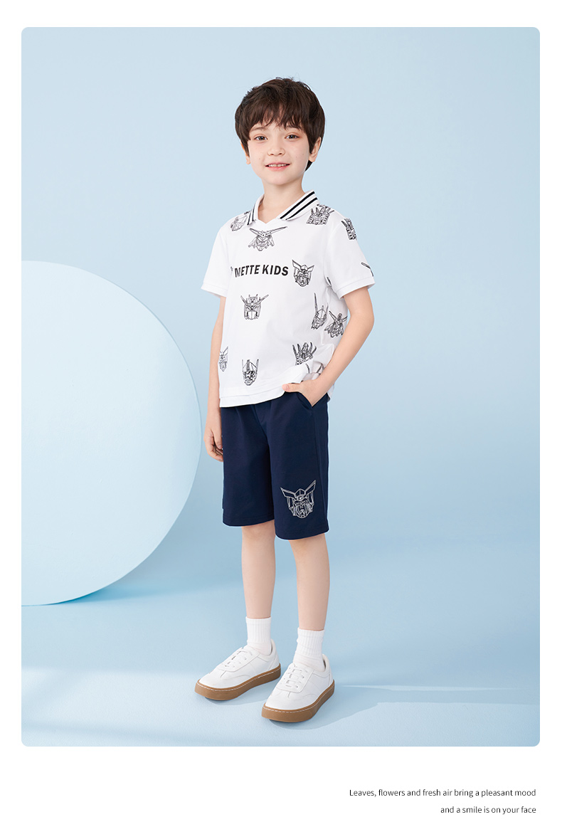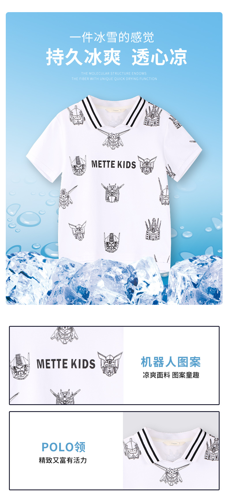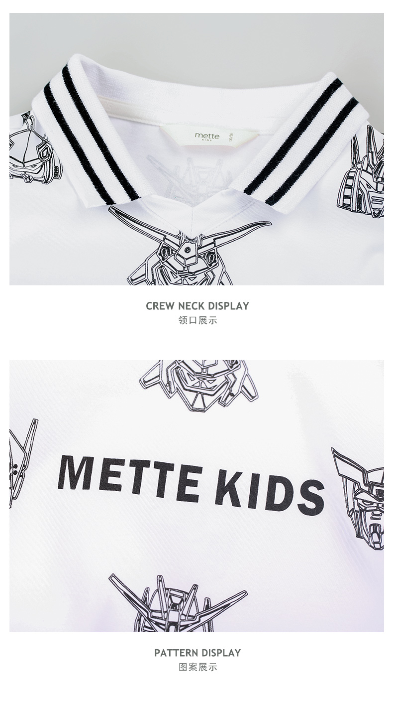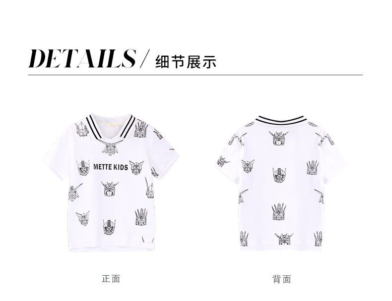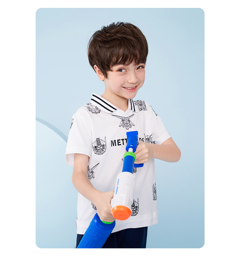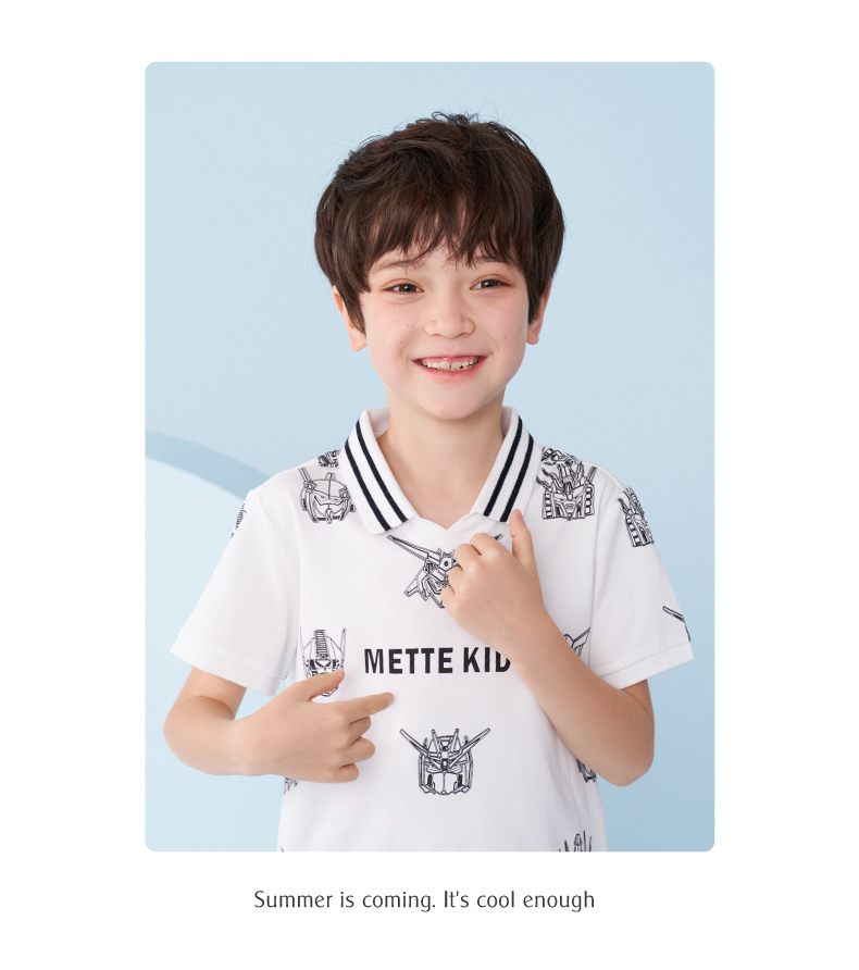 mettekids男童短袖T恤夏季儿童洋气卡通上衣中大童冰感透气polo衫