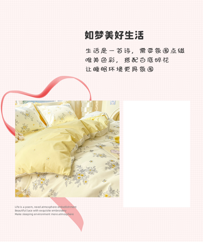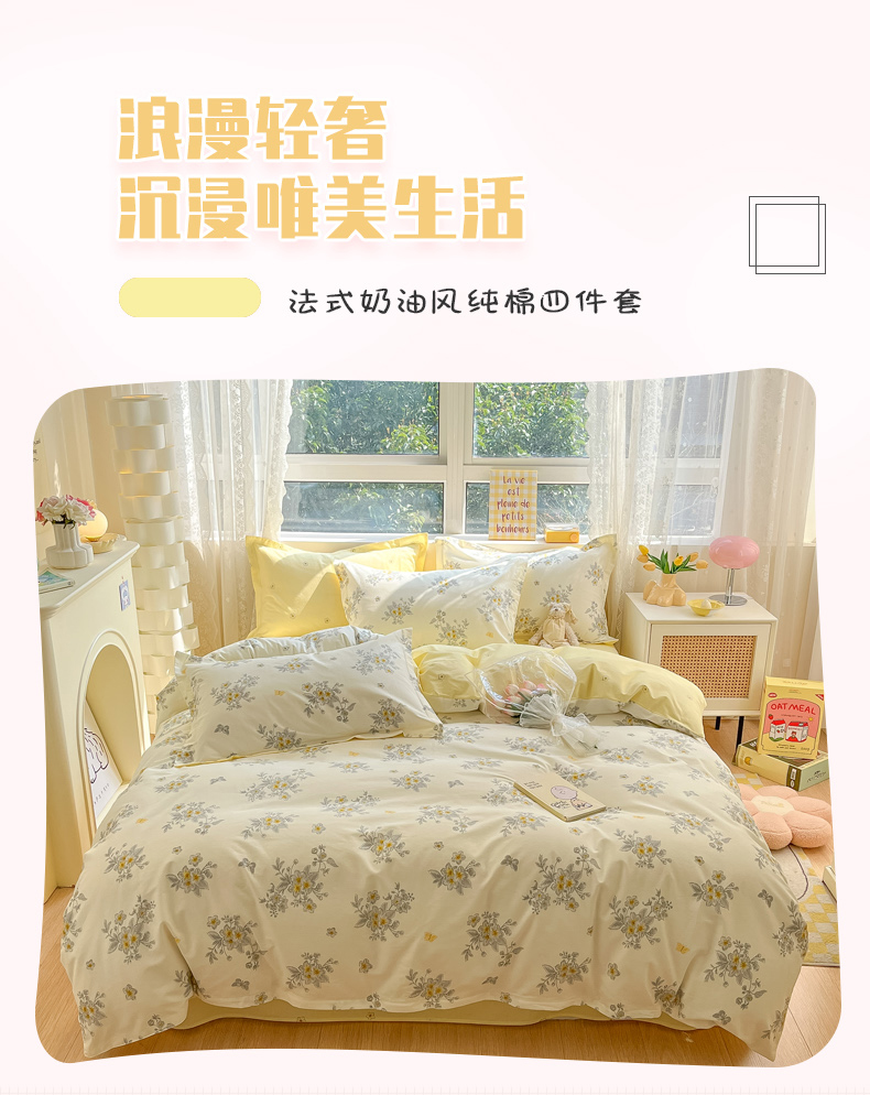 新品热卖 利路米全棉法式风淡雅清新四件套 柔软舒适 色彩宜人