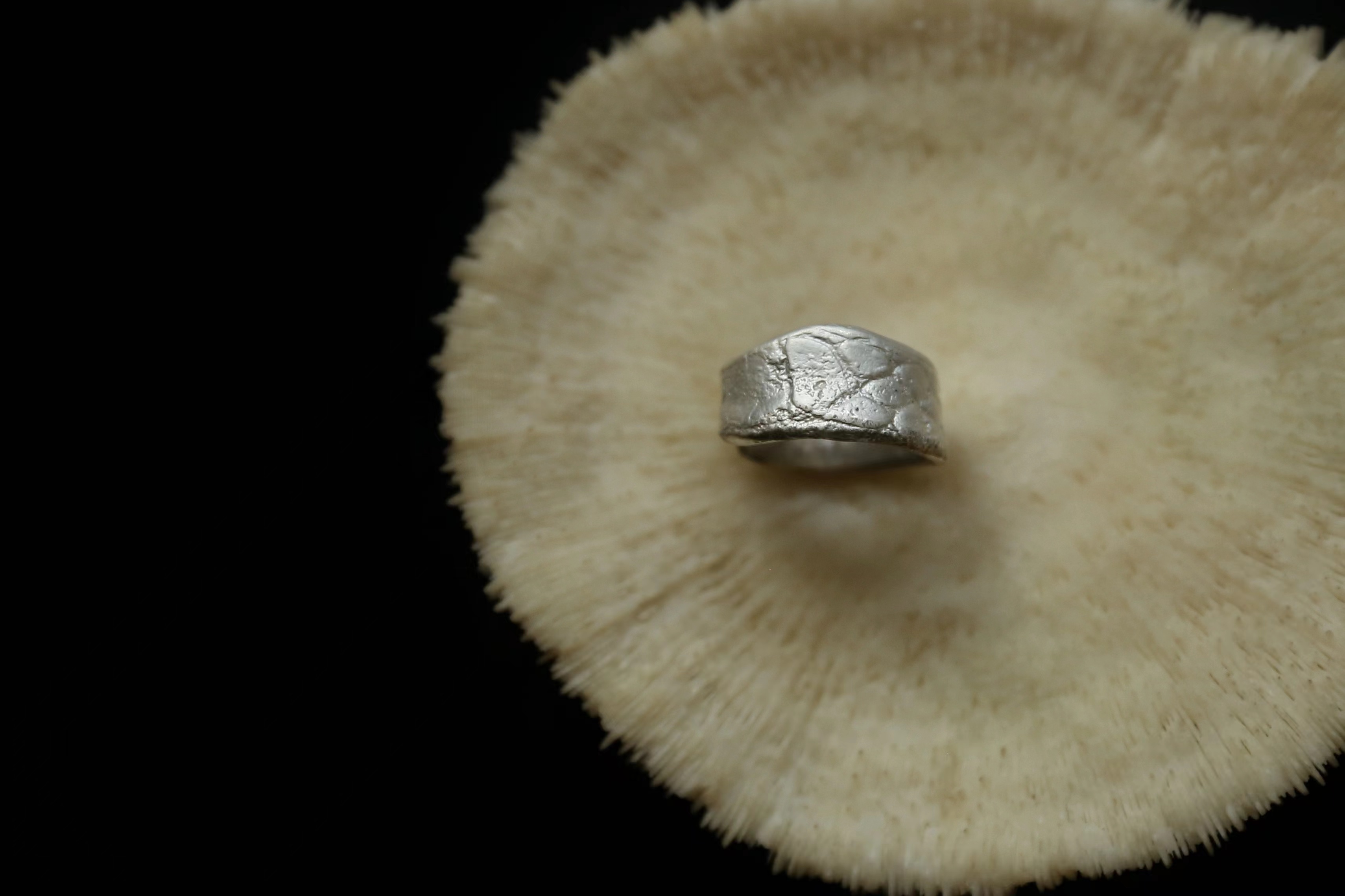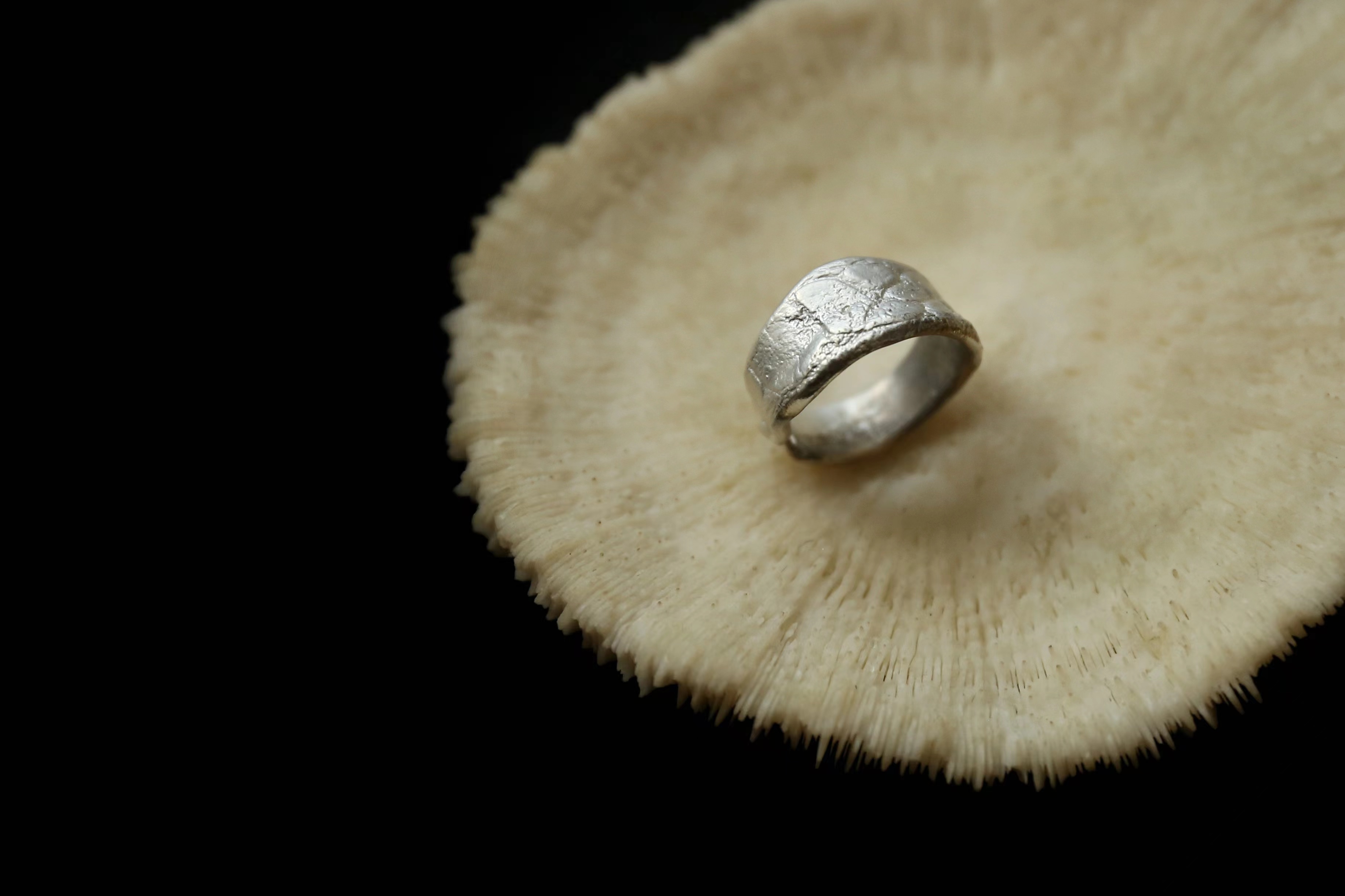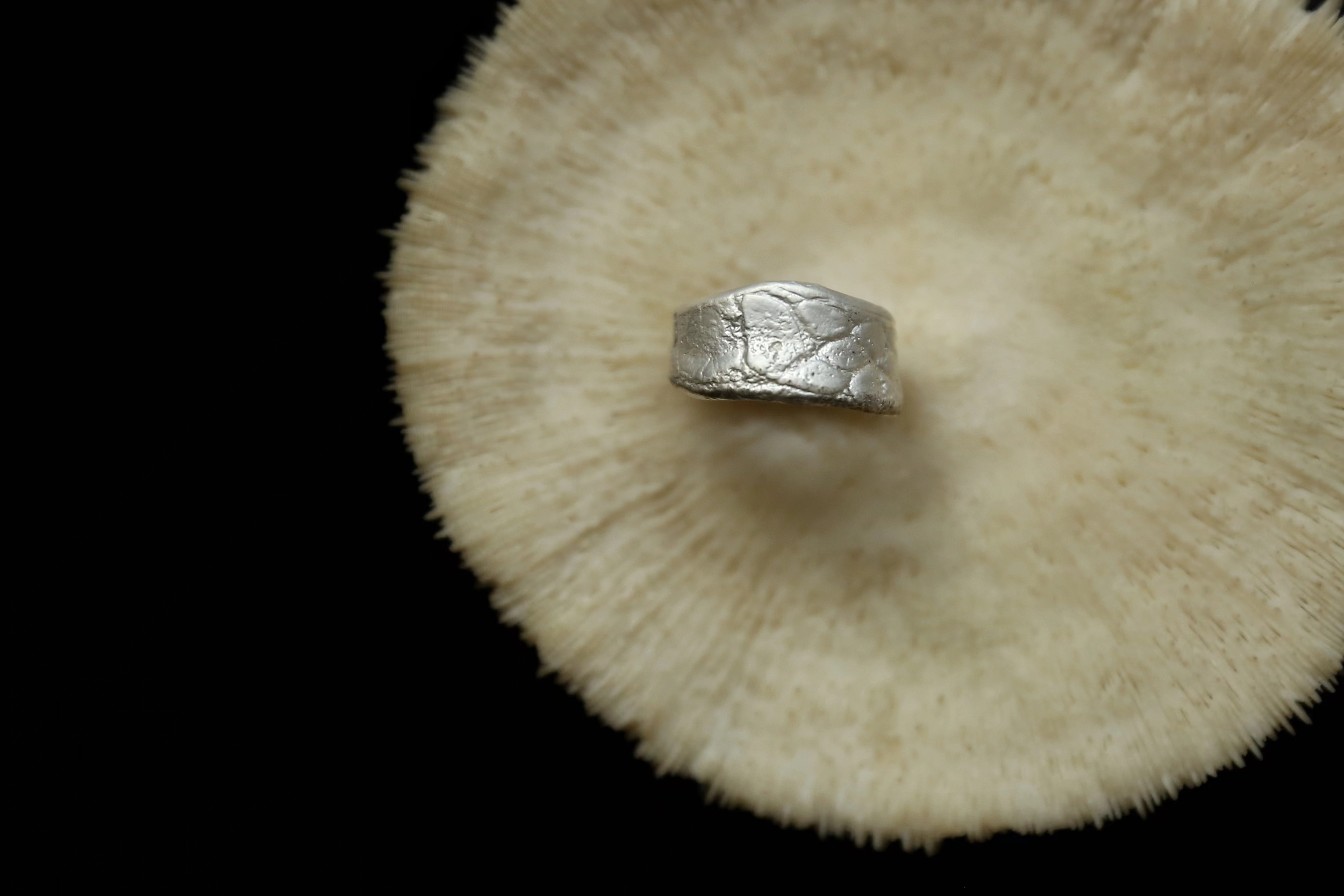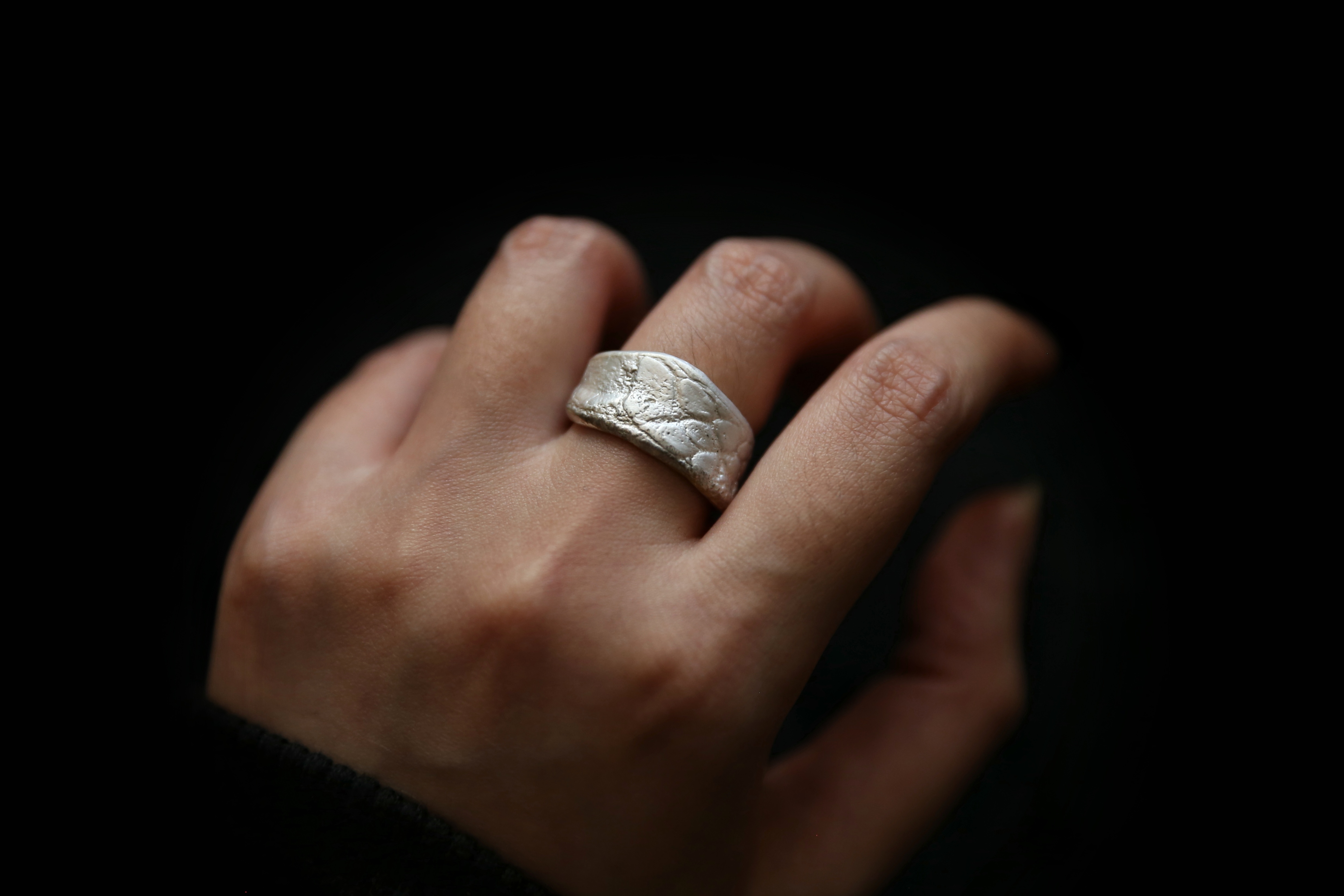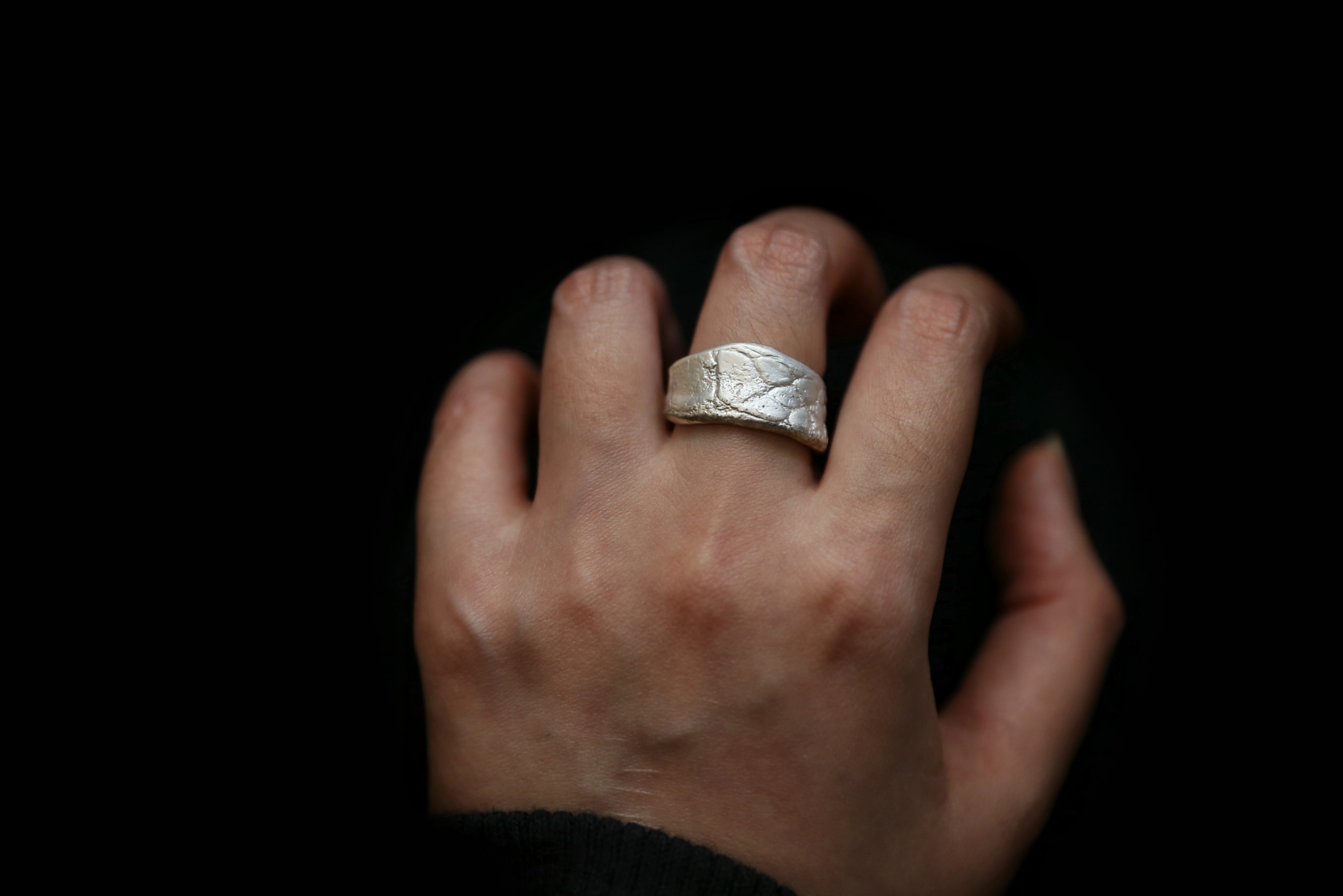 925银手工皮革肌理戒指