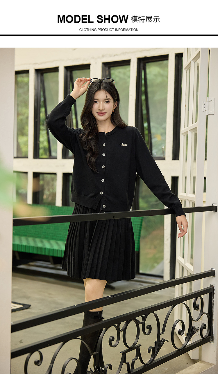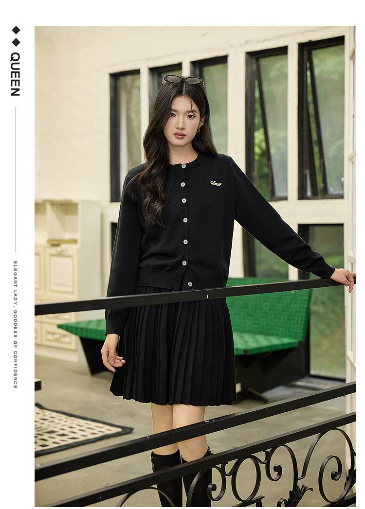 奢姿大码女装2025冬季减龄字母胸针设计圆领针织衫胖妹妹百搭上衣9654353815A