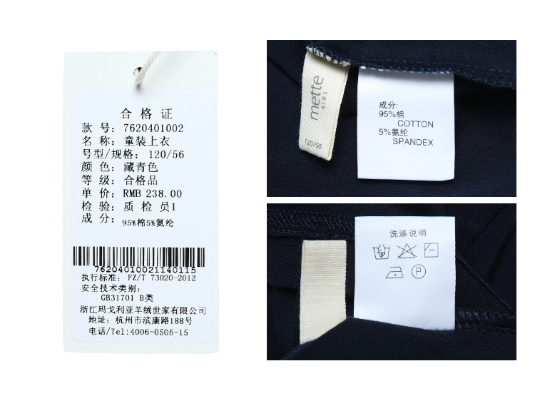 | 安全等级: B类 | 材质成分: 棉95% 聚氨酯弹性纤维(氨纶)5% |