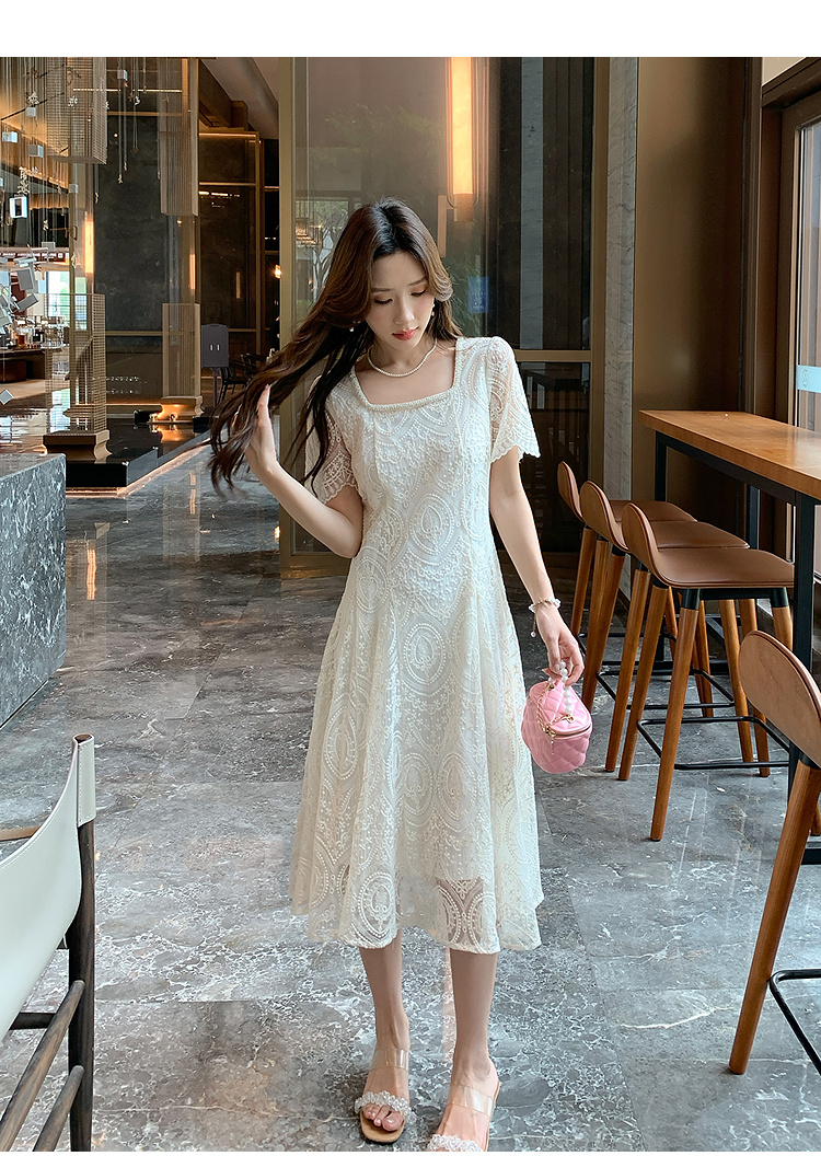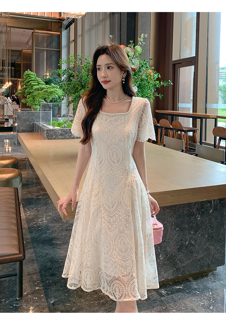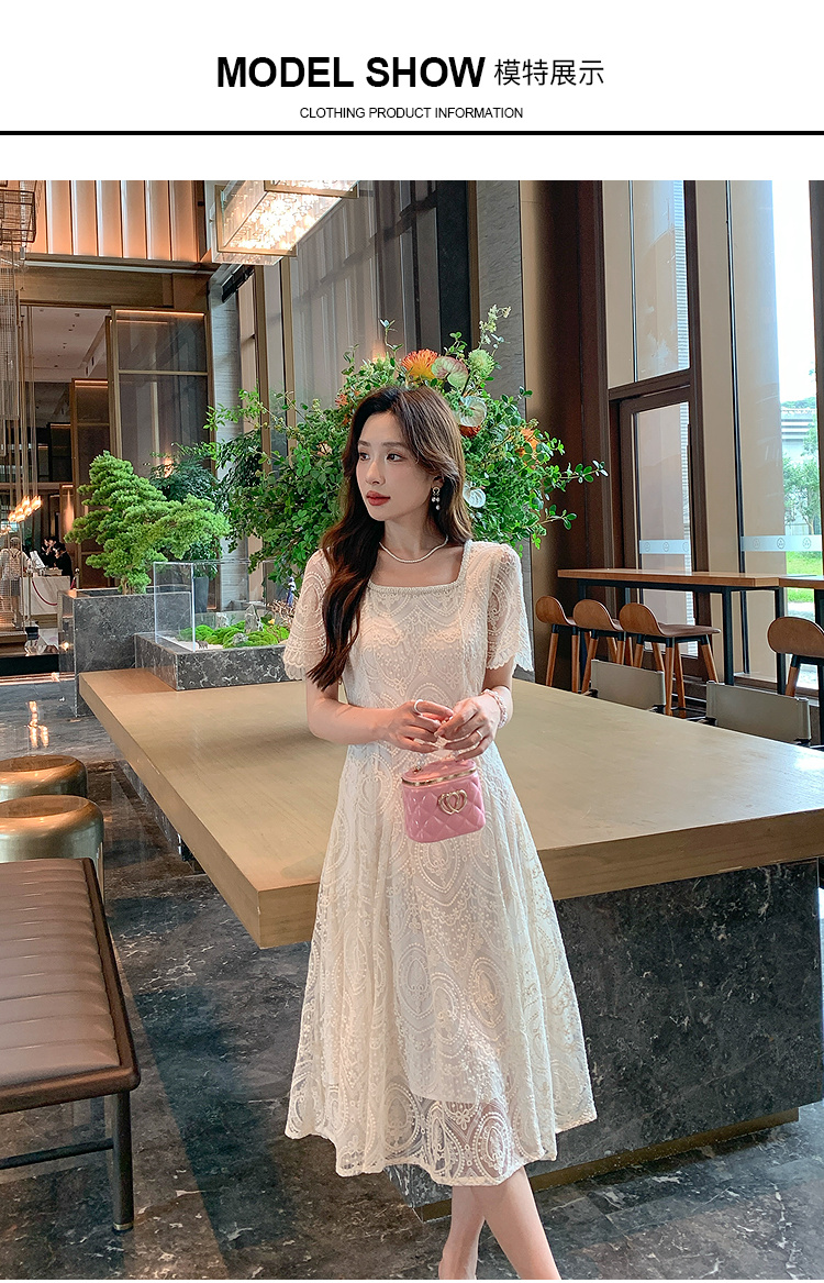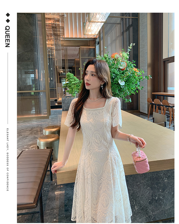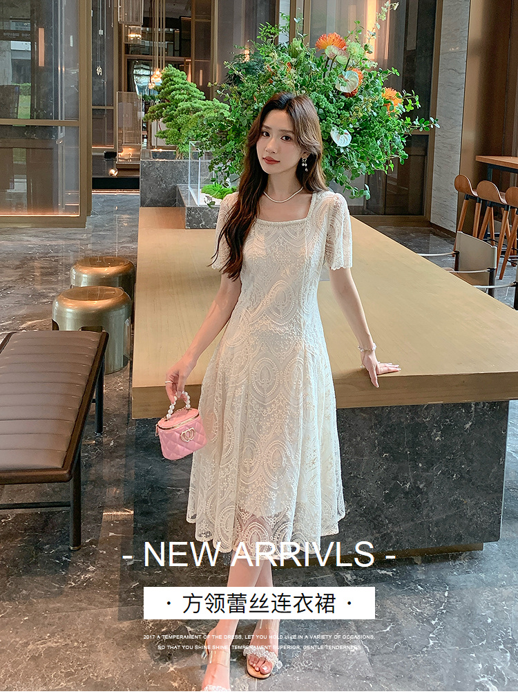 奢姿大码女装2025夏季温柔风蕾丝连衣裙胖妹妹方领法式气质裙子9952853248