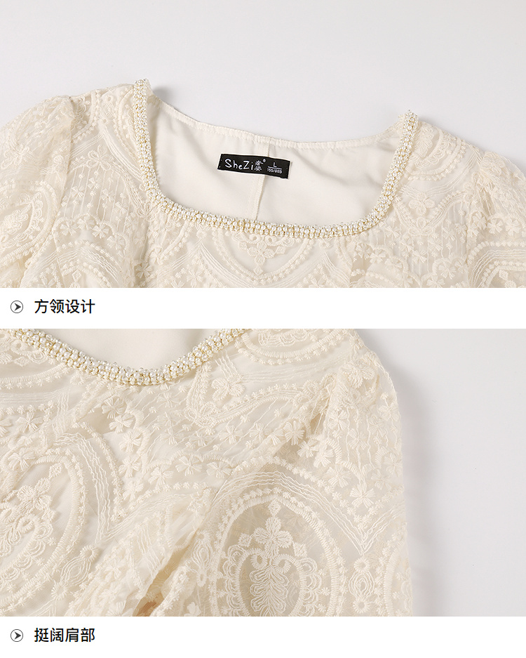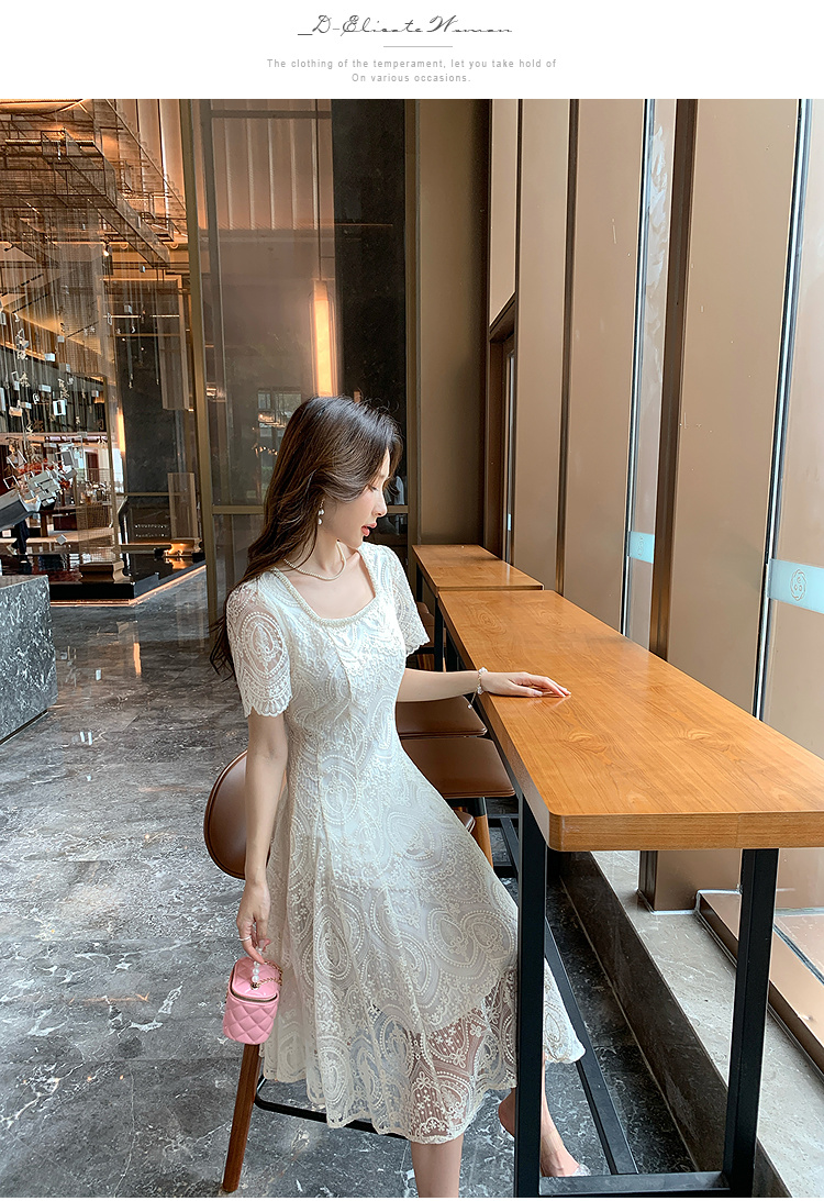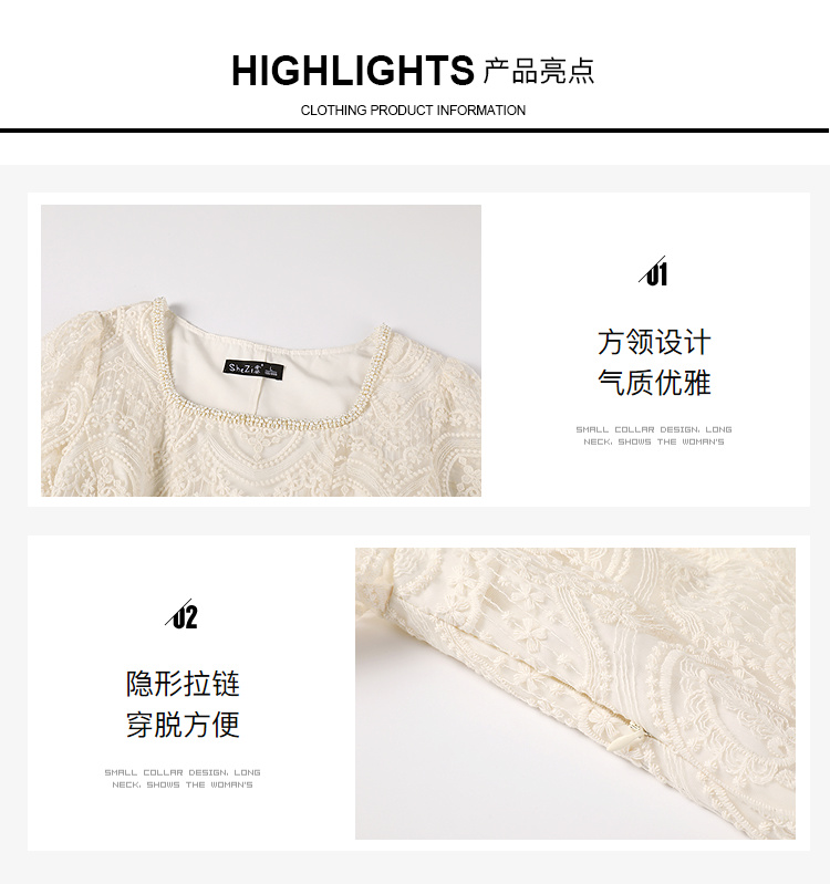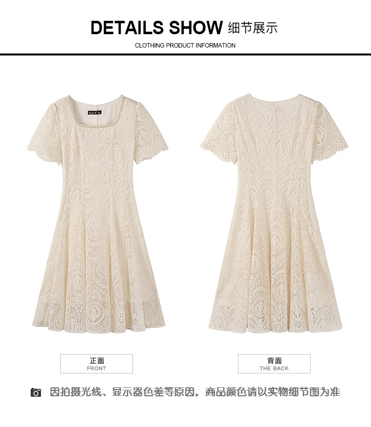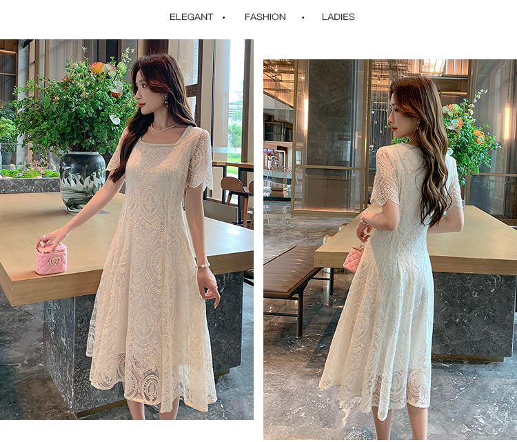 奢姿大码女装2025夏季温柔风蕾丝连衣裙胖妹妹方领法式气质裙子9952853248