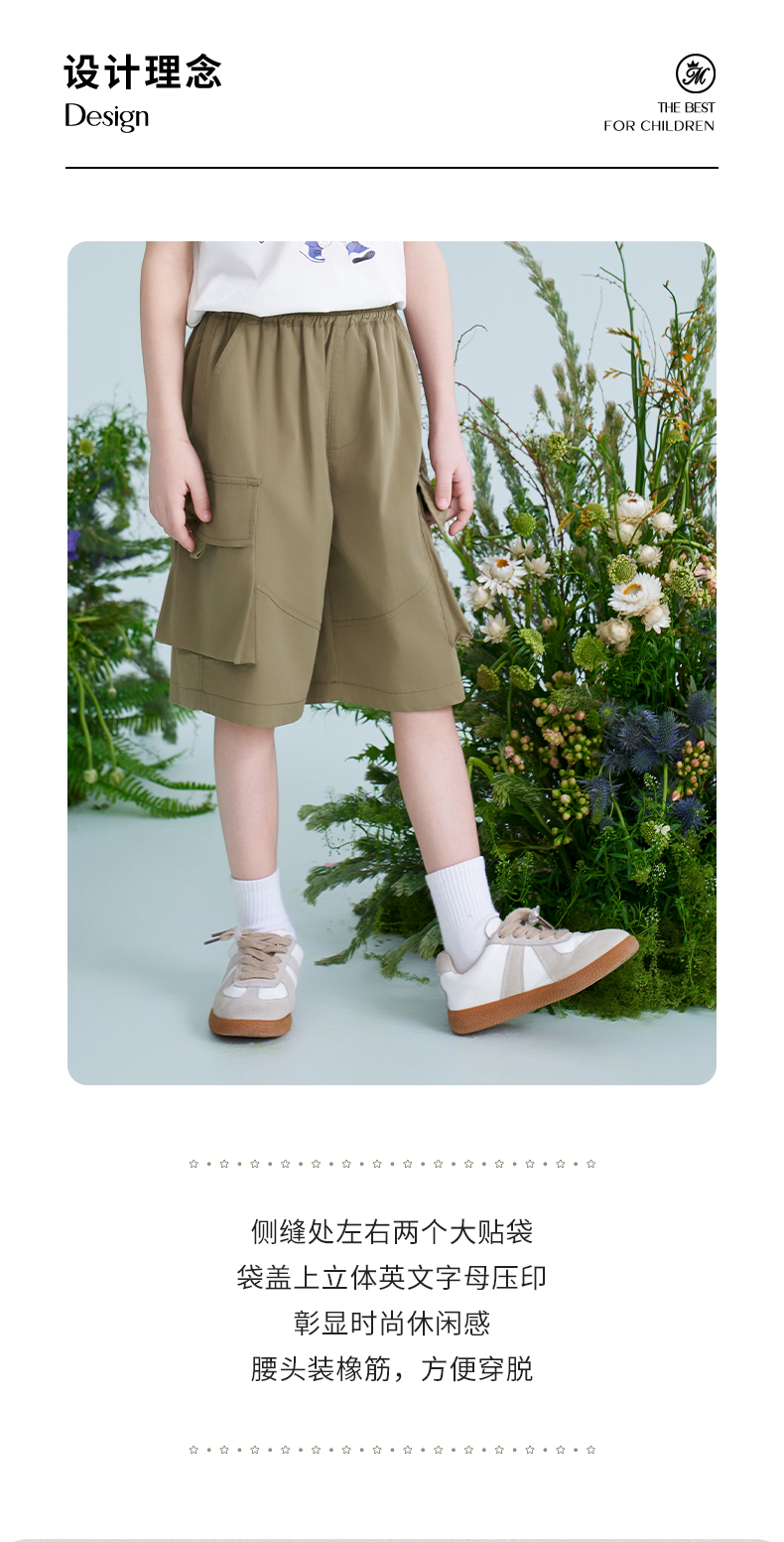 mettekids男童短裤2025夏季新款儿童五分裤运动休闲中大童裤子