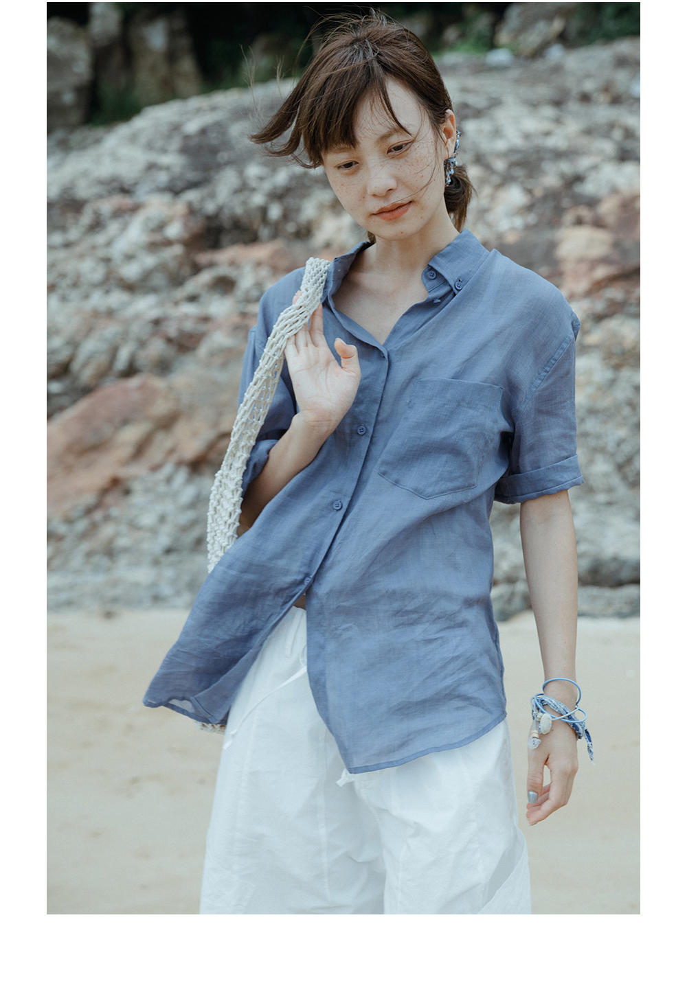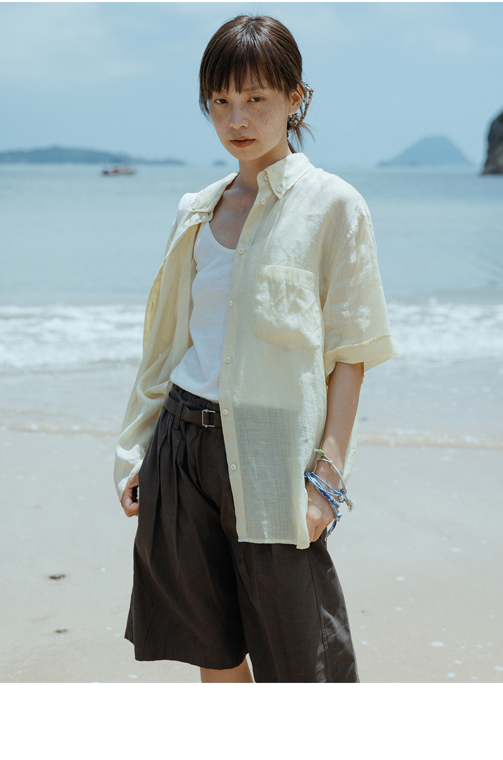 步履不停/5B11264C/100支苎麻短袖衬衫