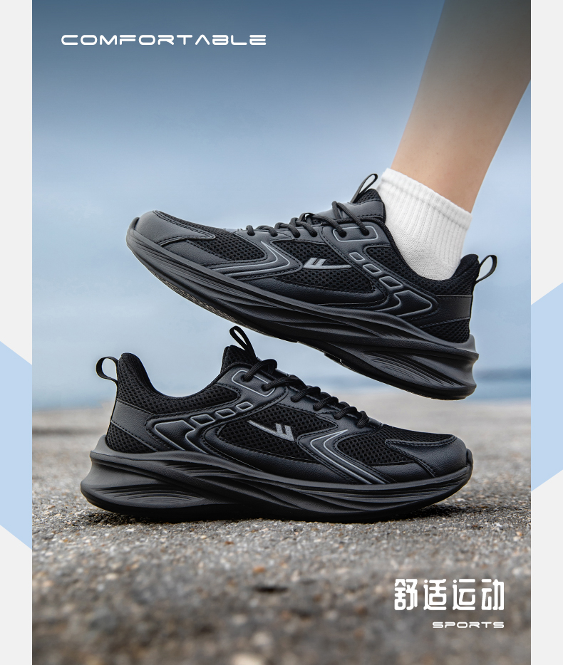 回力男鞋黑色运动鞋冬季爆款休闲鞋子软底缓震男款轻便皮面跑步鞋WXY-H252YW