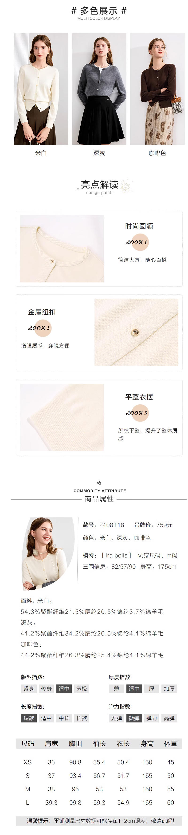 【百图lulu定制】【金豆开衫】羊毛混纺 柔软细腻 金色纽扣 开衫针织衫