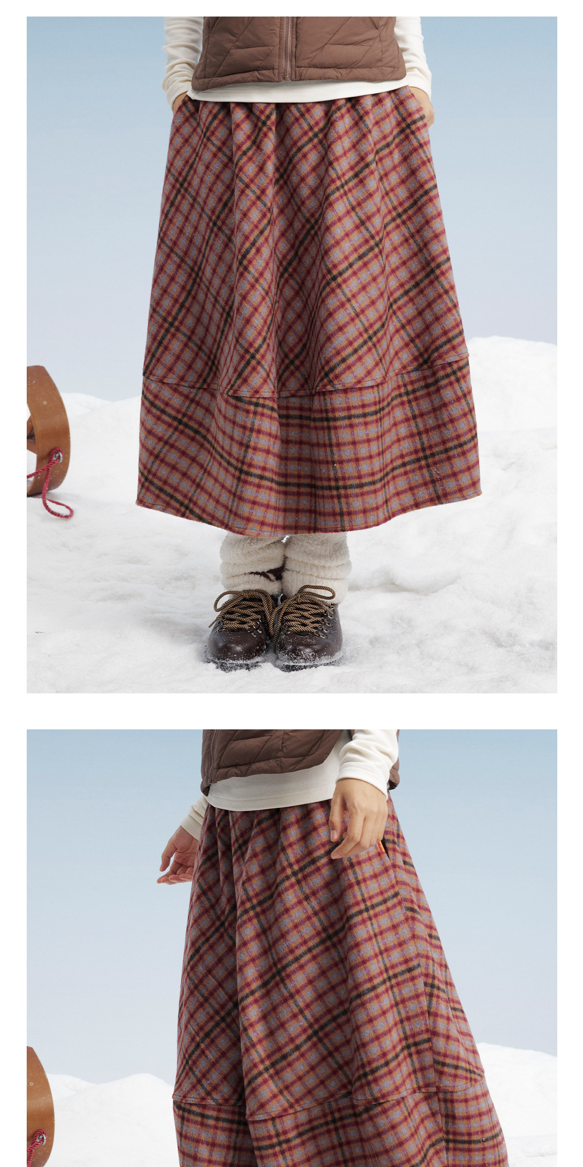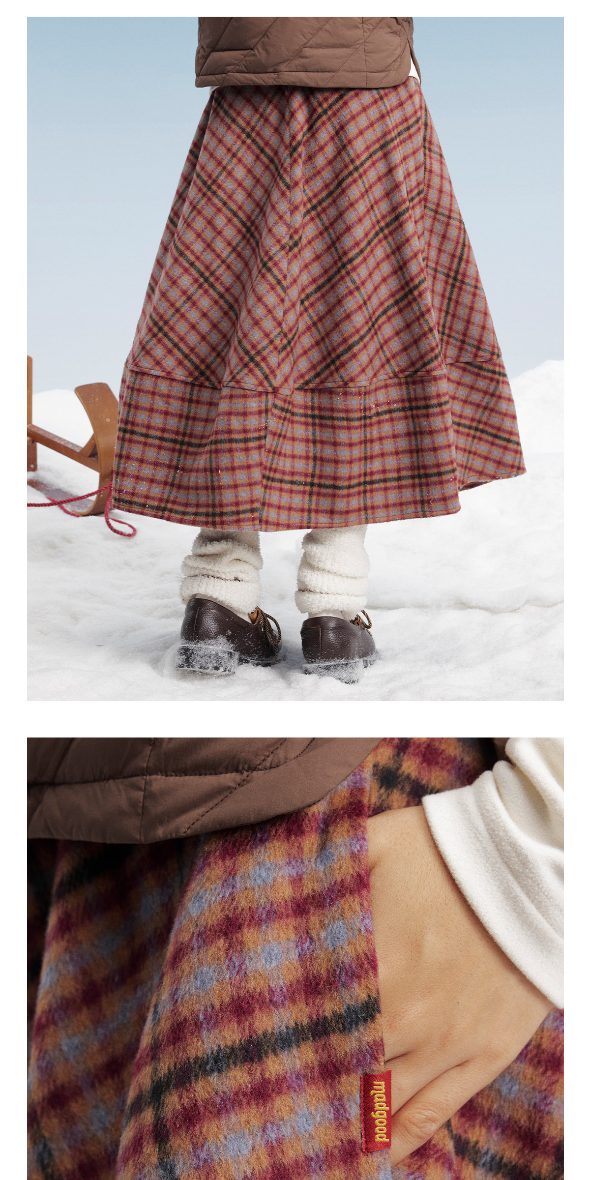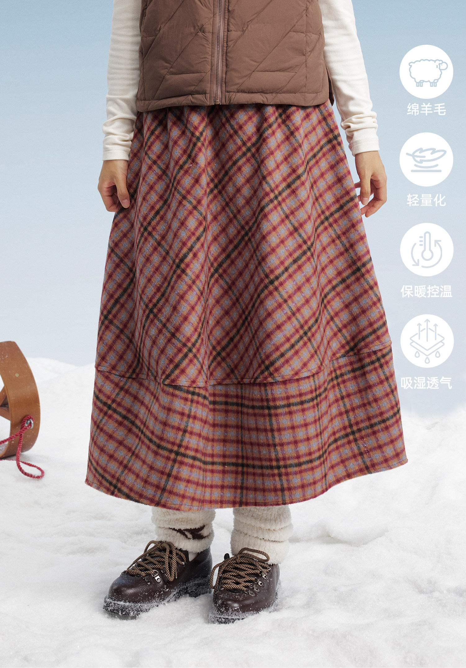 马得工地/MDGDBQ14896/毛呢格子茧形半裙