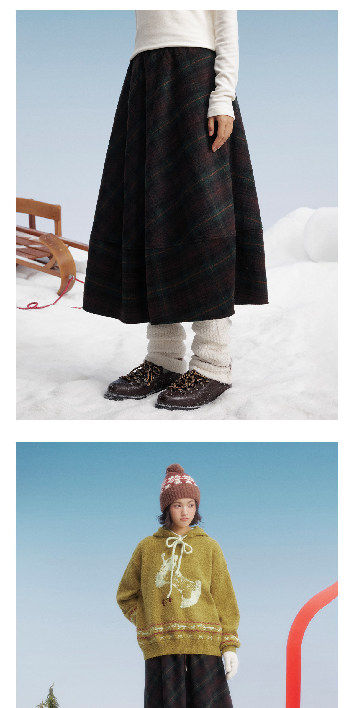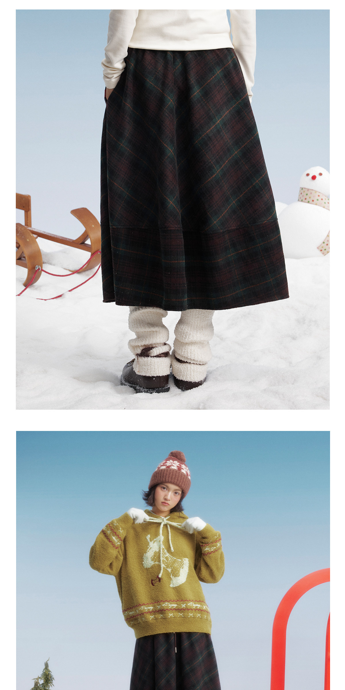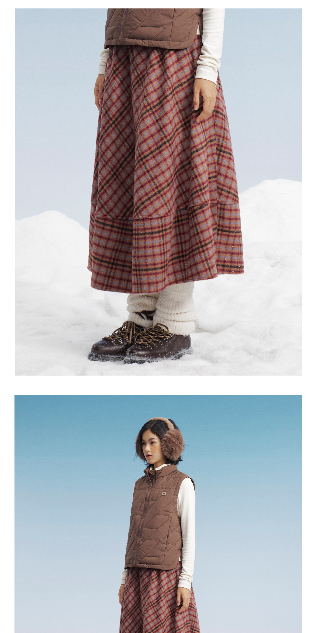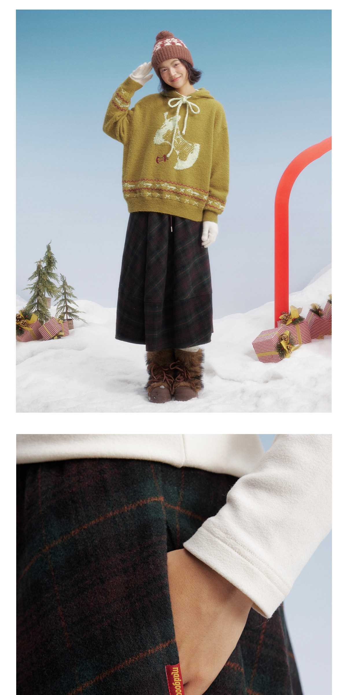 马得工地/MDGDBQ14896/毛呢格子茧形半裙