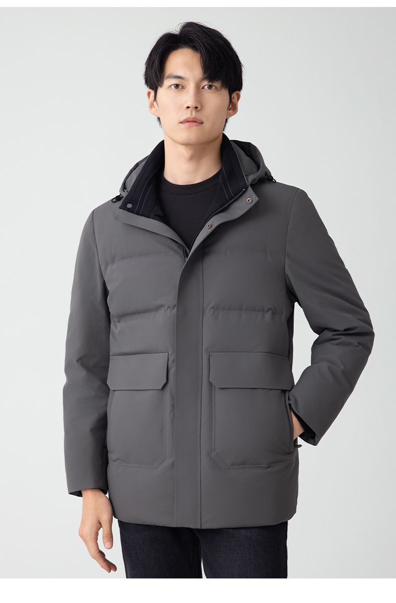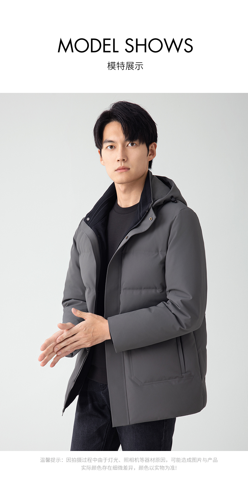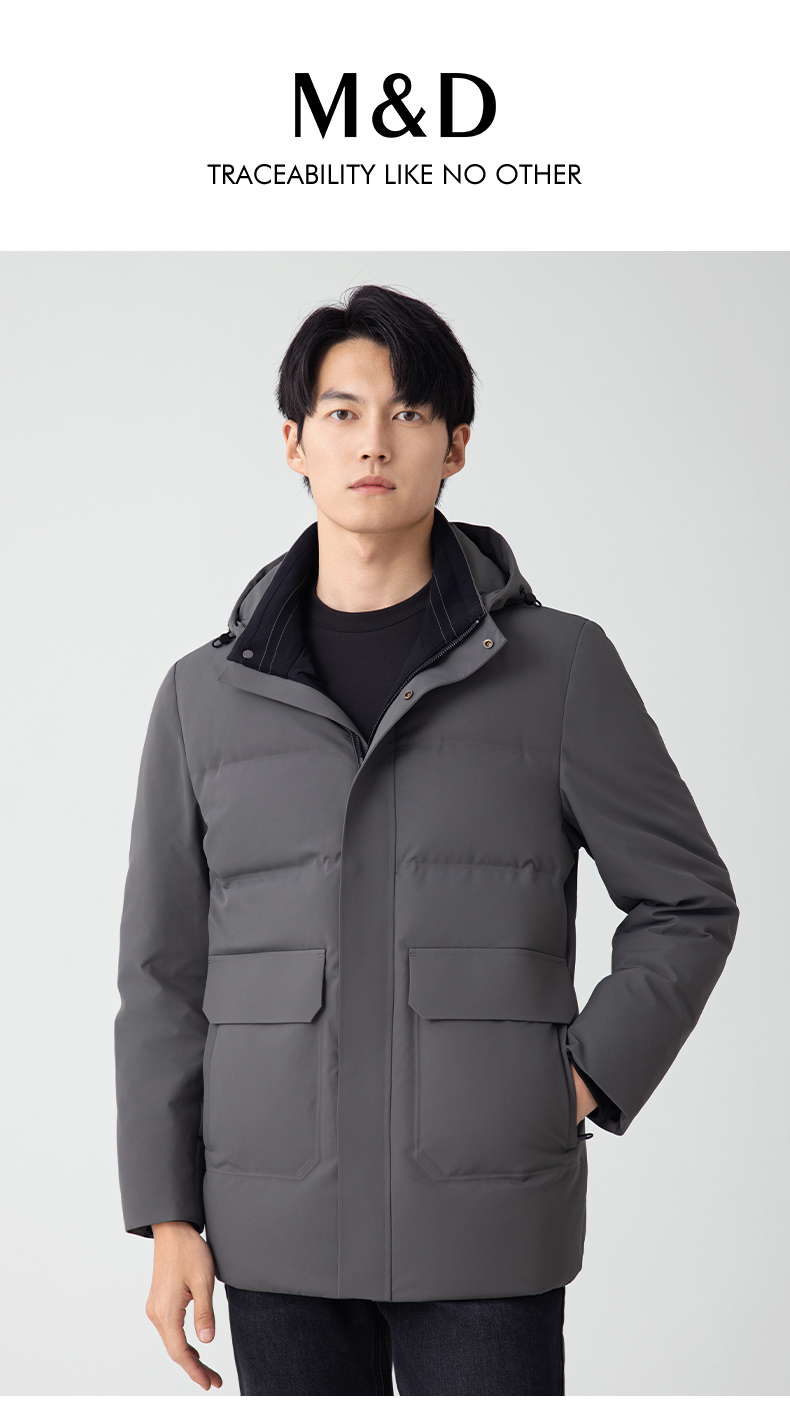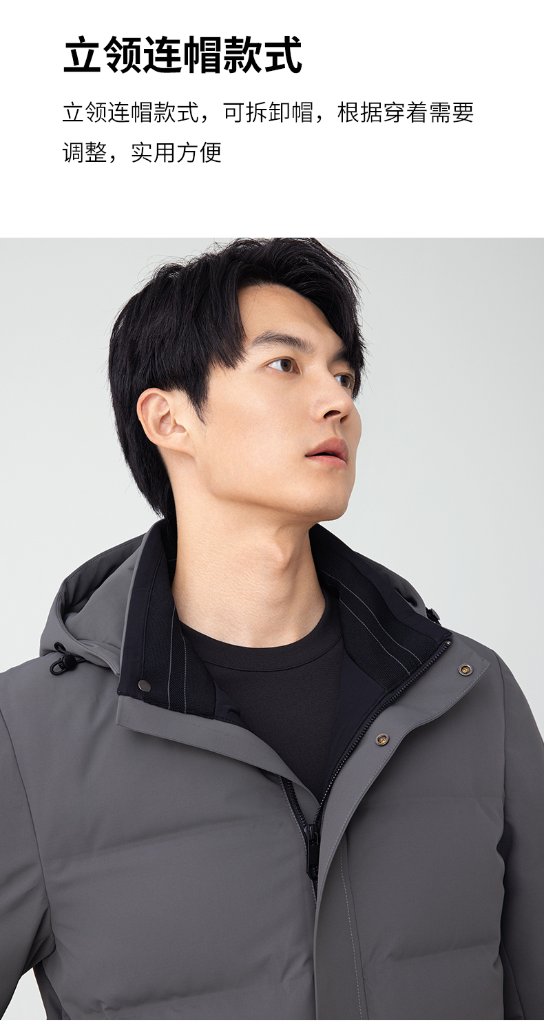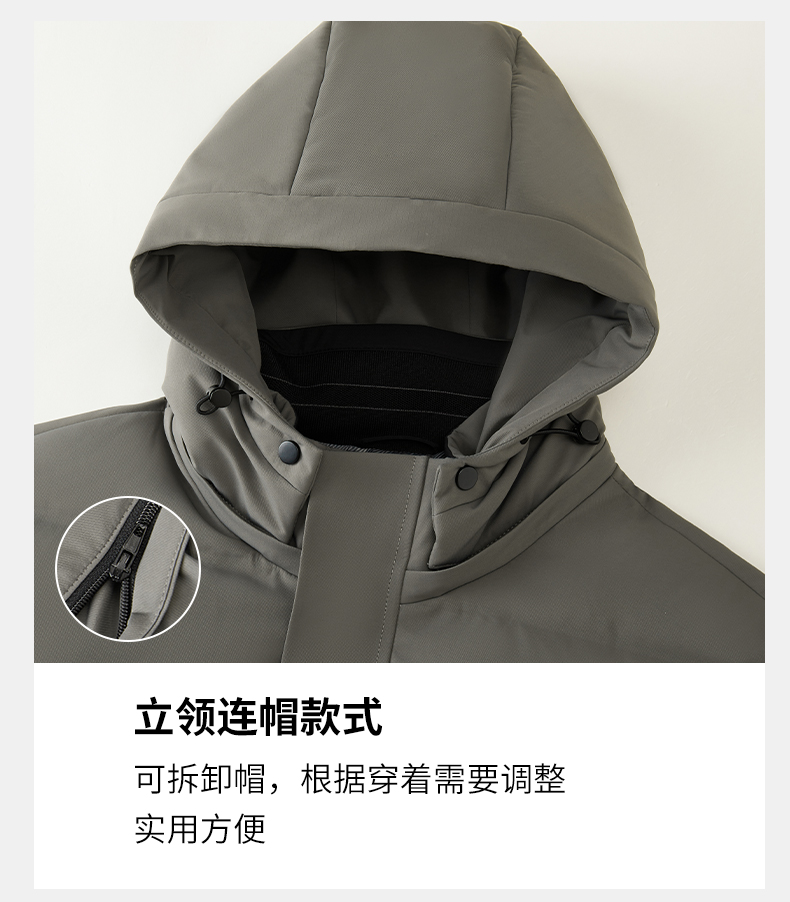 【名盾】立领连帽长款羽绒服,可拆卸帽,温暖舒适不跑绒M0DL25672B