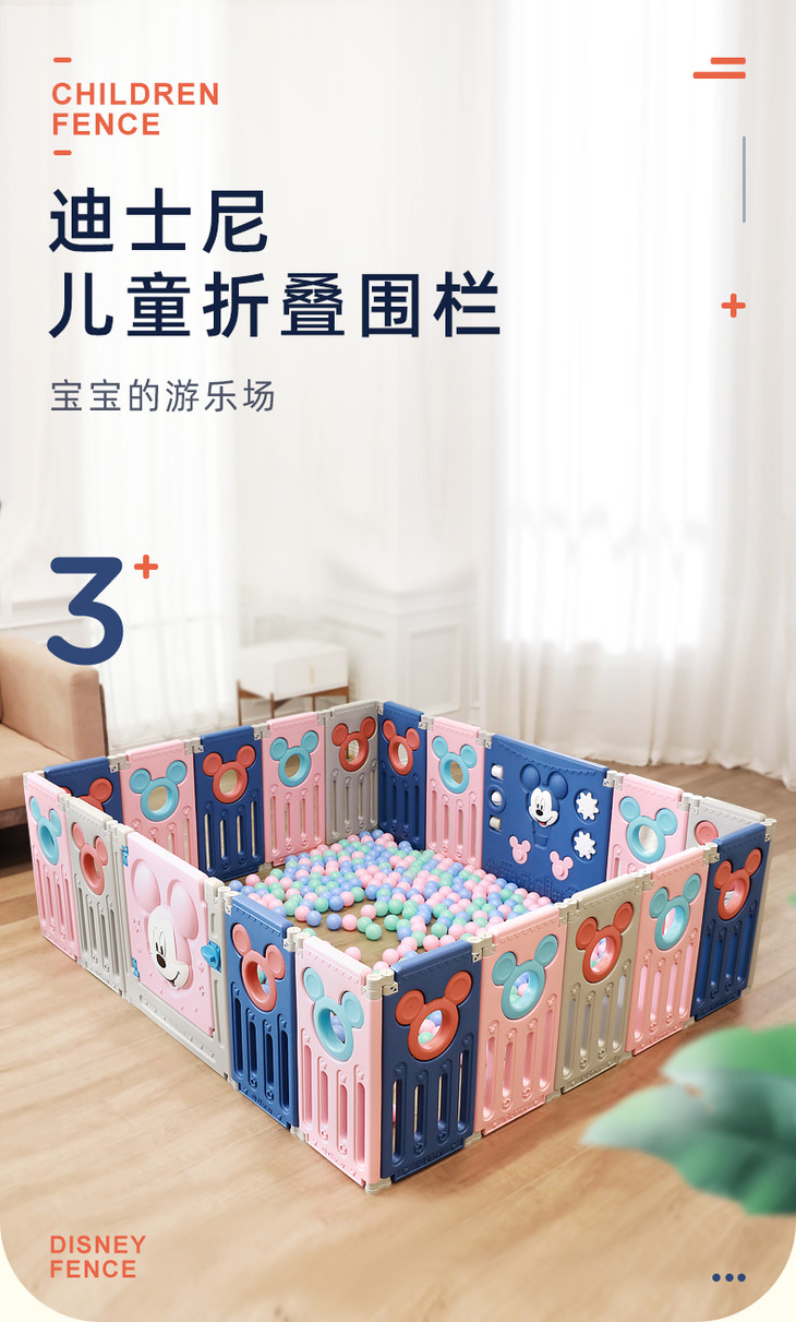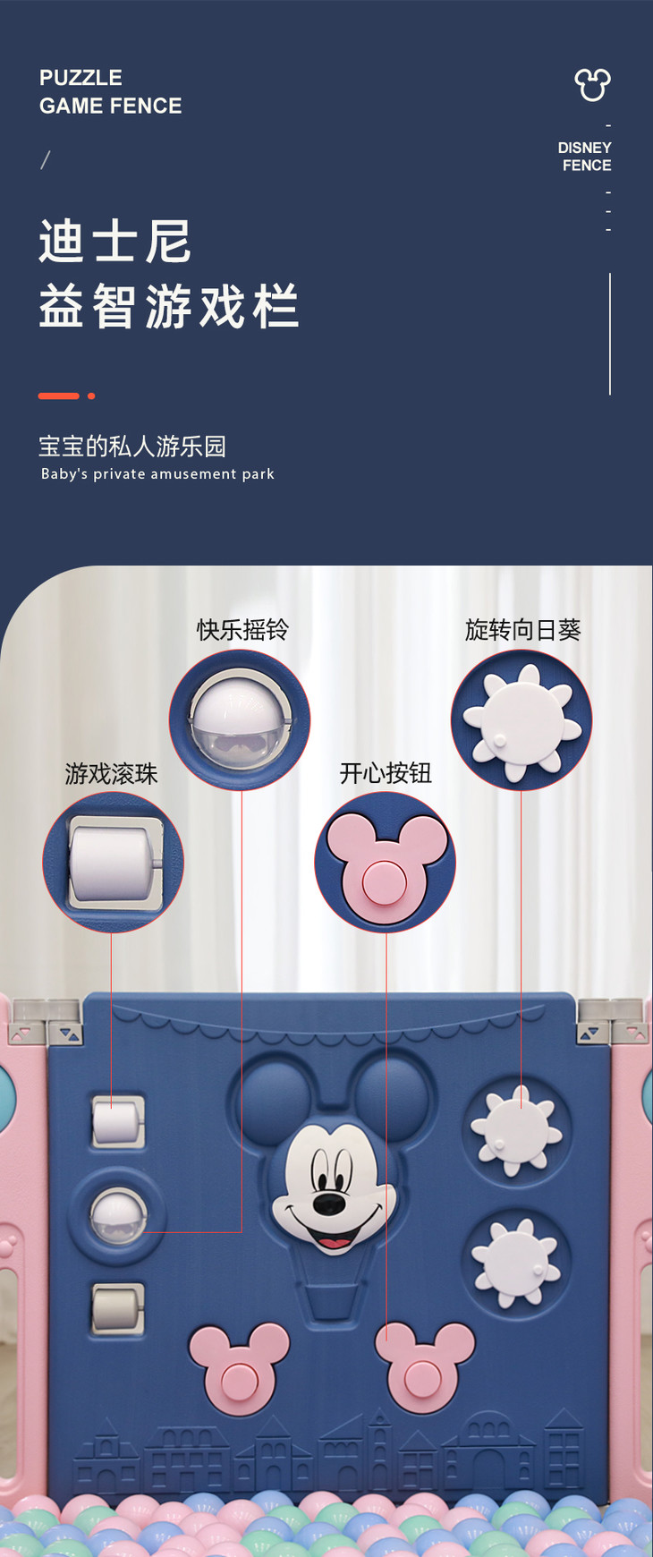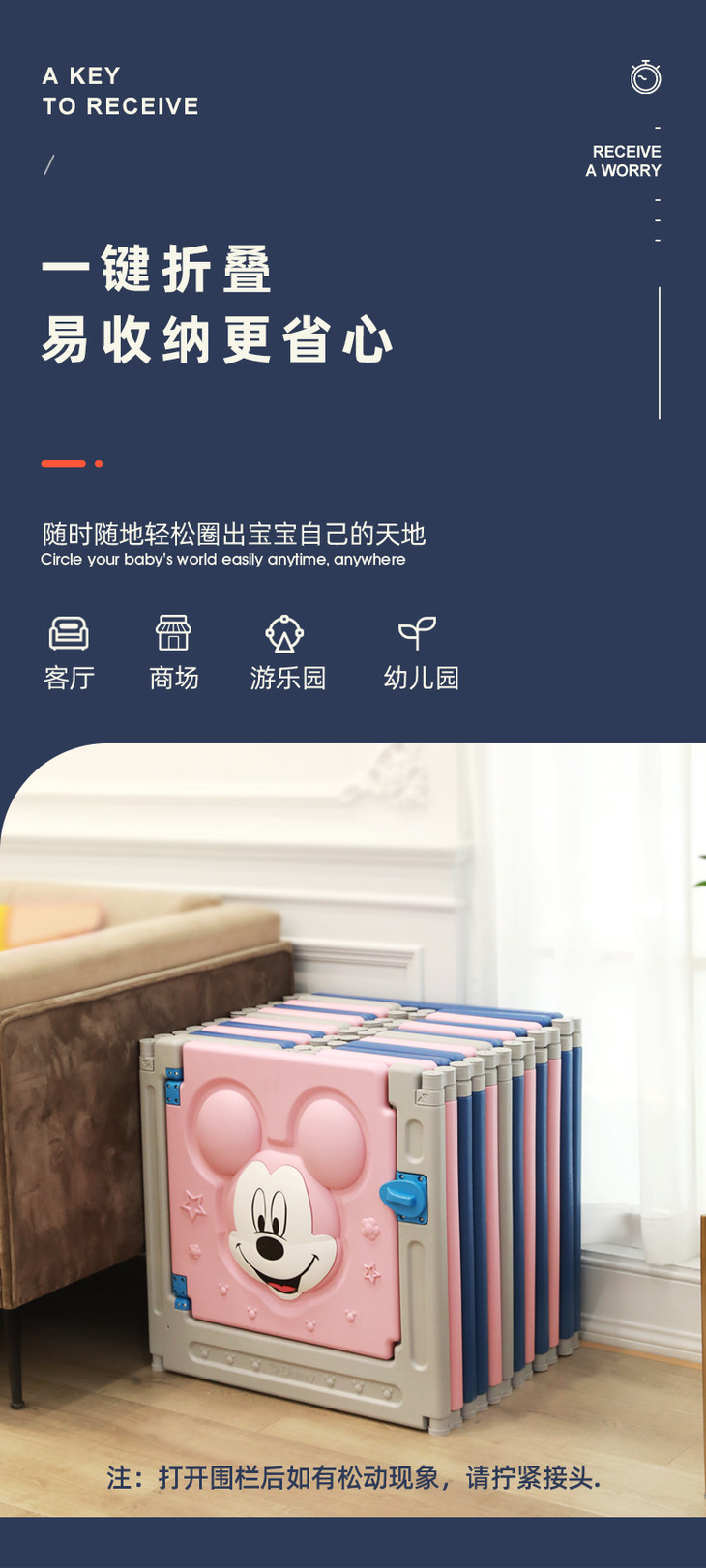 kuta迪士尼儿童游戏围栏折叠室内家用宝宝防护栏婴幼儿学步爬行栅栏