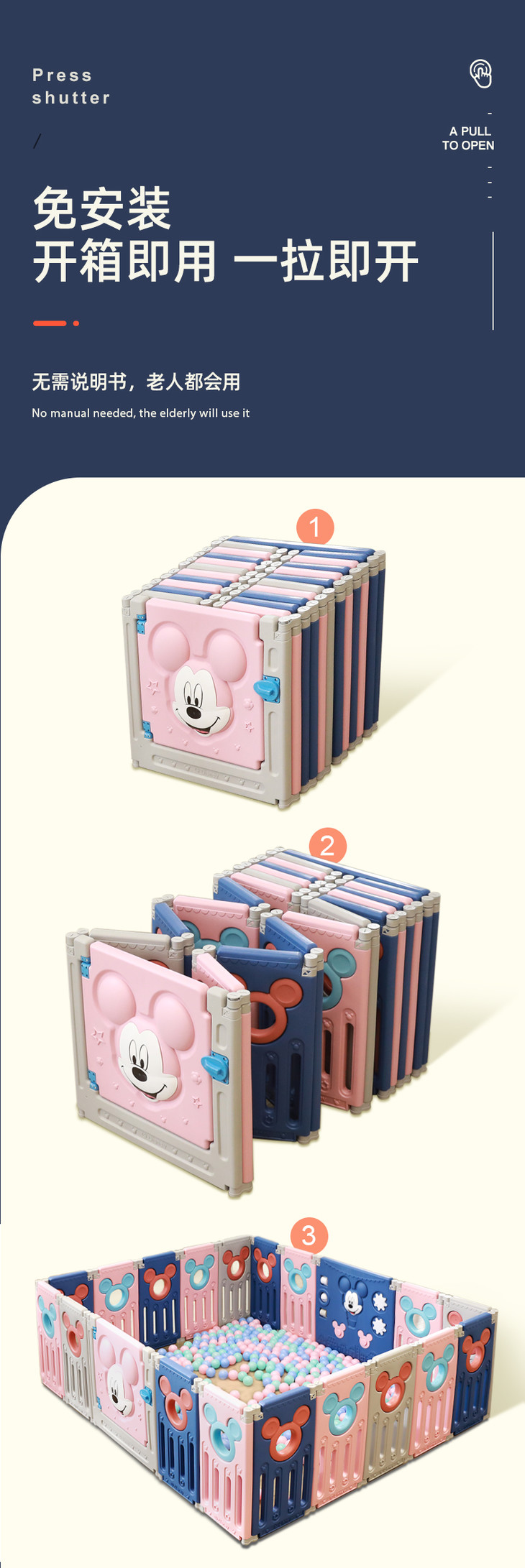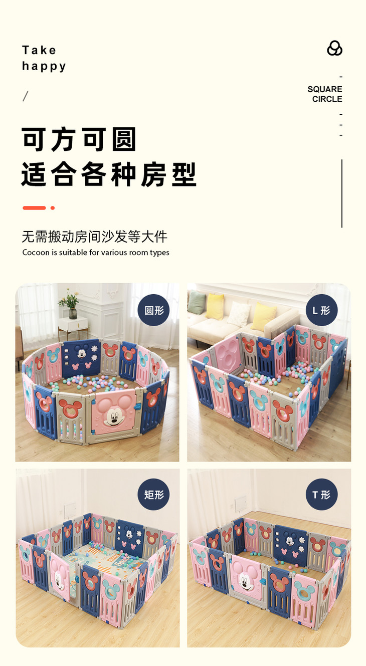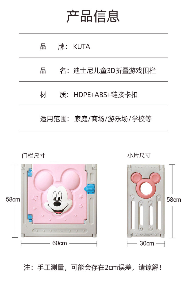 kuta迪士尼儿童游戏围栏折叠室内家用宝宝防护栏婴幼儿学步爬行栅栏