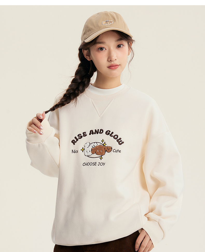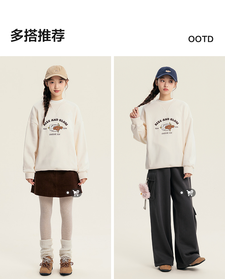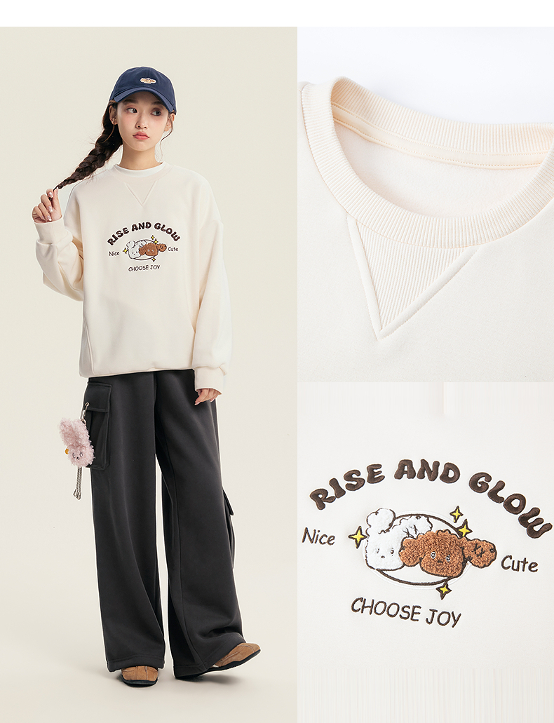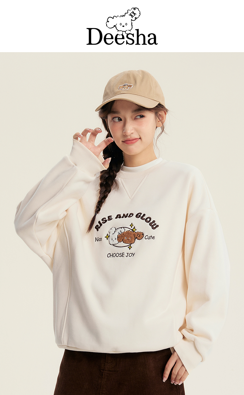 笛莎Deesha青少年女童卫衣2025冬季女童加绒小狗主题图案卫衣
