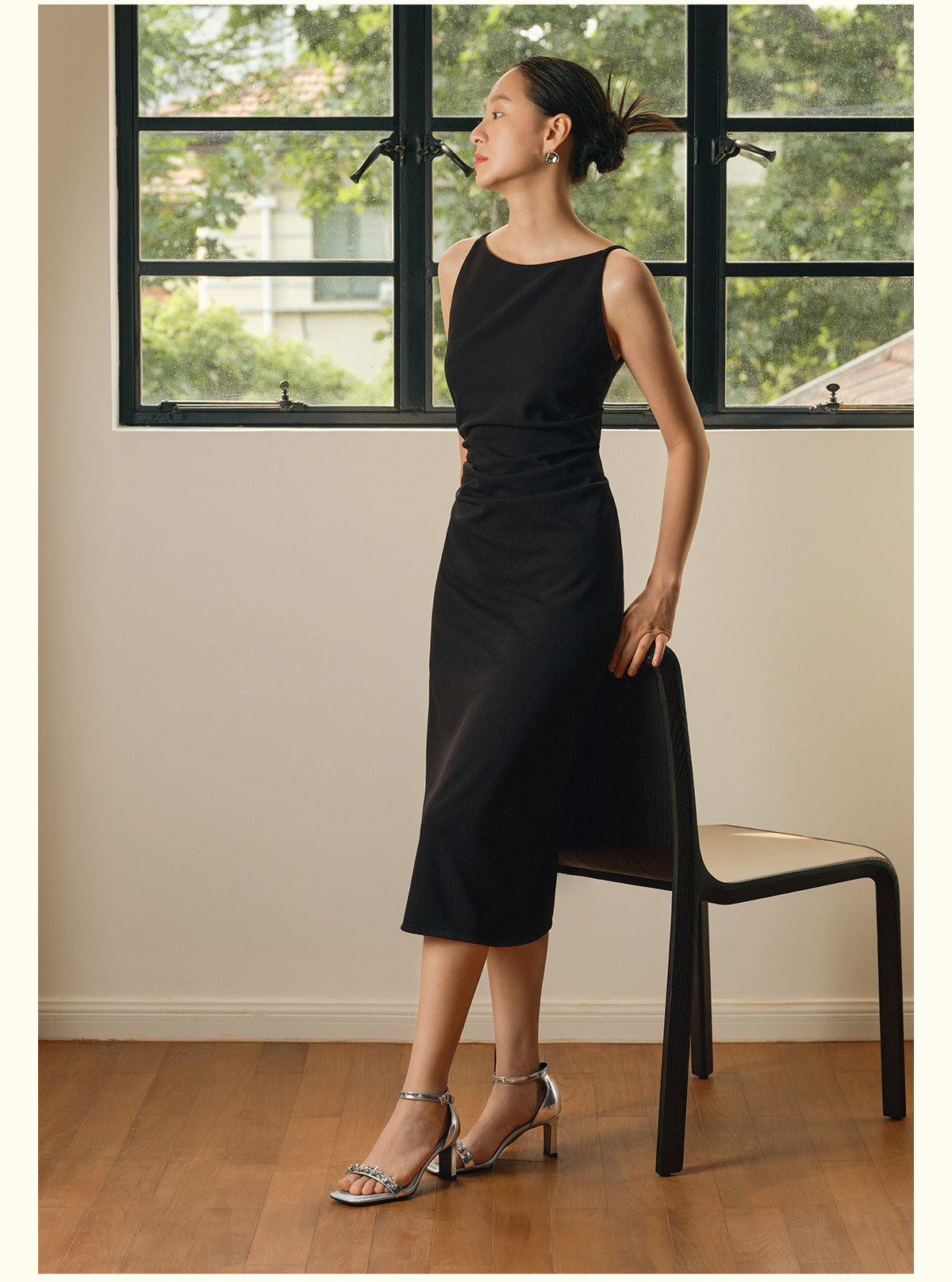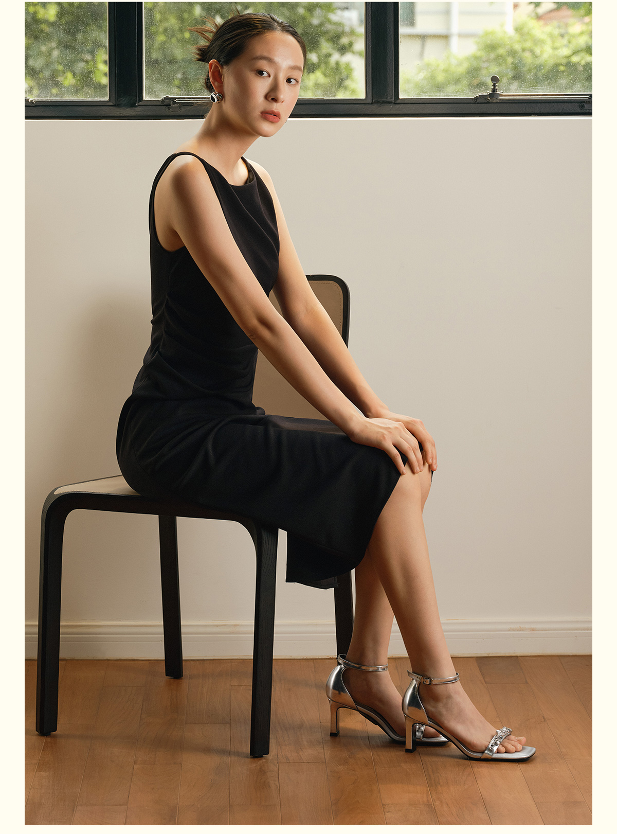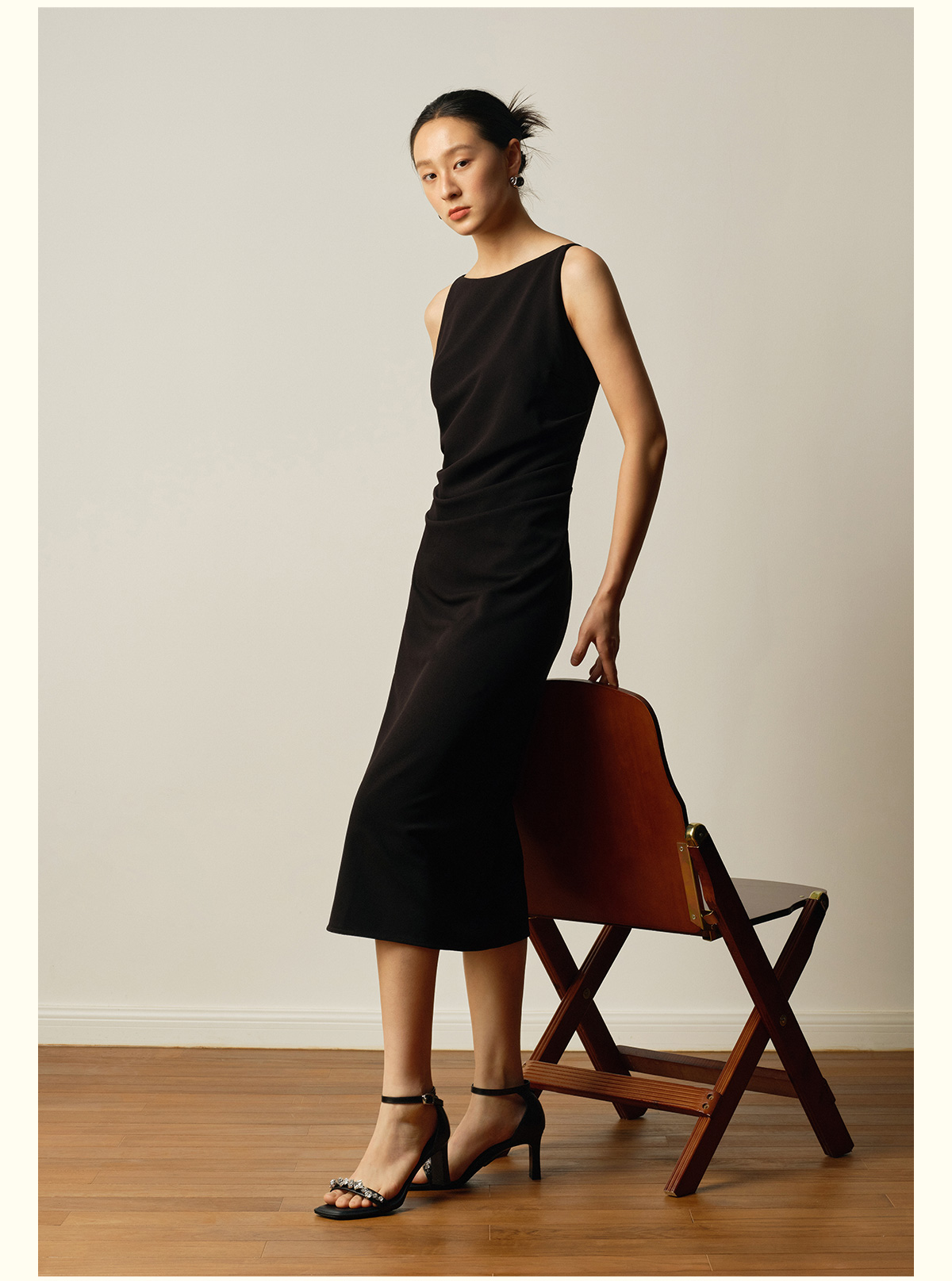 7or9露趾一字带交叉凉鞋高跟鞋黑丝绒/霞多丽