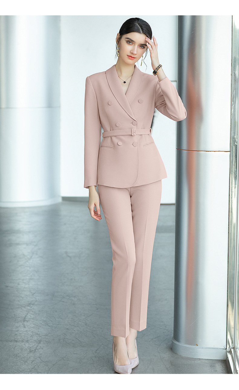 IWY/粉色名媛西服女套装时尚干练气质职业西装两件套显瘦职业装工作服CP1490