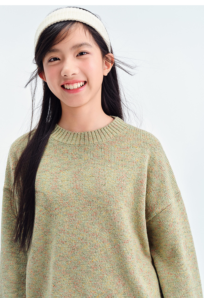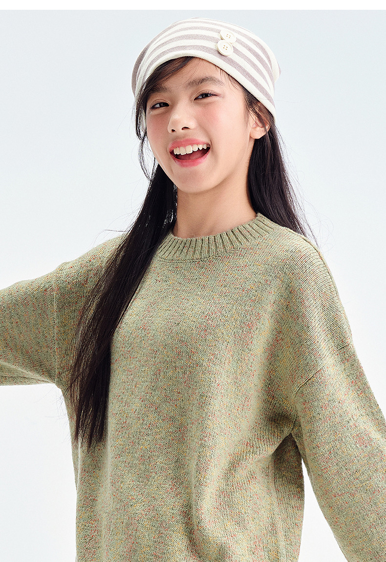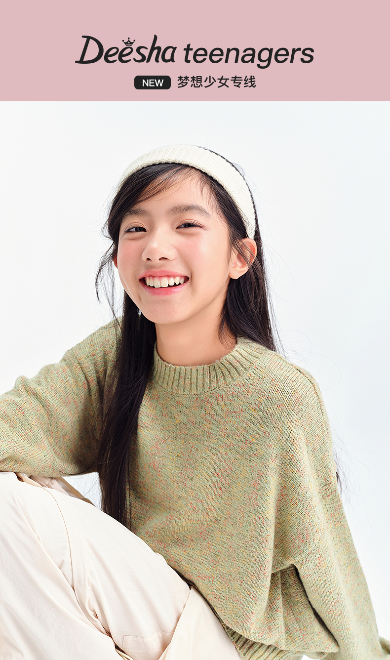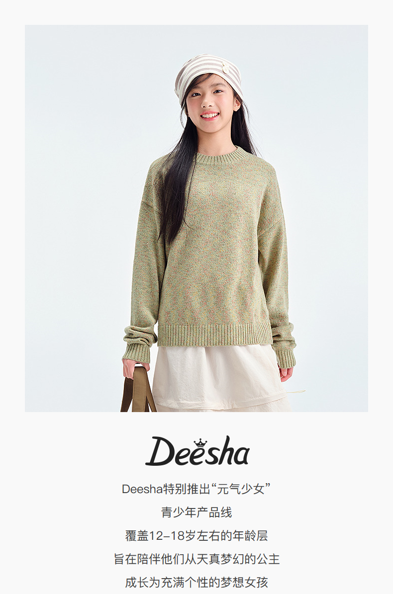 笛莎Deesha青少年女童毛衫2025春季女童舒适针织圆领毛衣