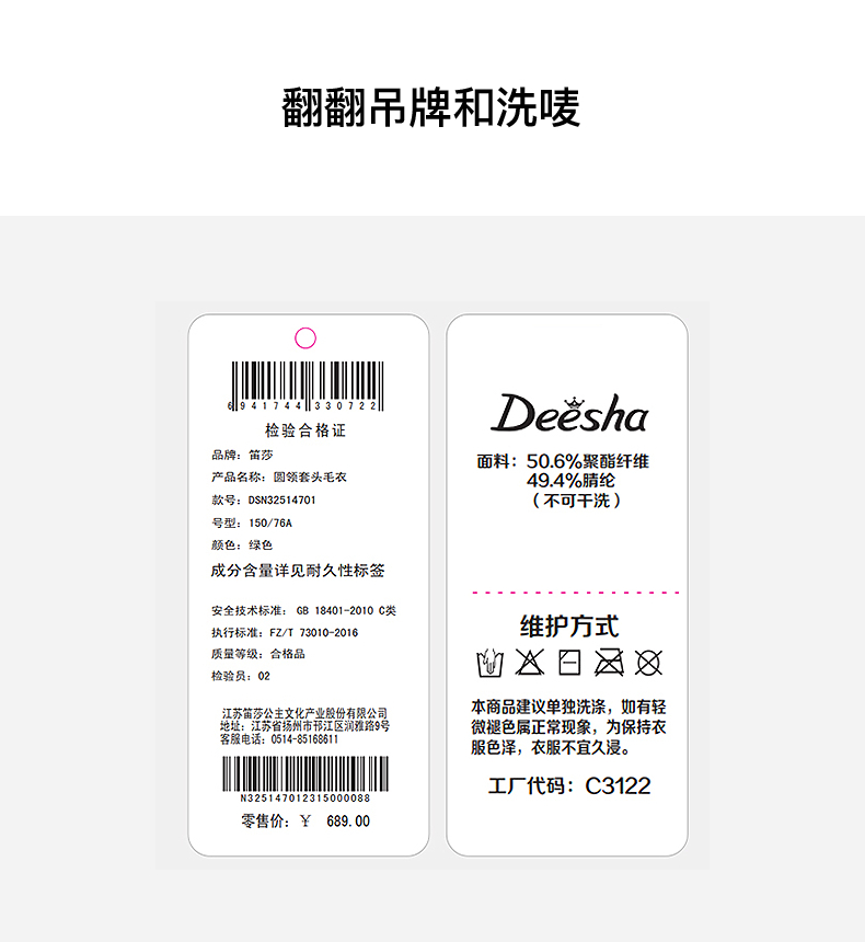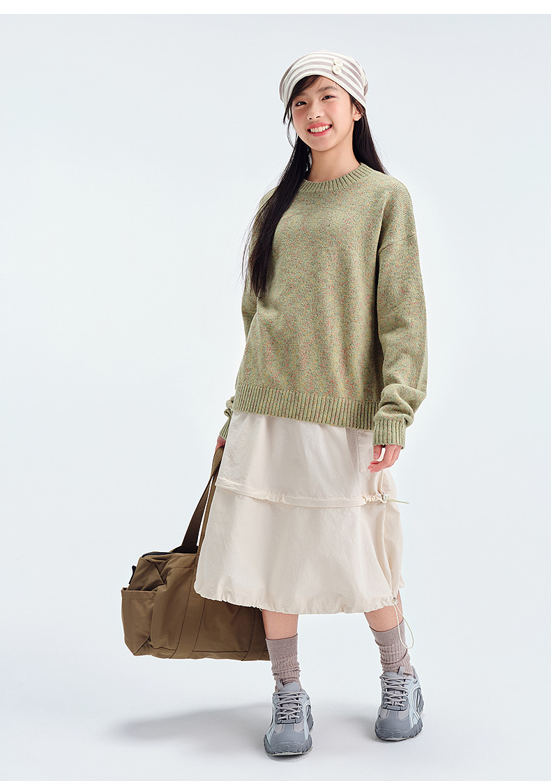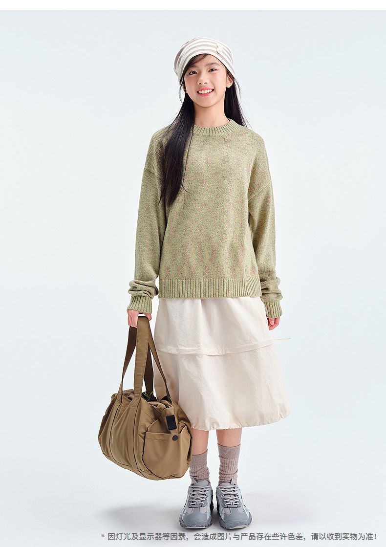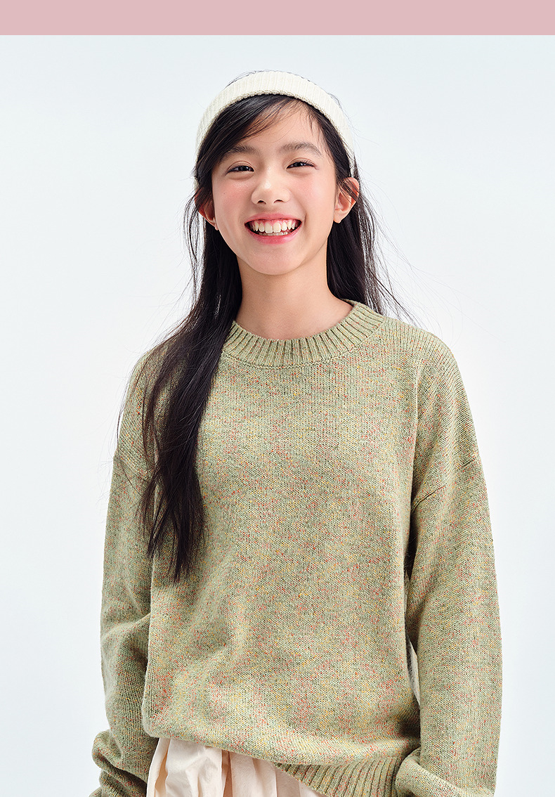 笛莎Deesha青少年女童毛衫2025春季女童舒适针织圆领毛衣