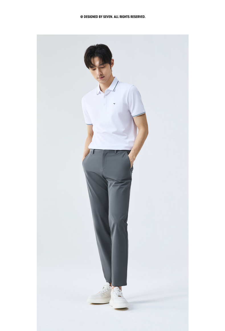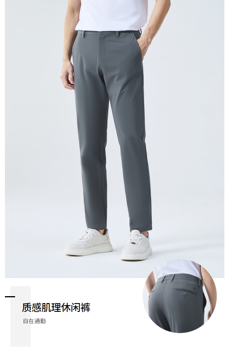 柒牌男装休闲裤2025春季新款条纹肌理舒适百搭中青年商务直筒长裤128H71030