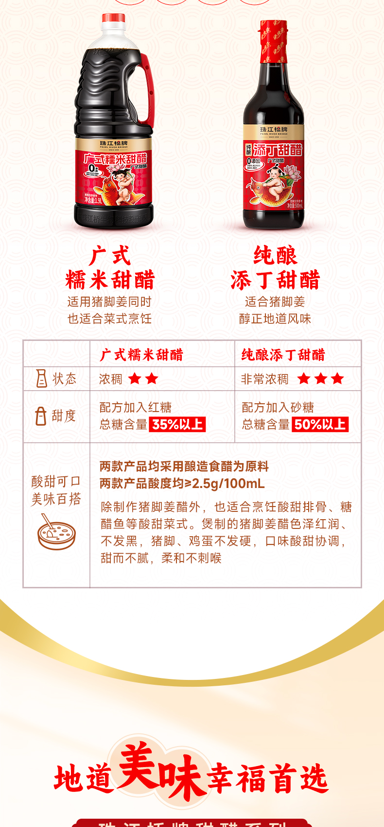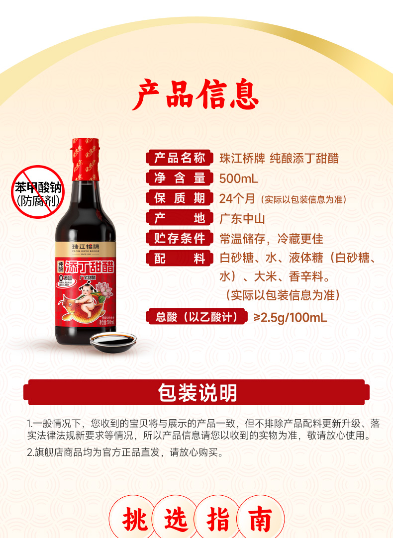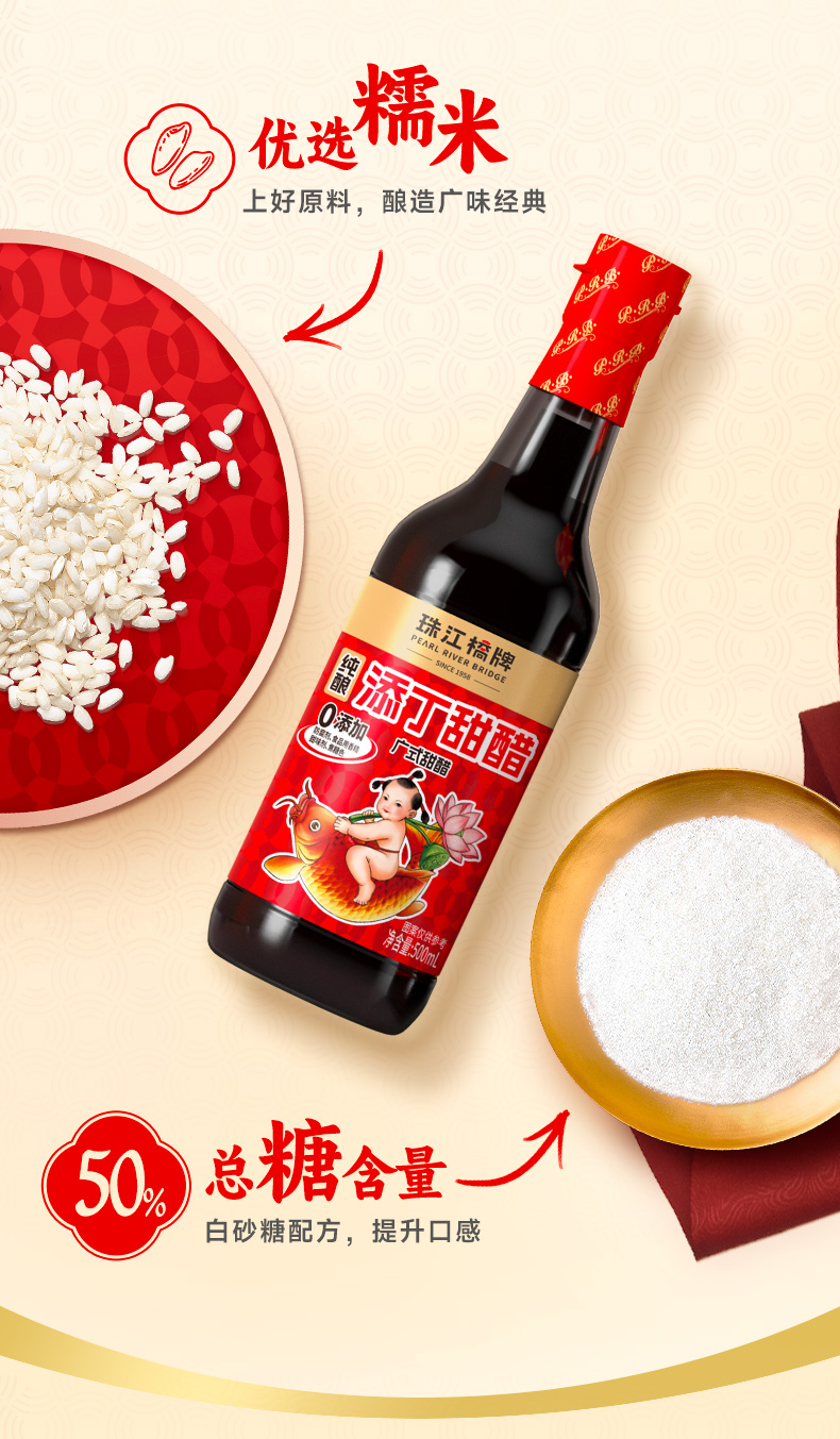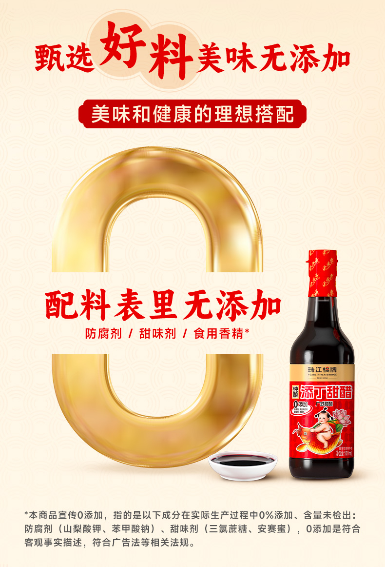 【纯正甜醋】珠江桥牌 零添加添丁甜醋500ml*2瓶
