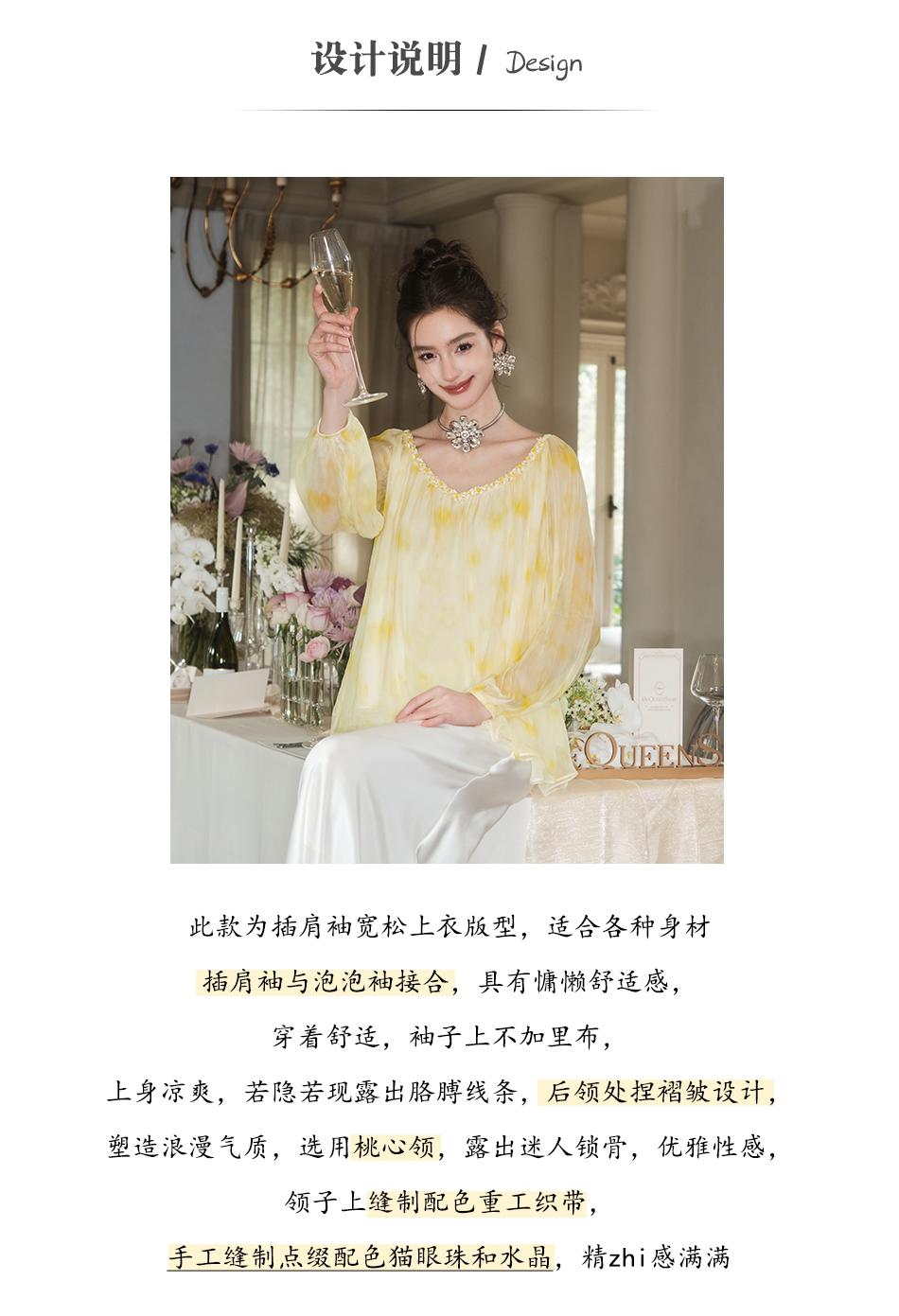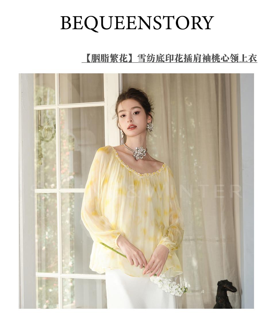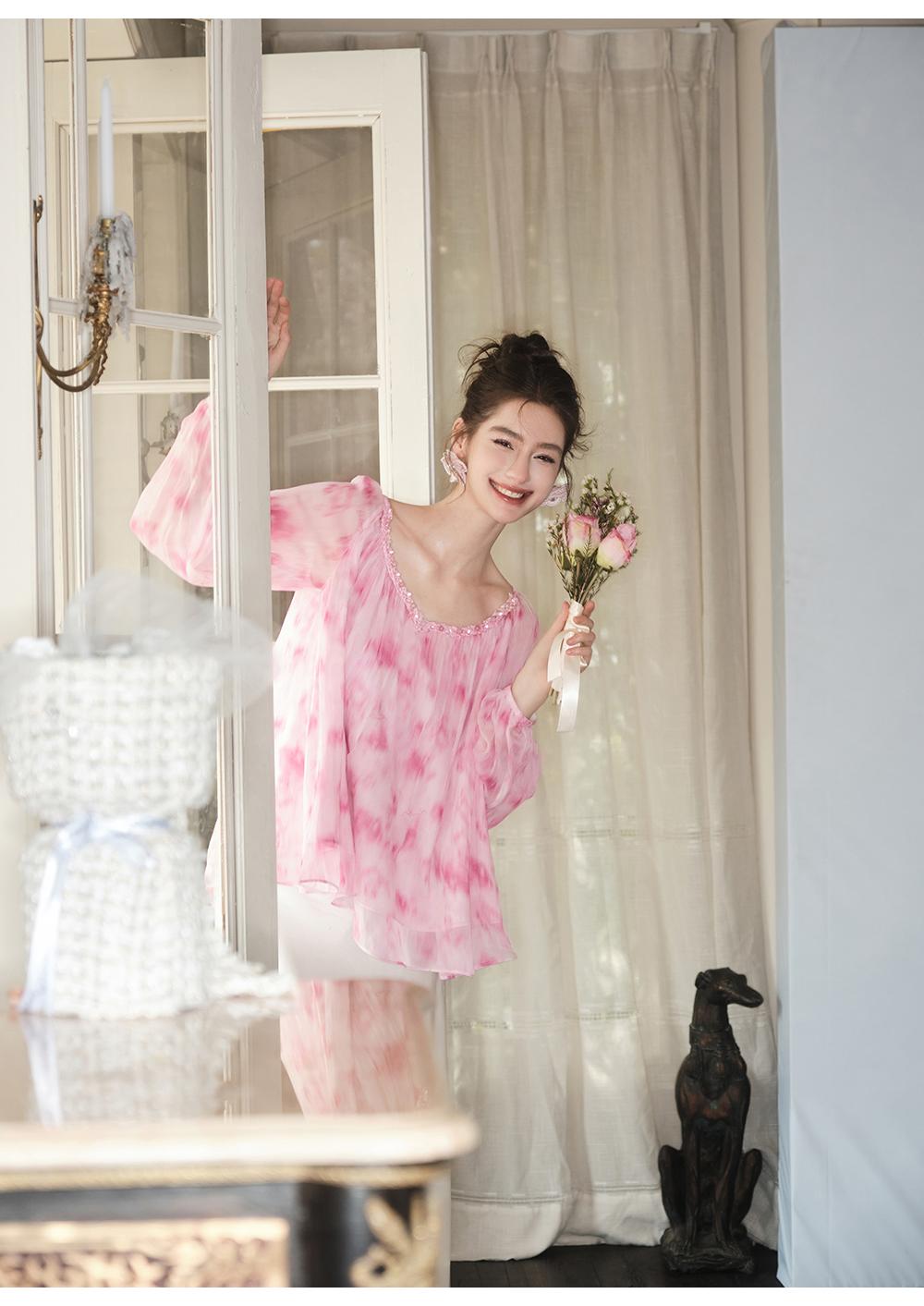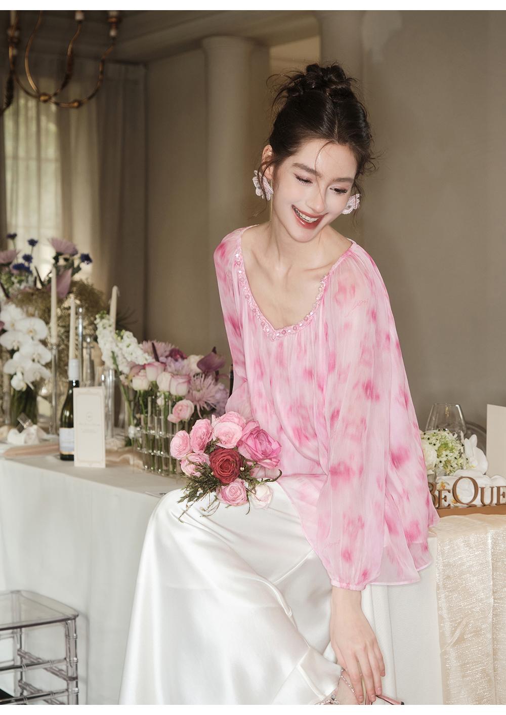 【孤品样衣,不退不换】【胭脂繁花】浪漫慵懒舒适凉爽印花插肩袖宽松桃心领上衣