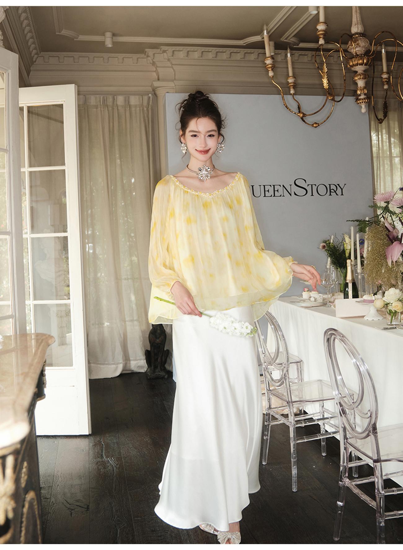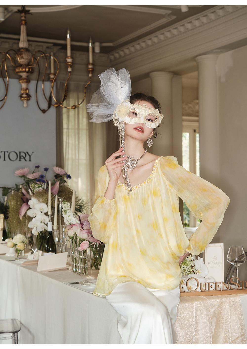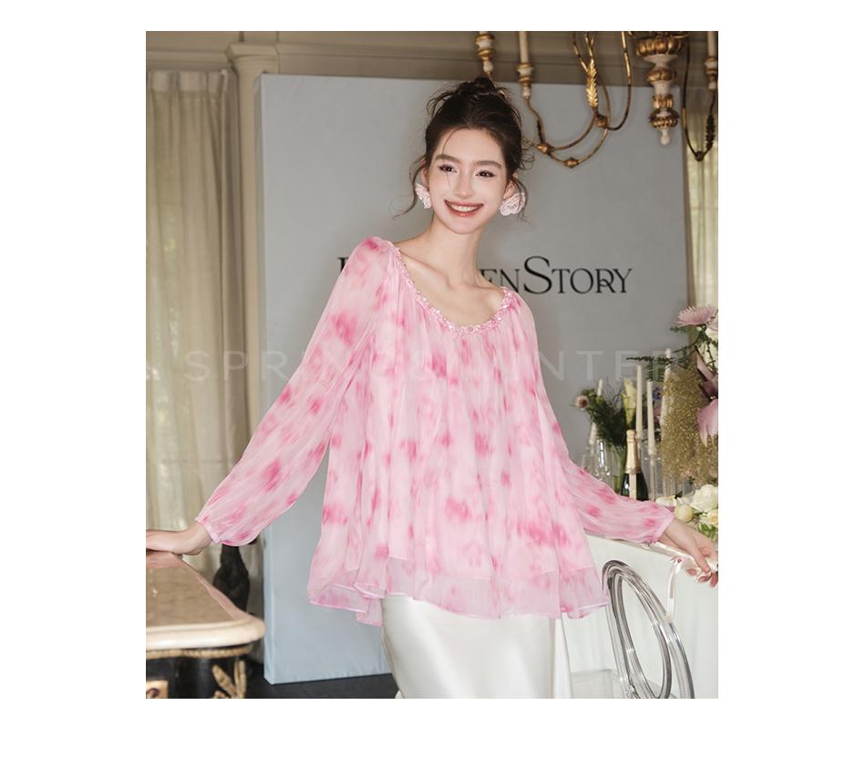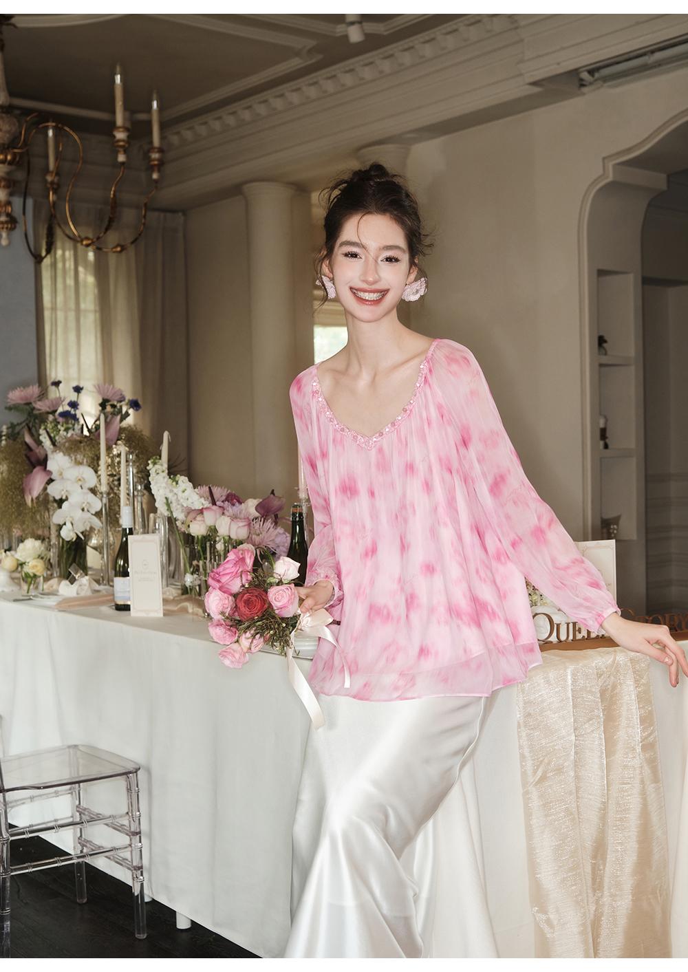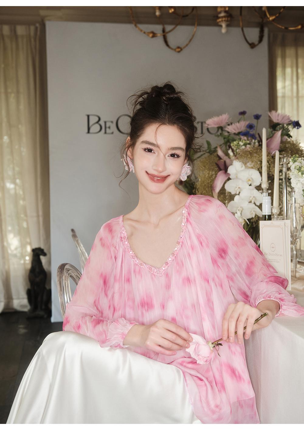 【孤品样衣,不退不换】【胭脂繁花】浪漫慵懒舒适凉爽印花插肩袖宽松桃心领上衣