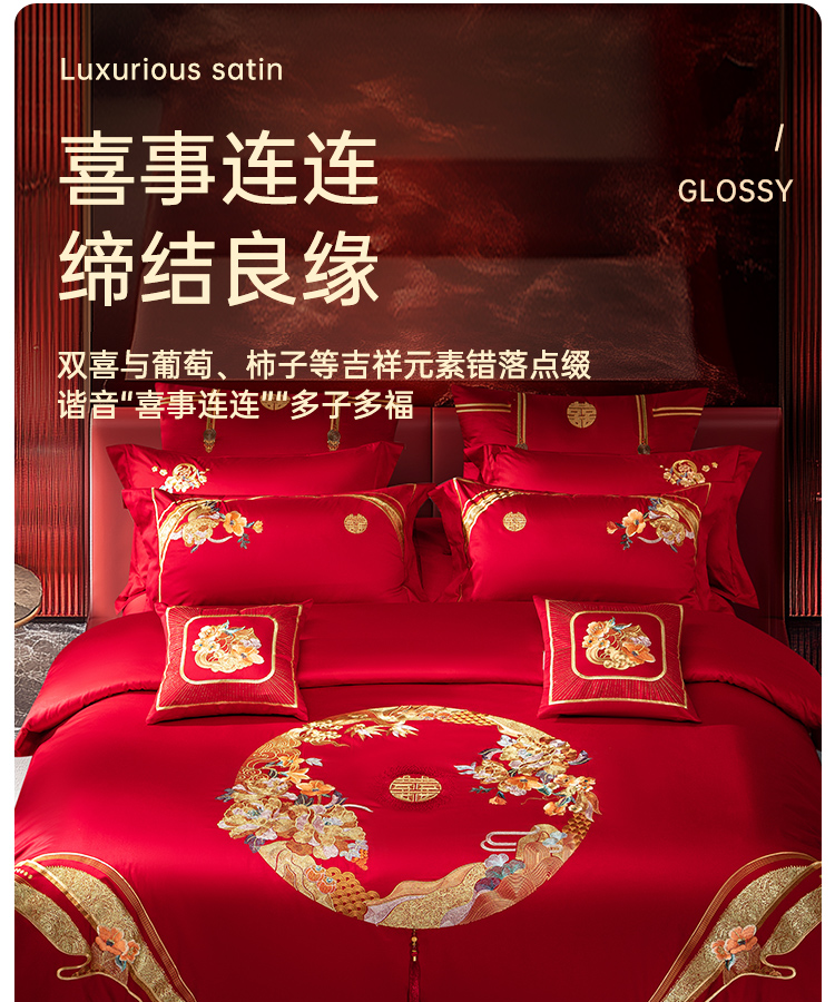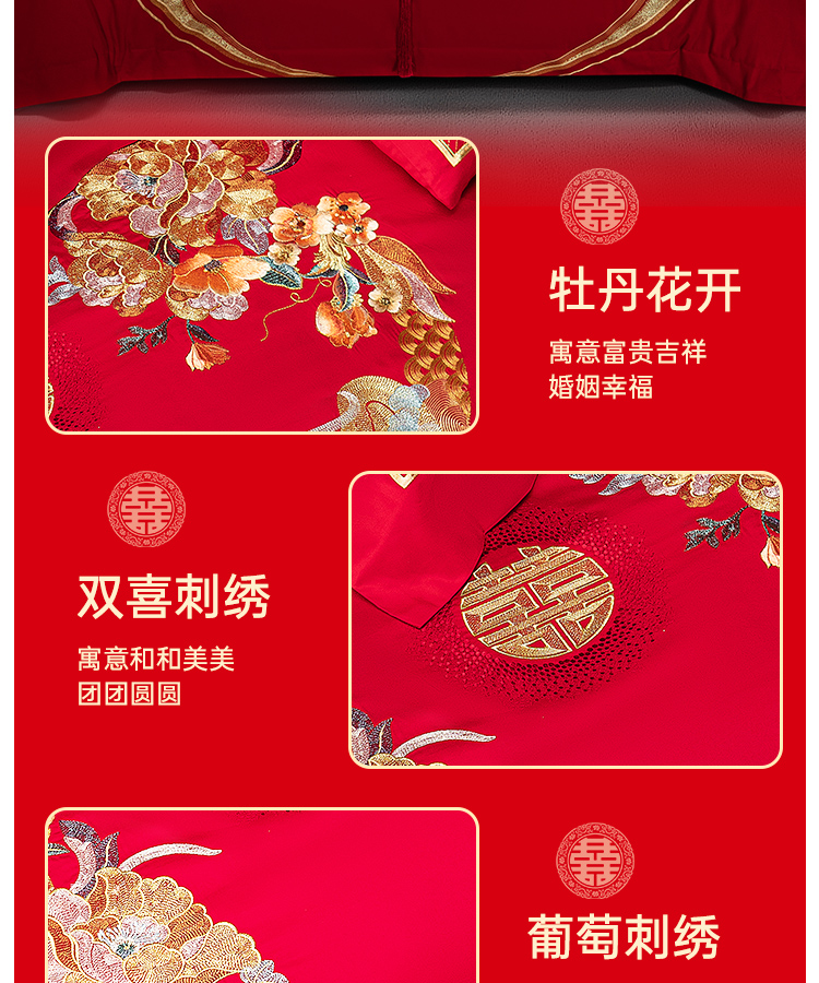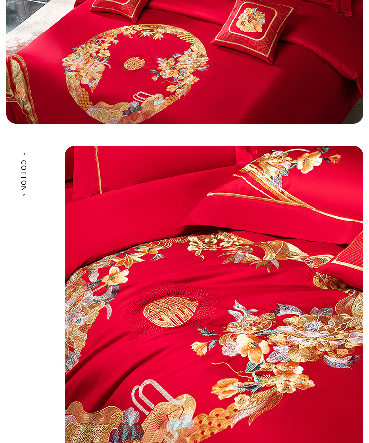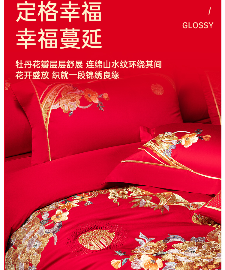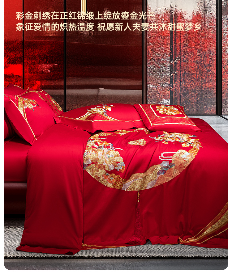 臻品系列100支全棉刺绣禧嫁四件套(鎏金繁花)