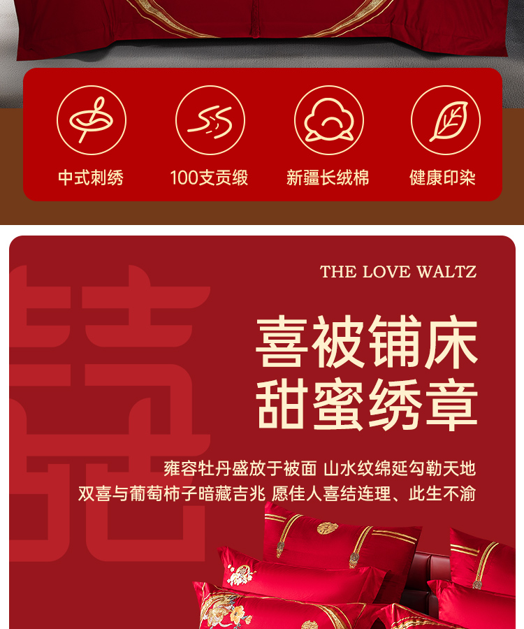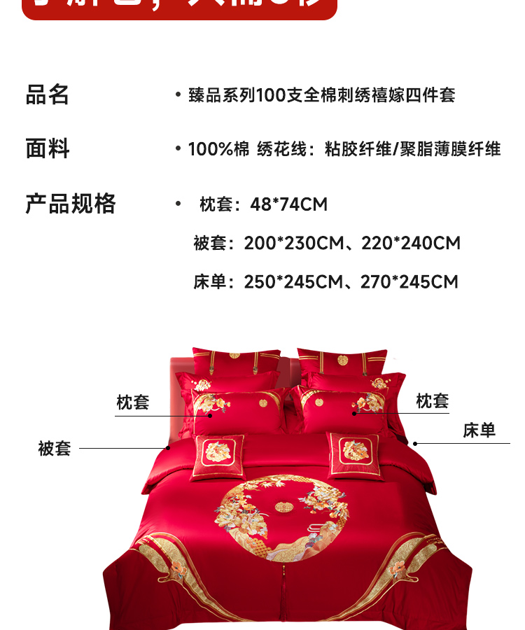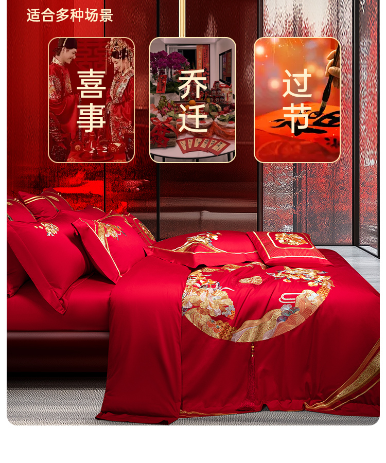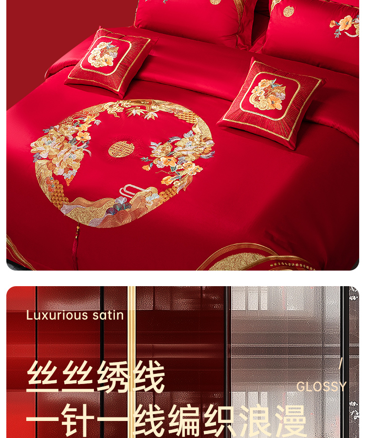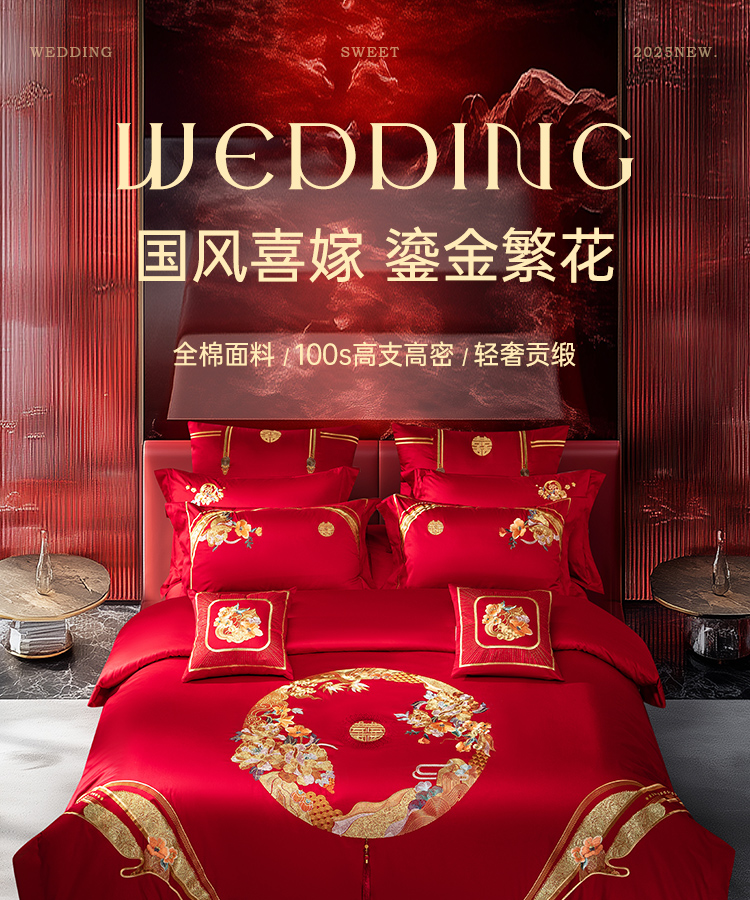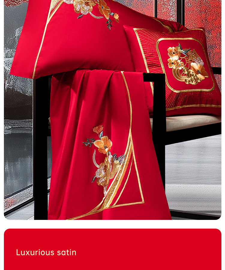 臻品系列100支全棉刺绣禧嫁四件套(鎏金繁花)