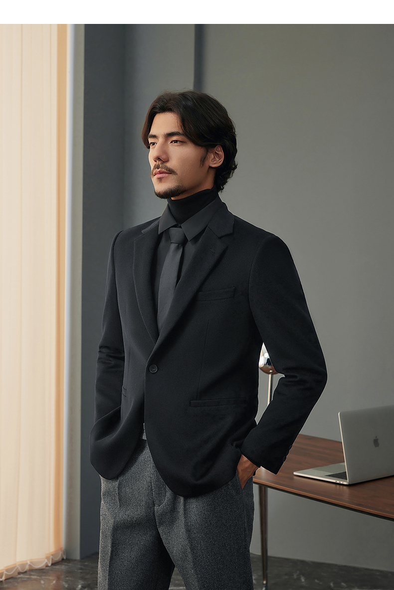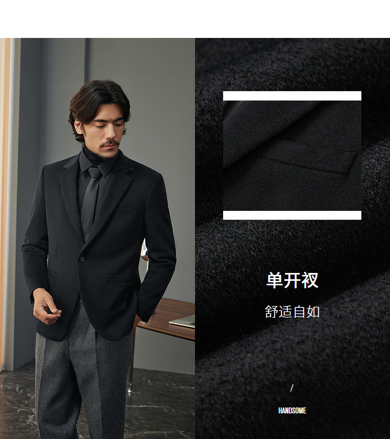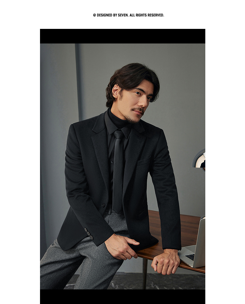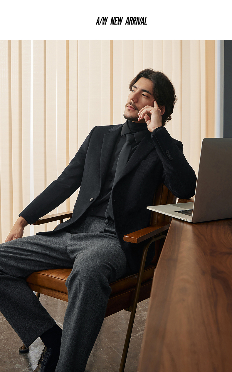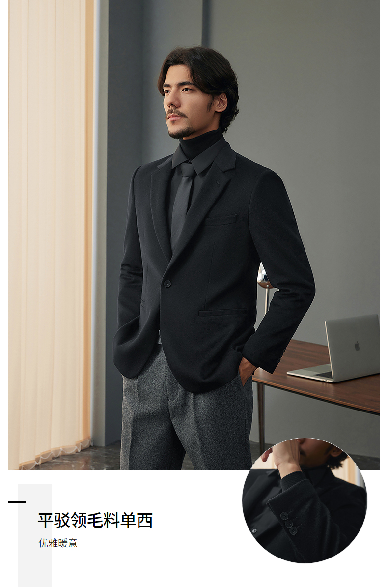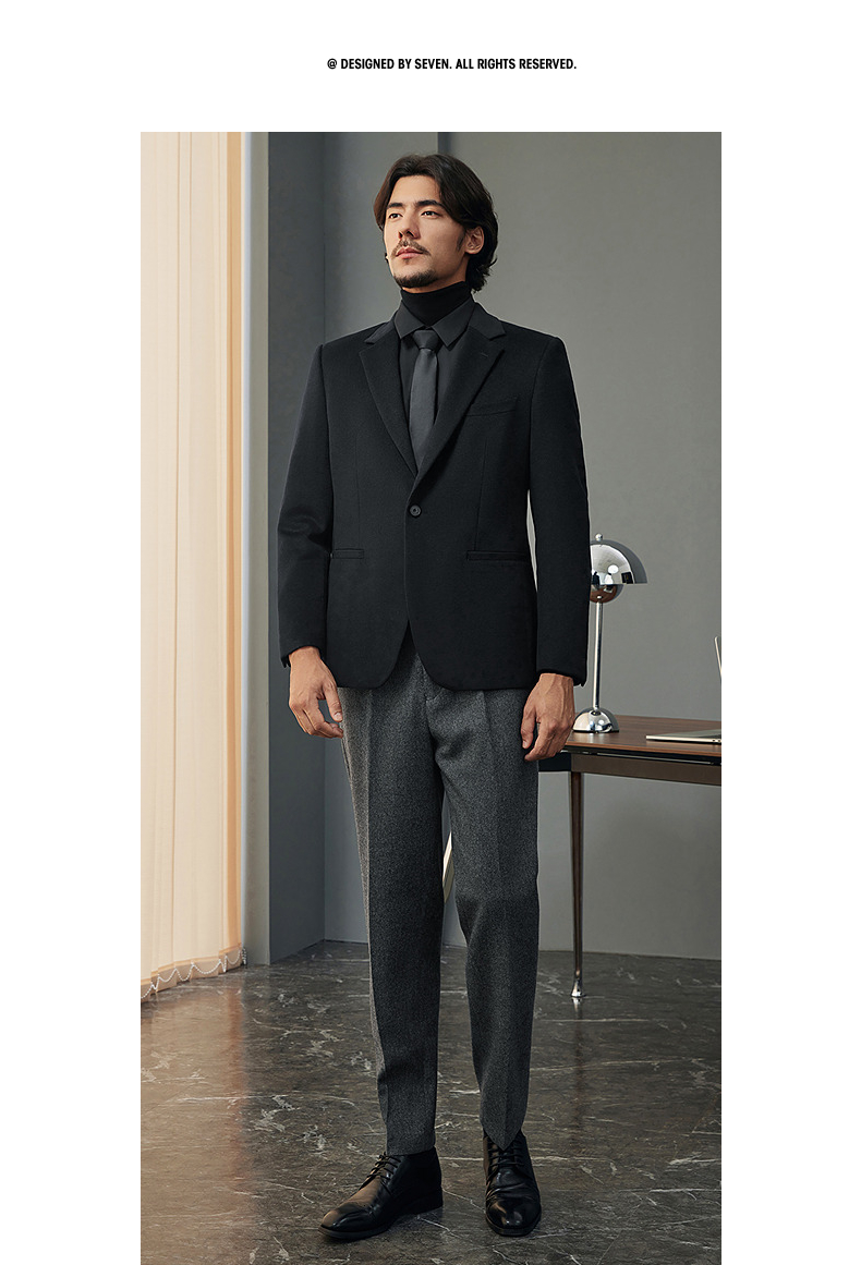 【毛料单西】柒牌西服男士商务正装秋冬新款面试新郎结婚西装外套 127C70490