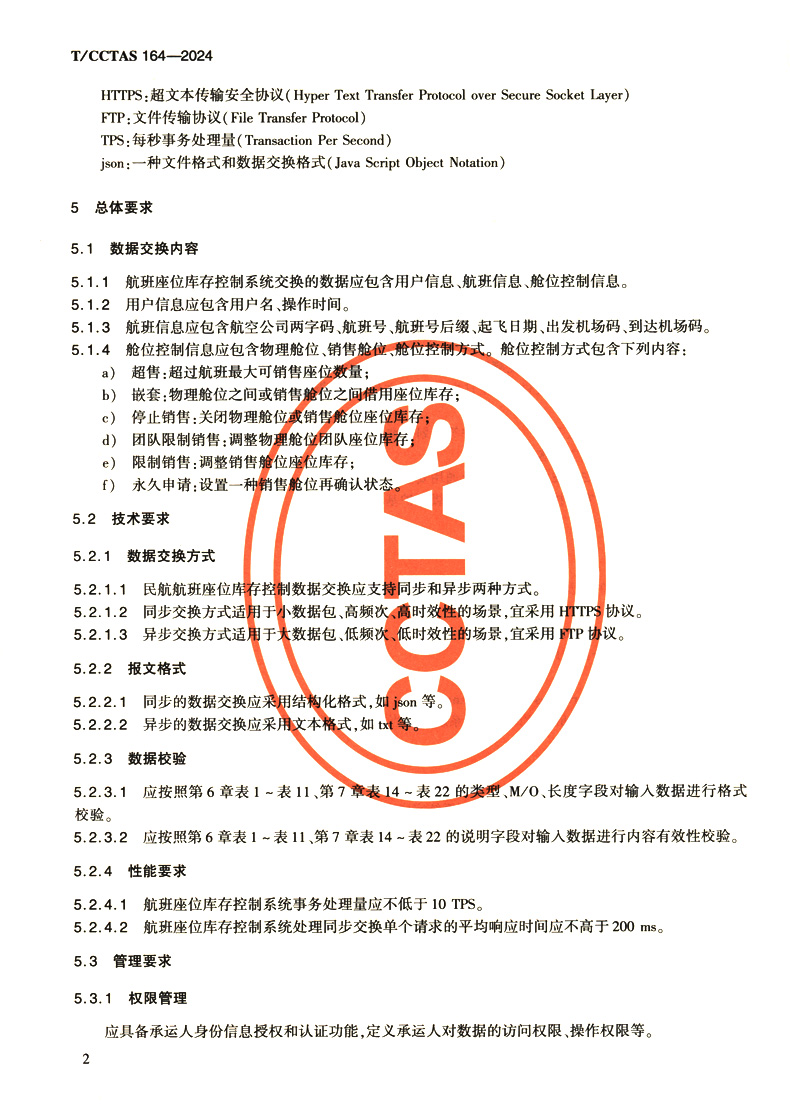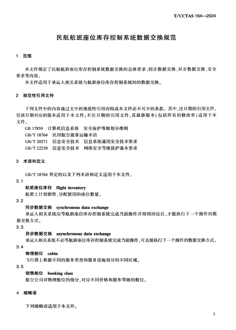 书名:民航航班座位库存控制系统数据交换规范T/CCTAS 164—2024