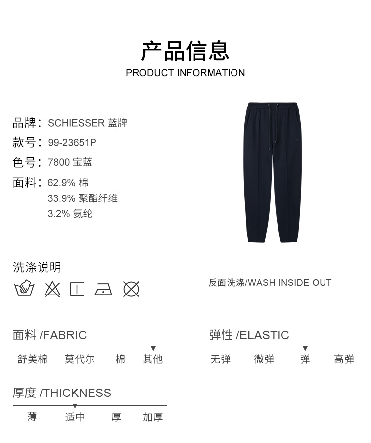 【棉混纺】SCHIESSER德国舒雅高端铂雅男士休闲长裤99/23651P(可点击详情页最下方链接选择配套上衣)