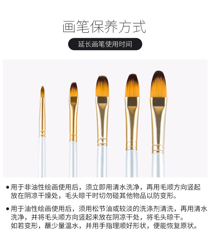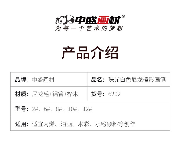 中盛画材油画水彩画笔水粉画笔丙烯画笔美术画笔尼龙榛形画笔