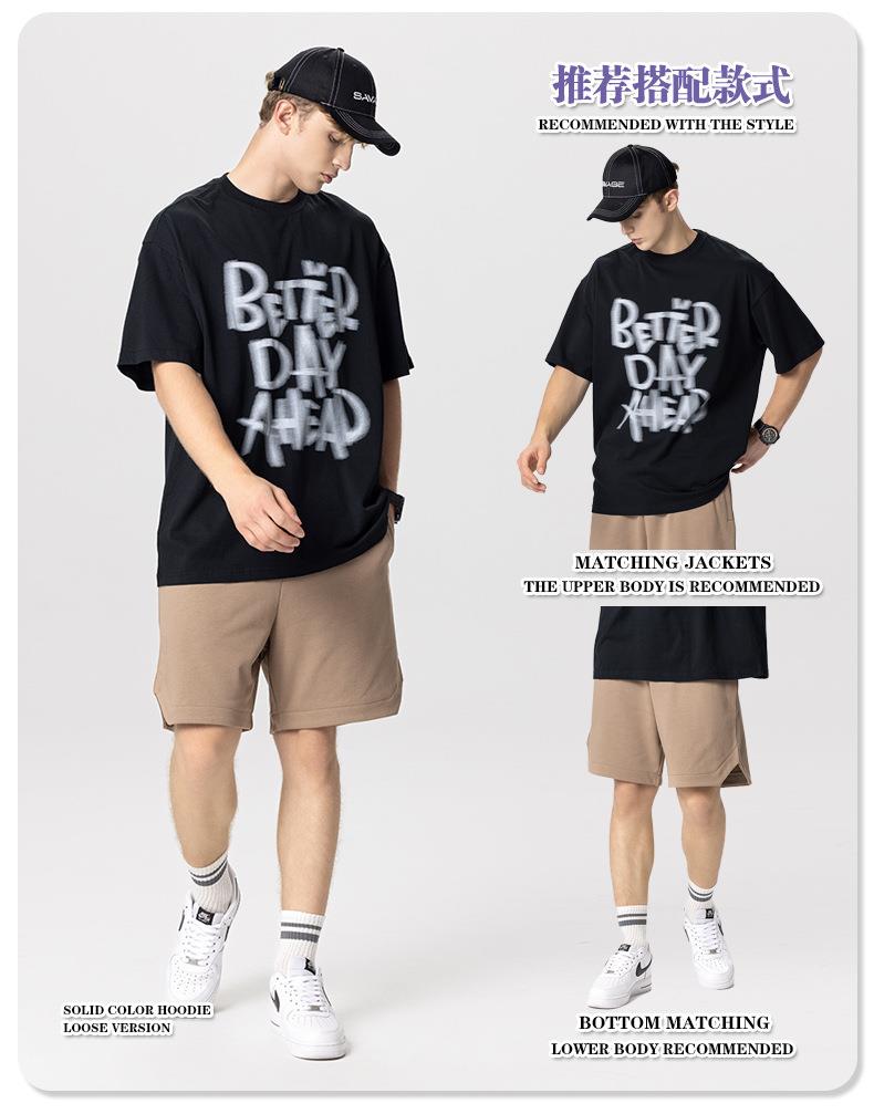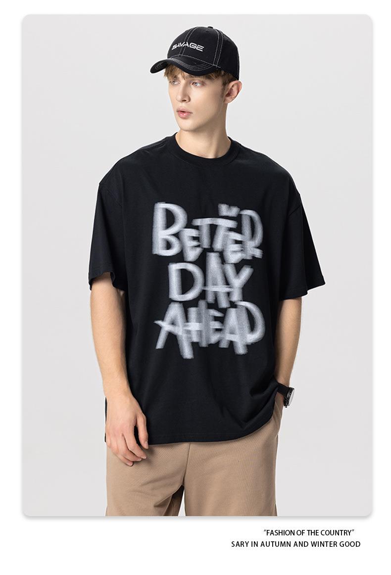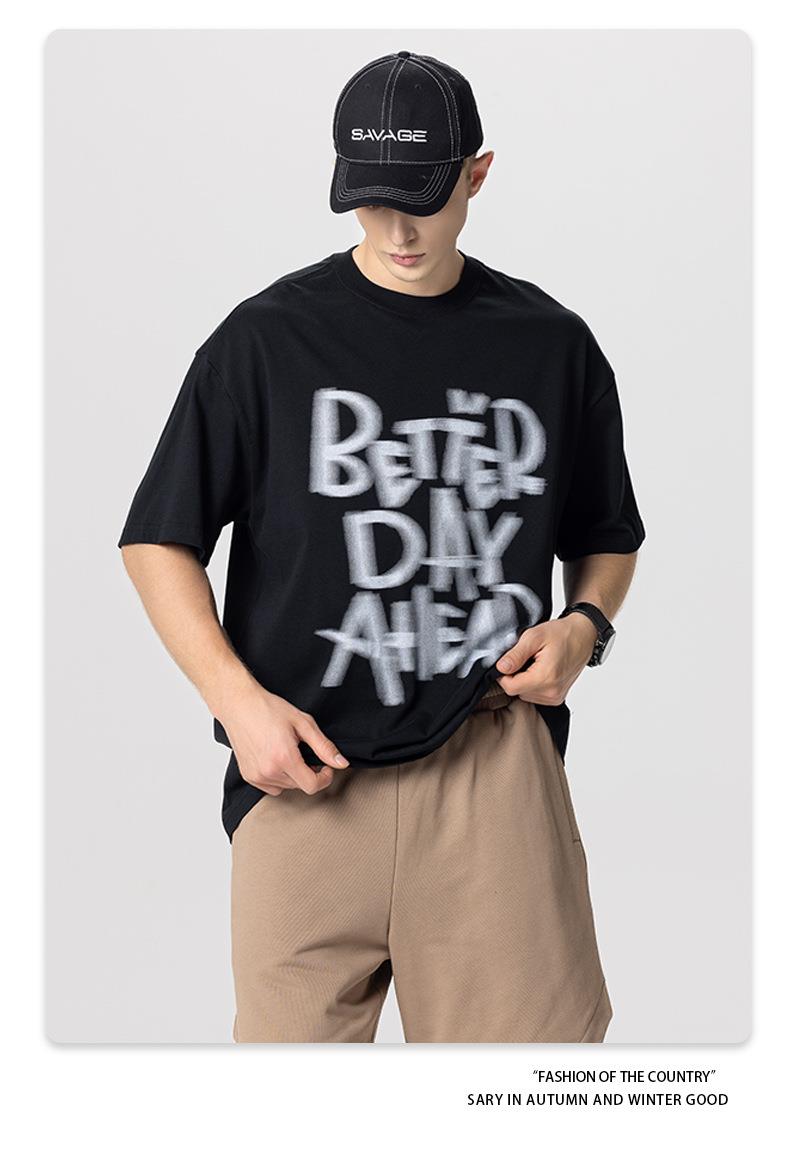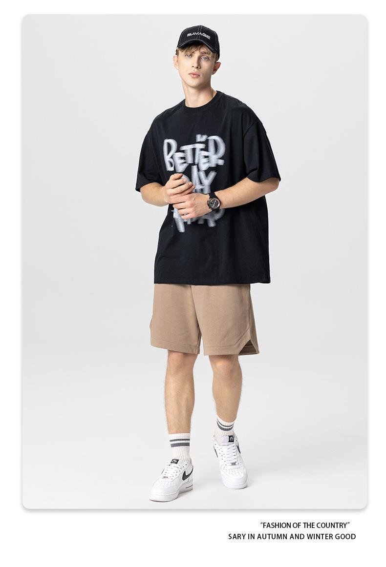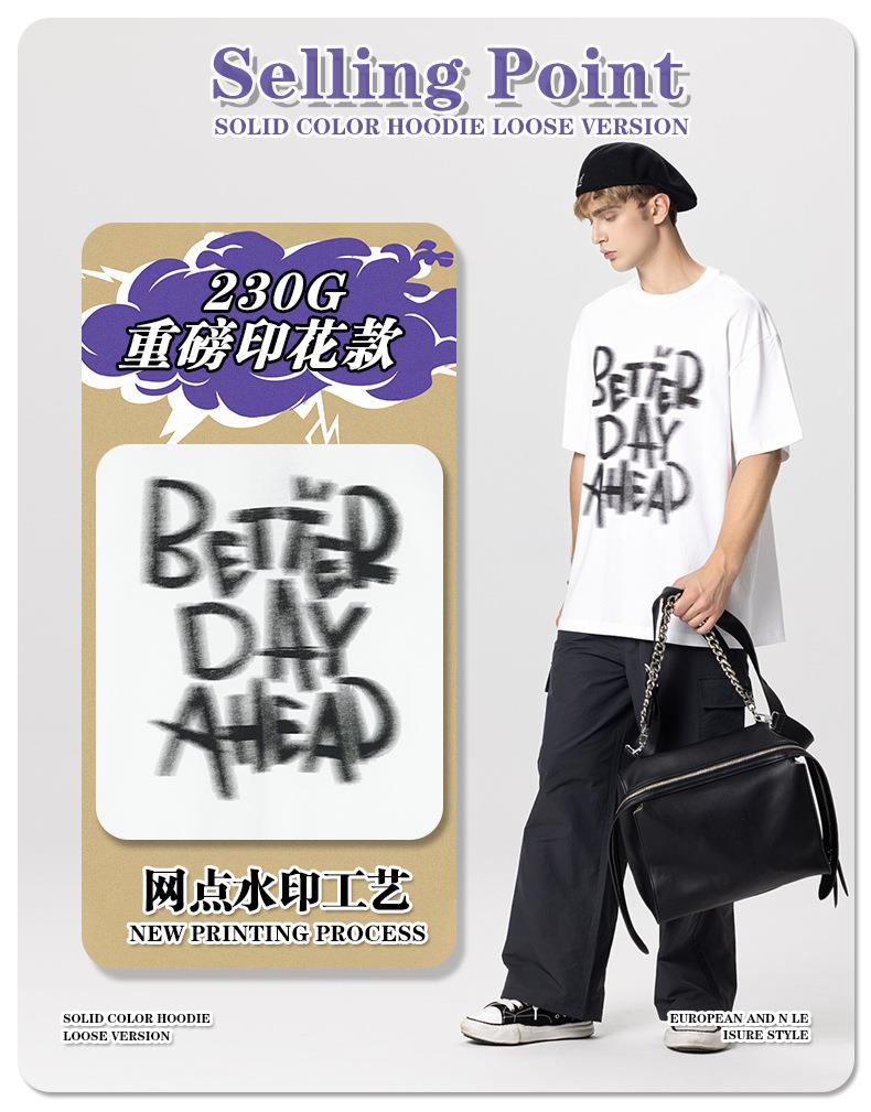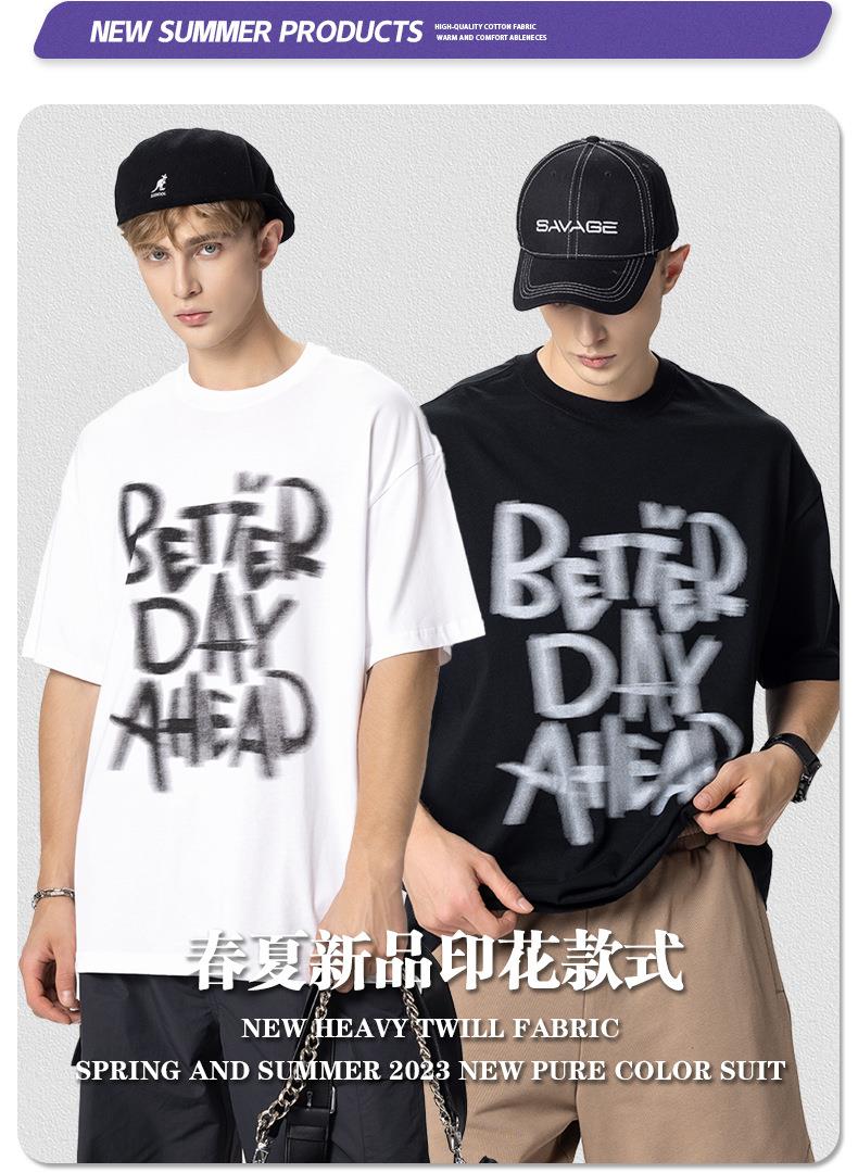 RS男装|2023夏季230g字母网点水印短袖欧美风潮牌复古男女宽松T恤