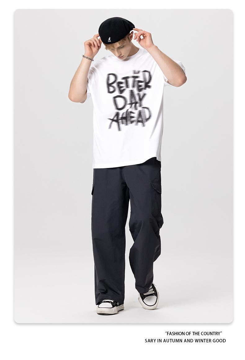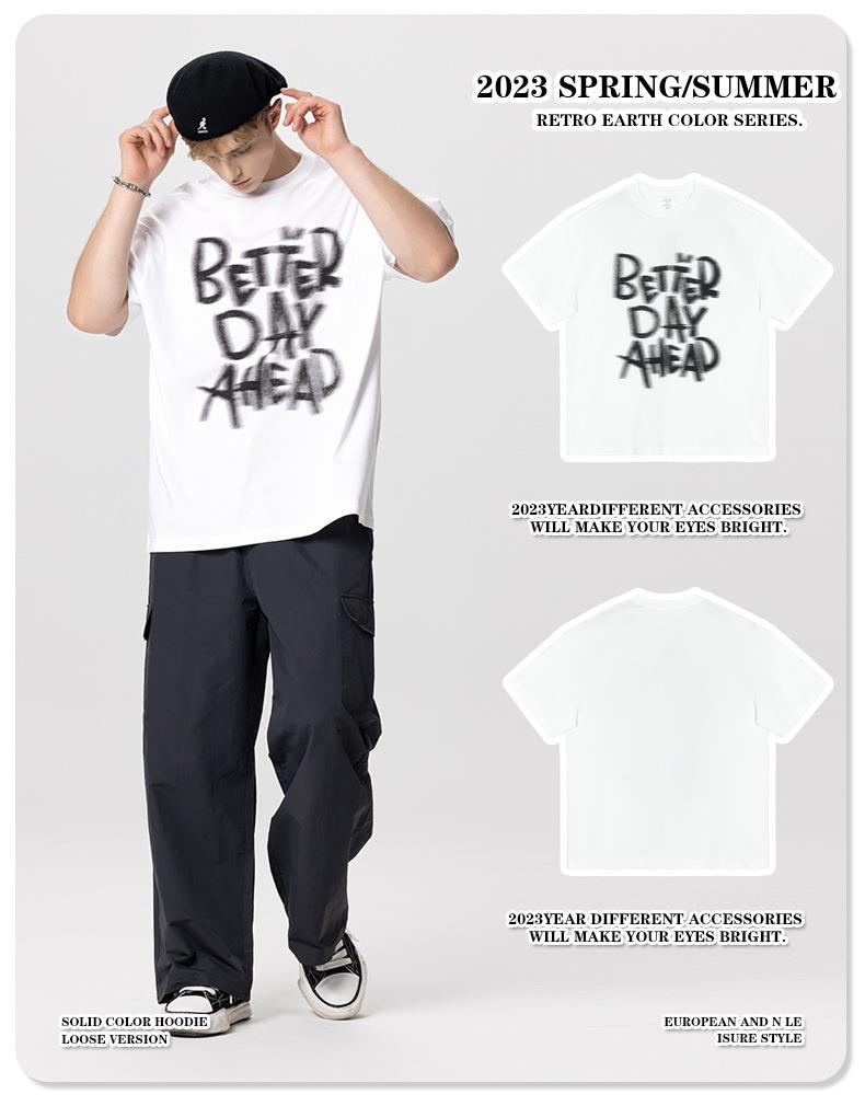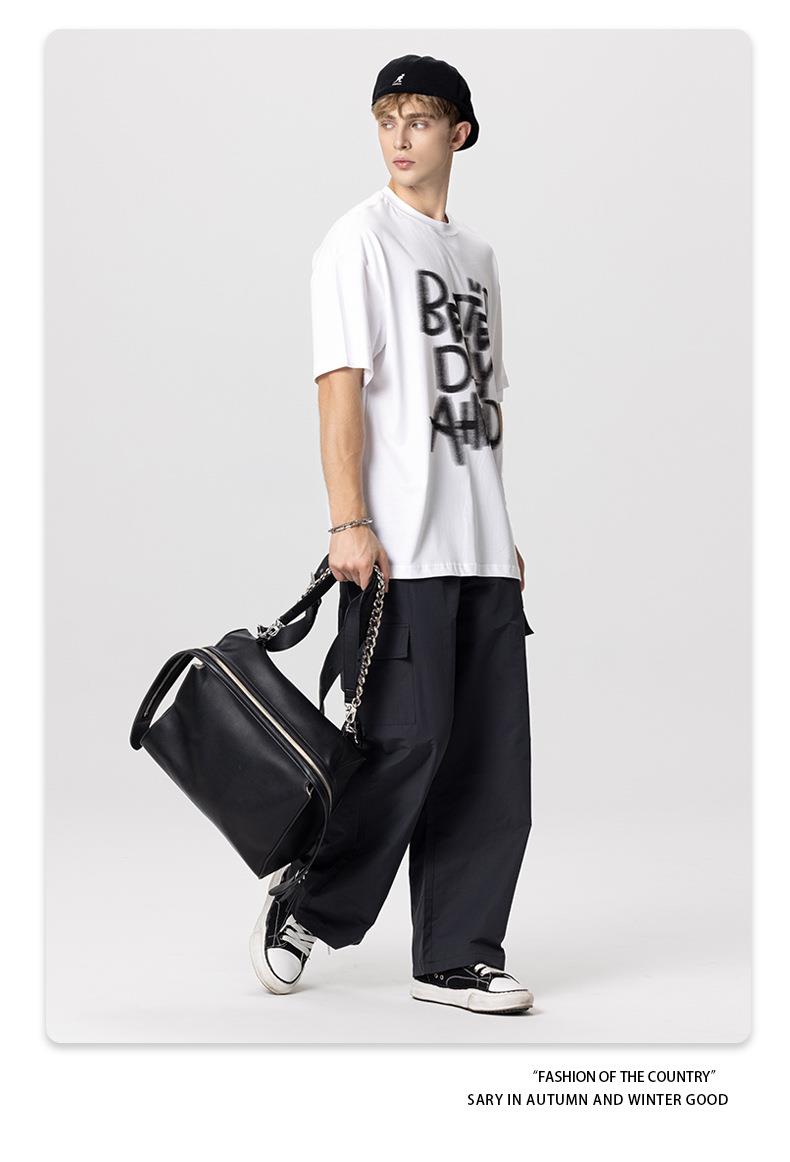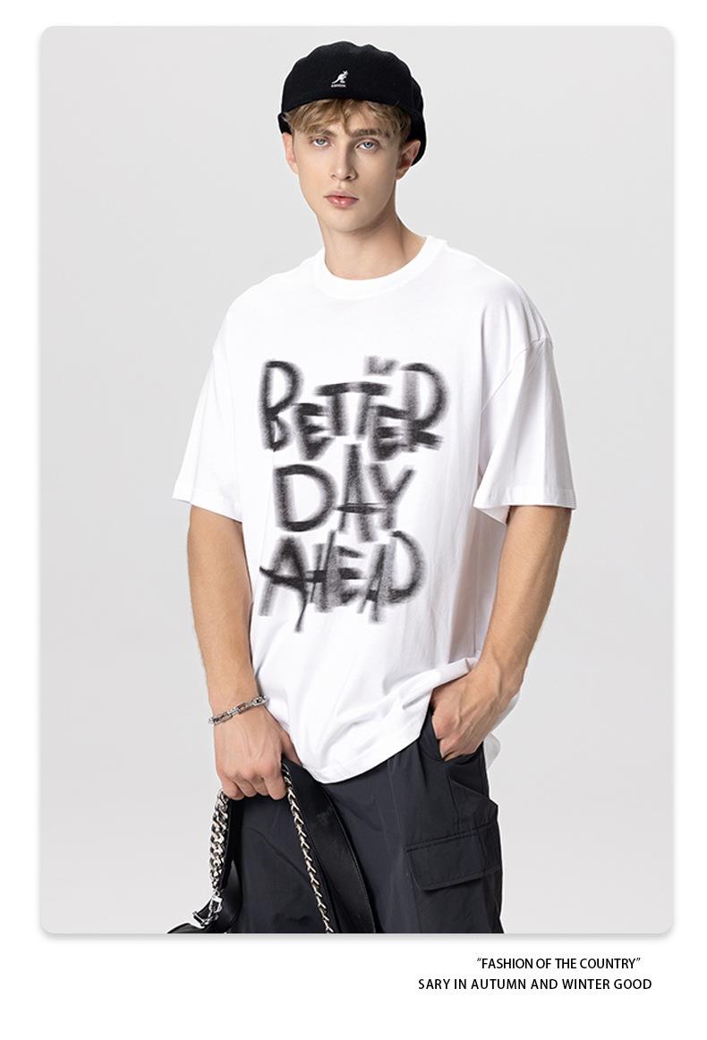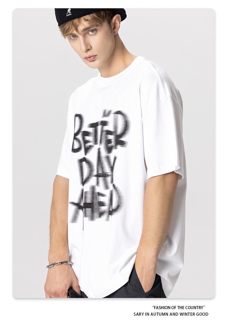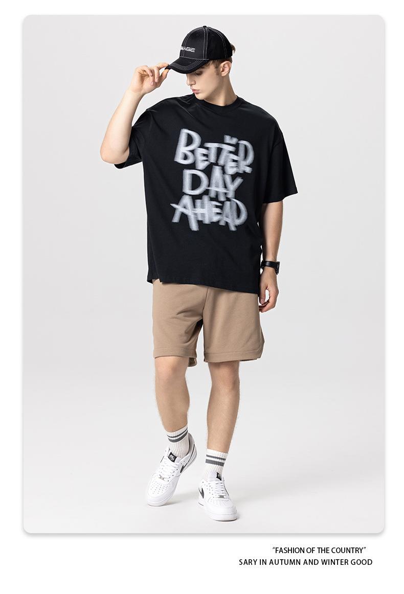RS男装|2023夏季230g字母网点水印短袖欧美风潮牌复古男女宽松T恤