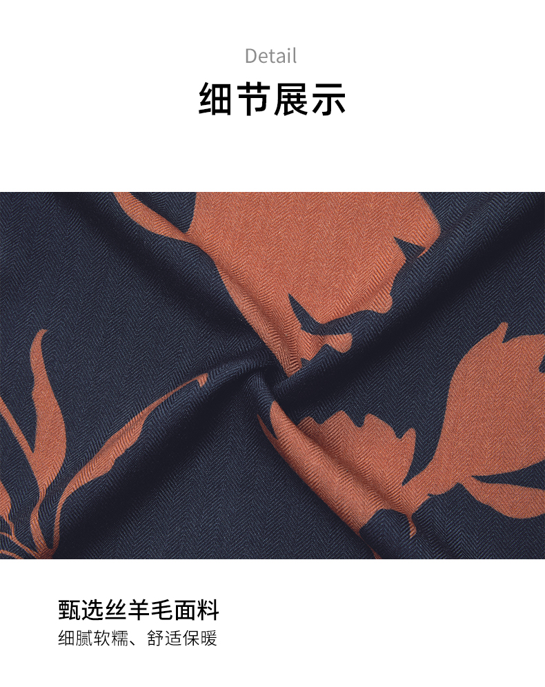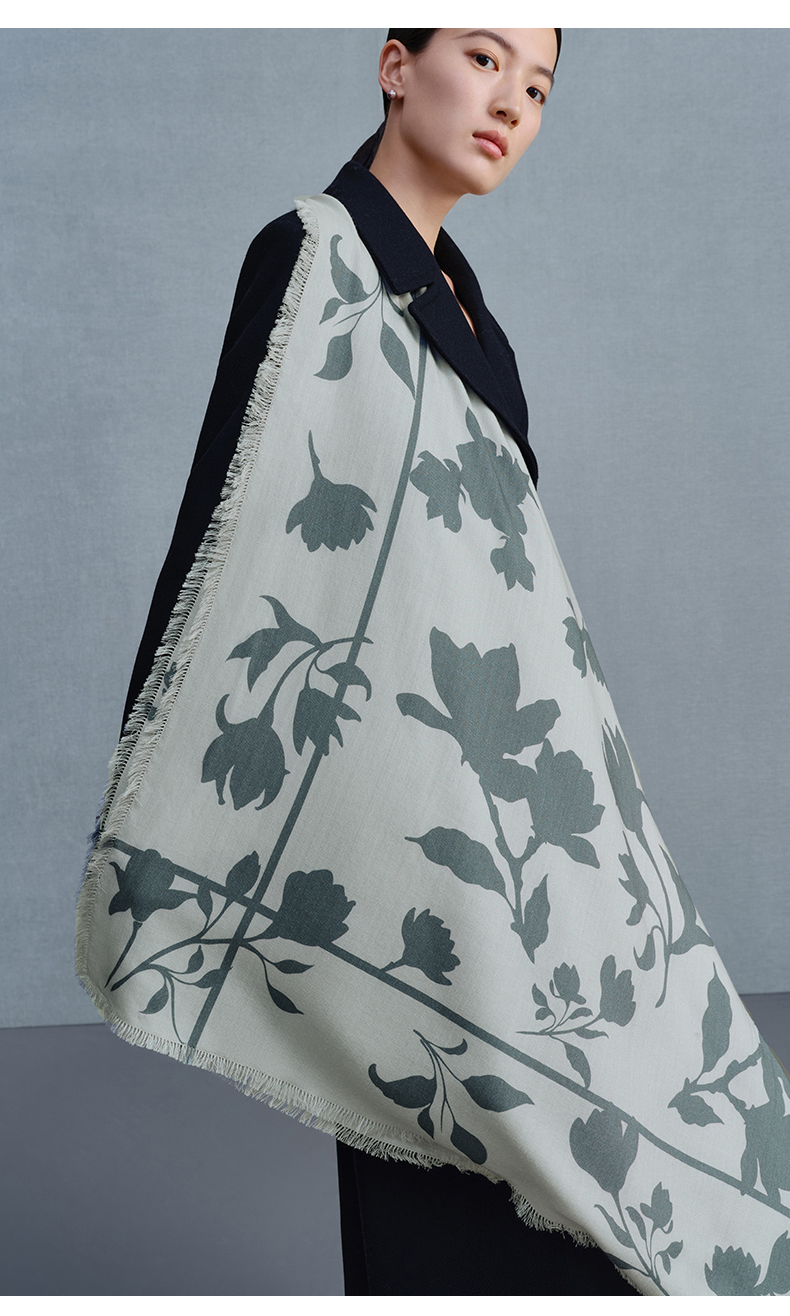 万事利“兰香疏影”100厘米双面印花丝羊毛围巾