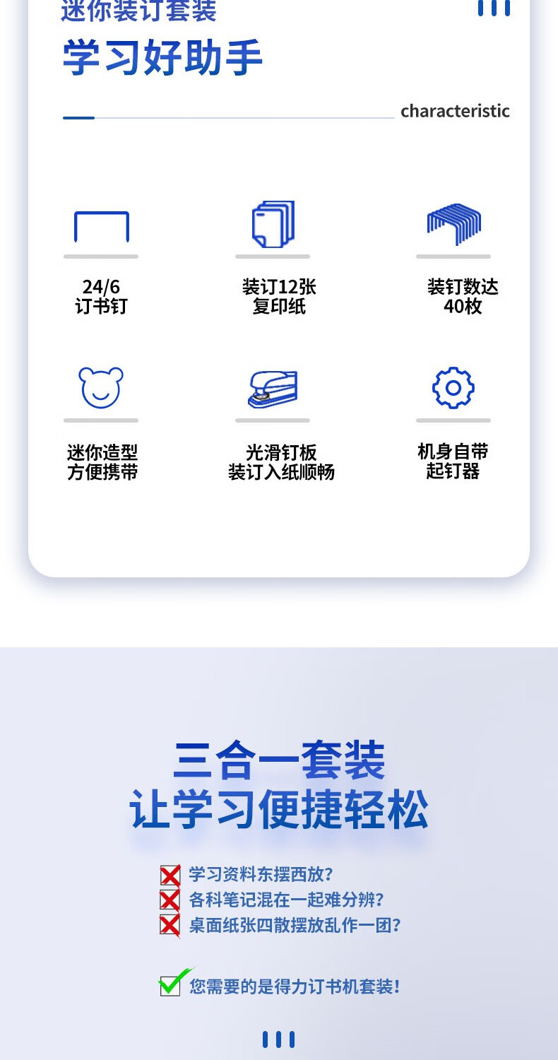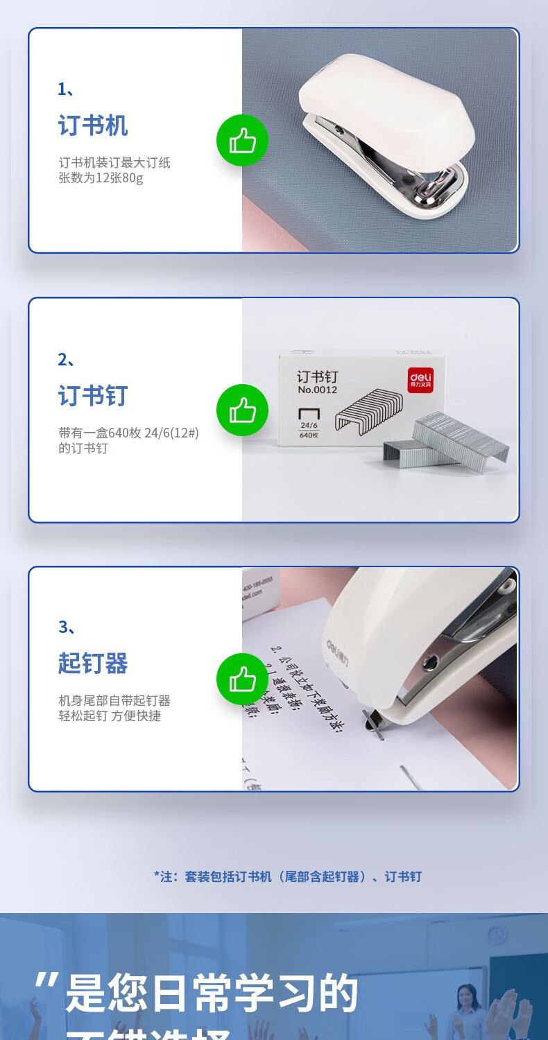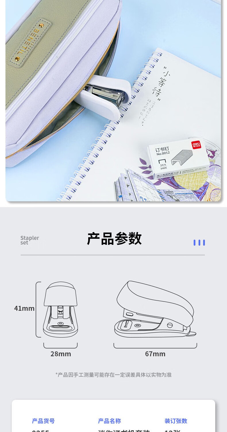 【迷你马克龙色❗️】得力订书机套装0255迷你马克龙色钉书机学生便捷小款学生适用。ya
